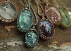 ※ 天然石を包むコードを始めトップ部分に使用したマクラメ編みコードは、