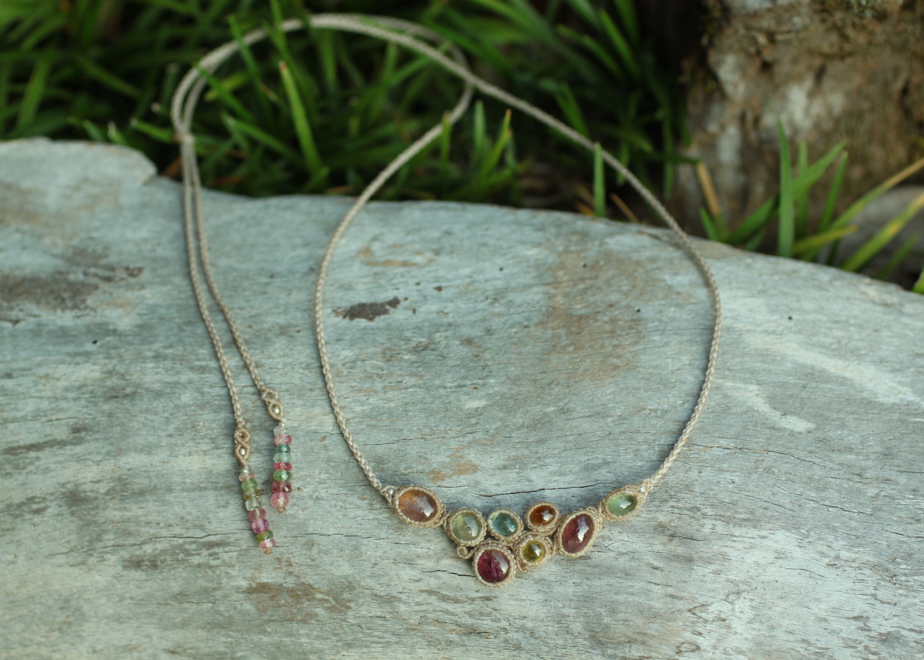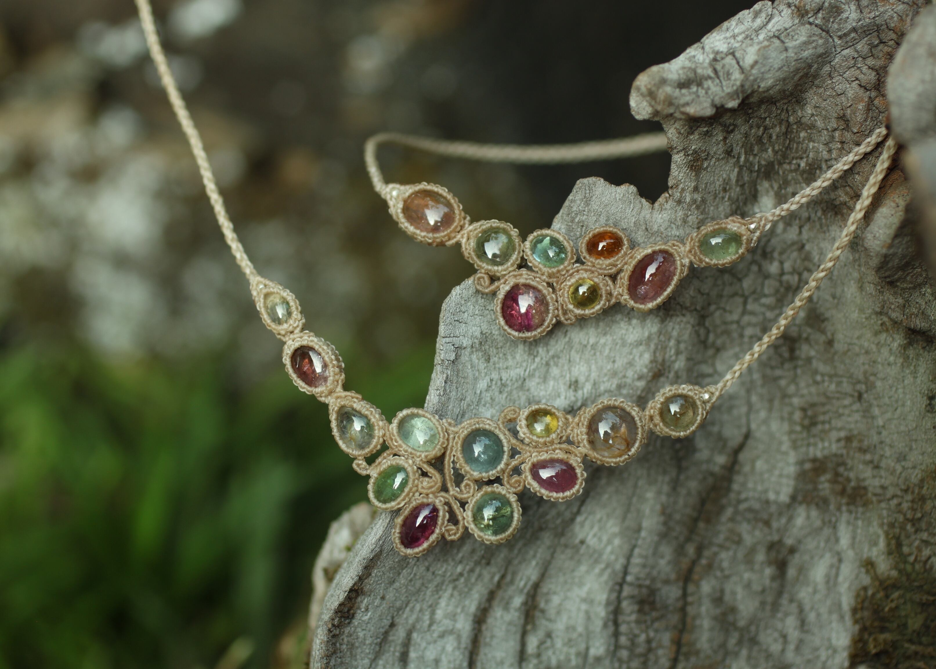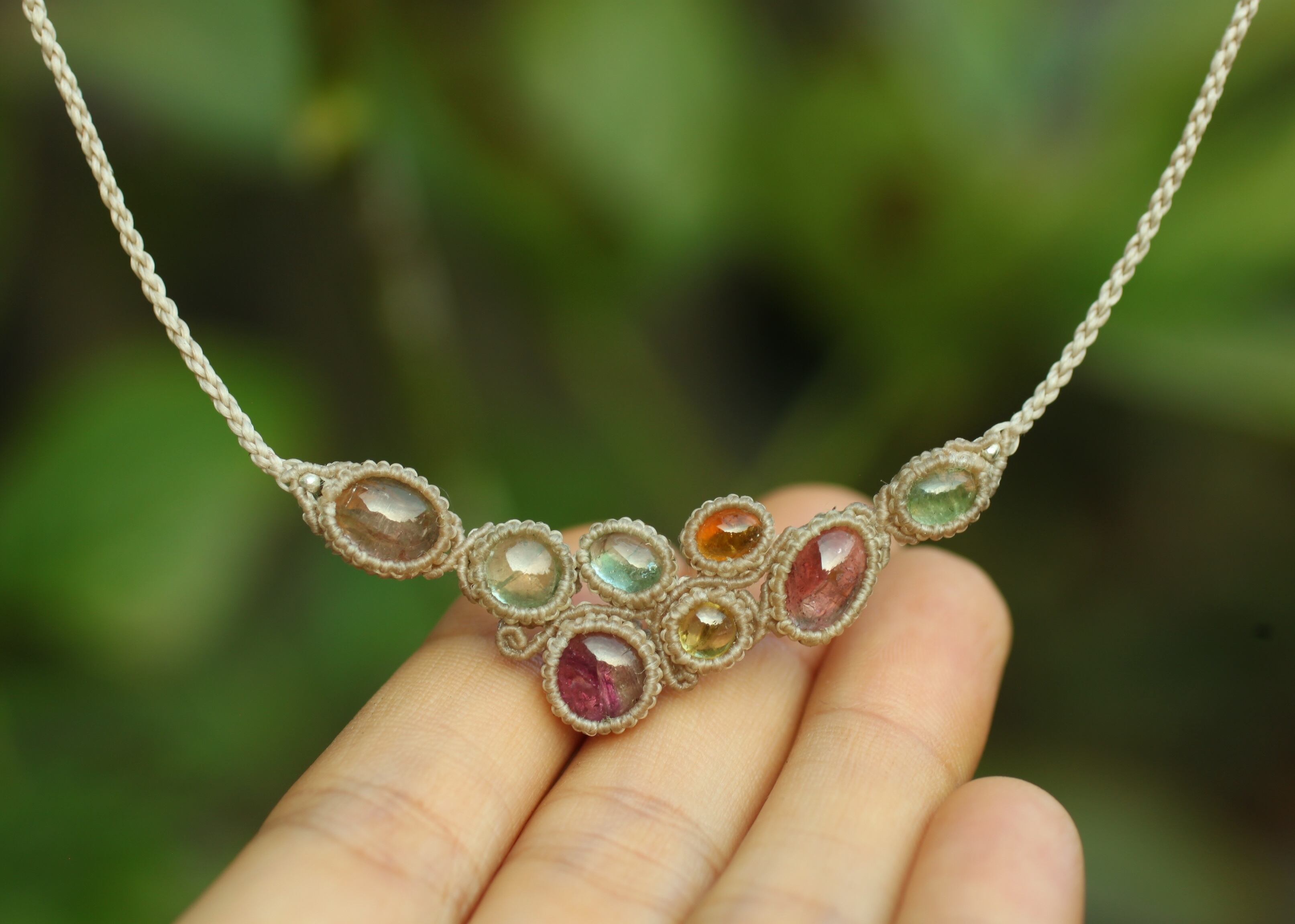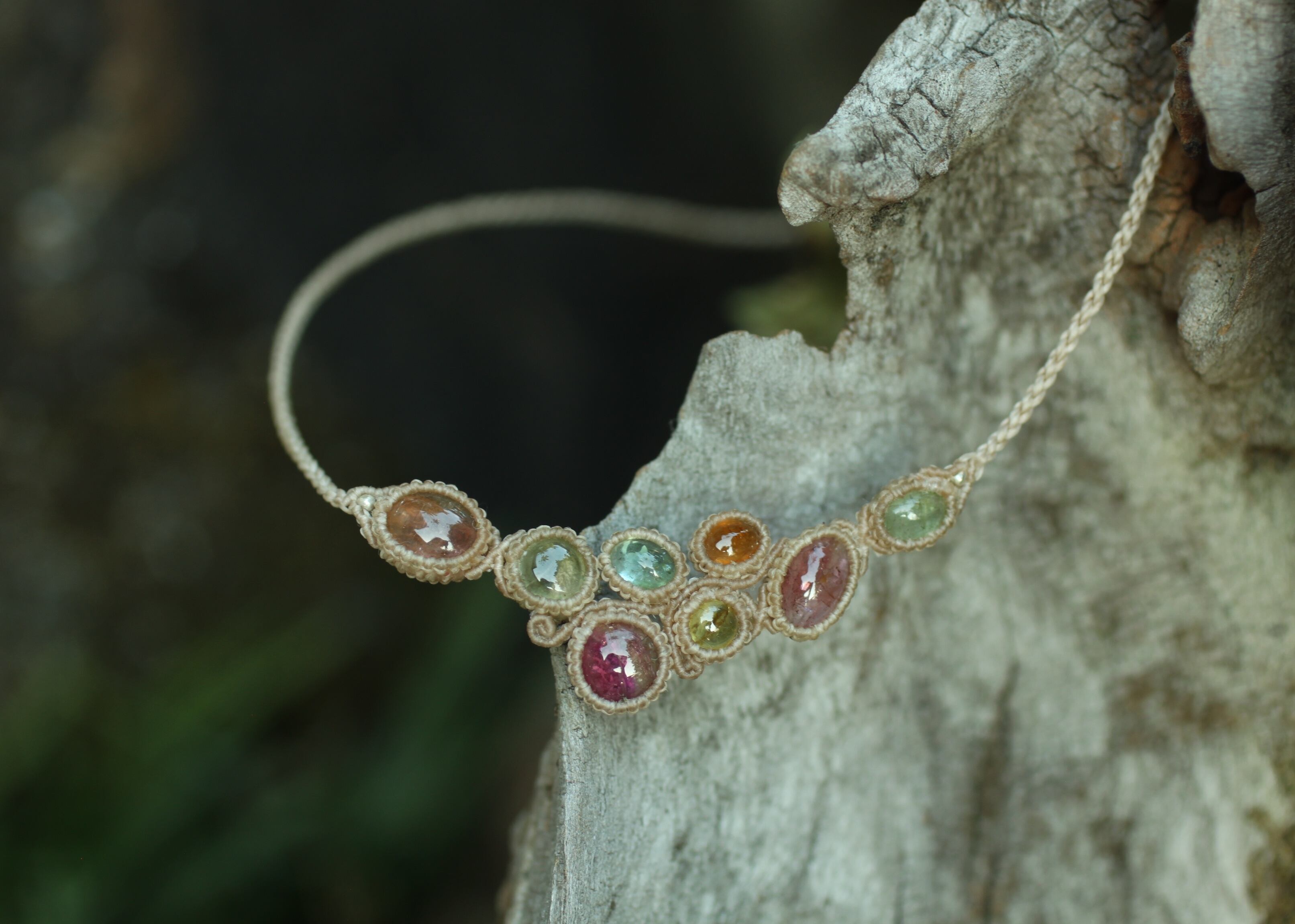 トルマリンの特性、多色性を活かした色とりどりな天然石をあしらった