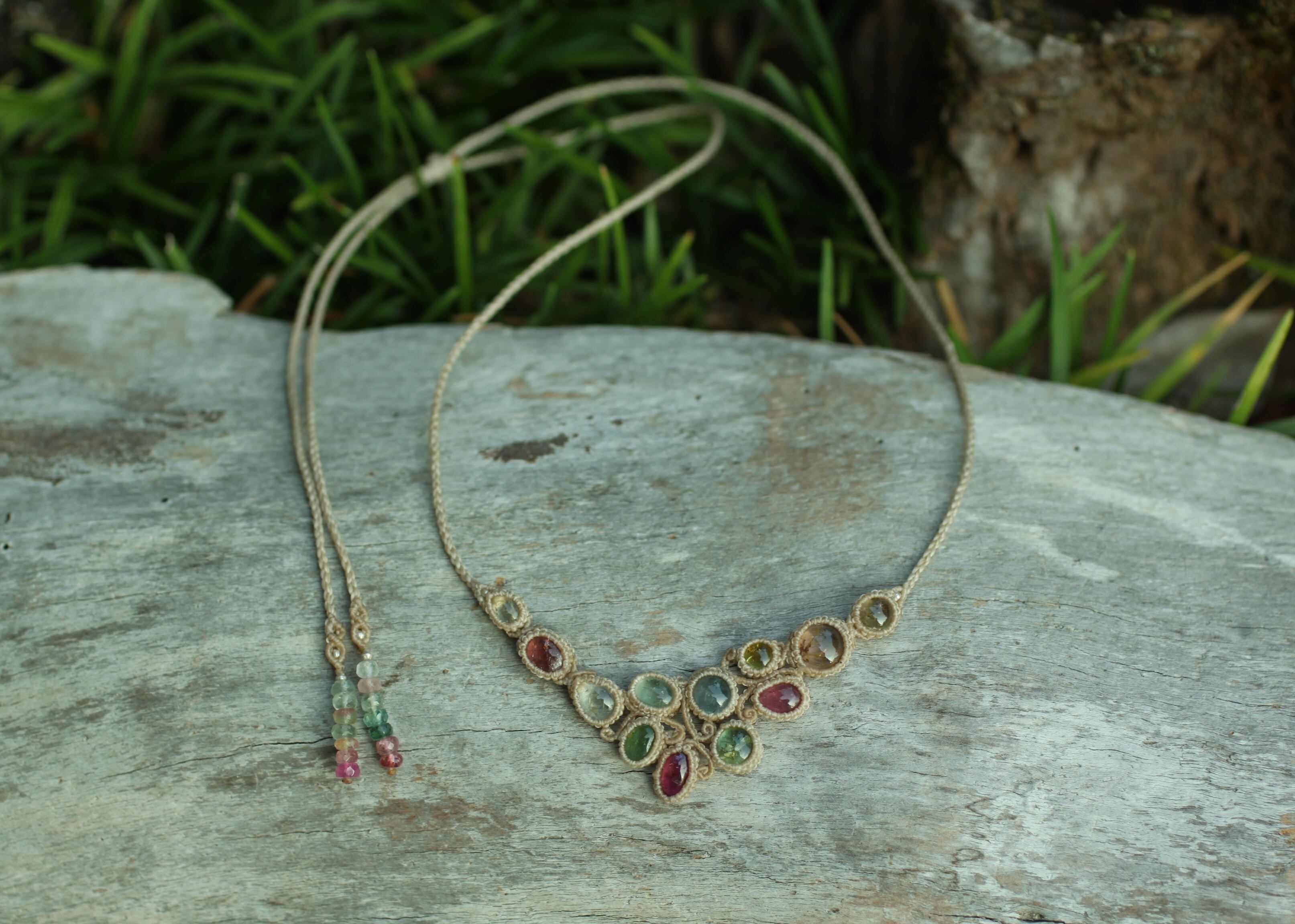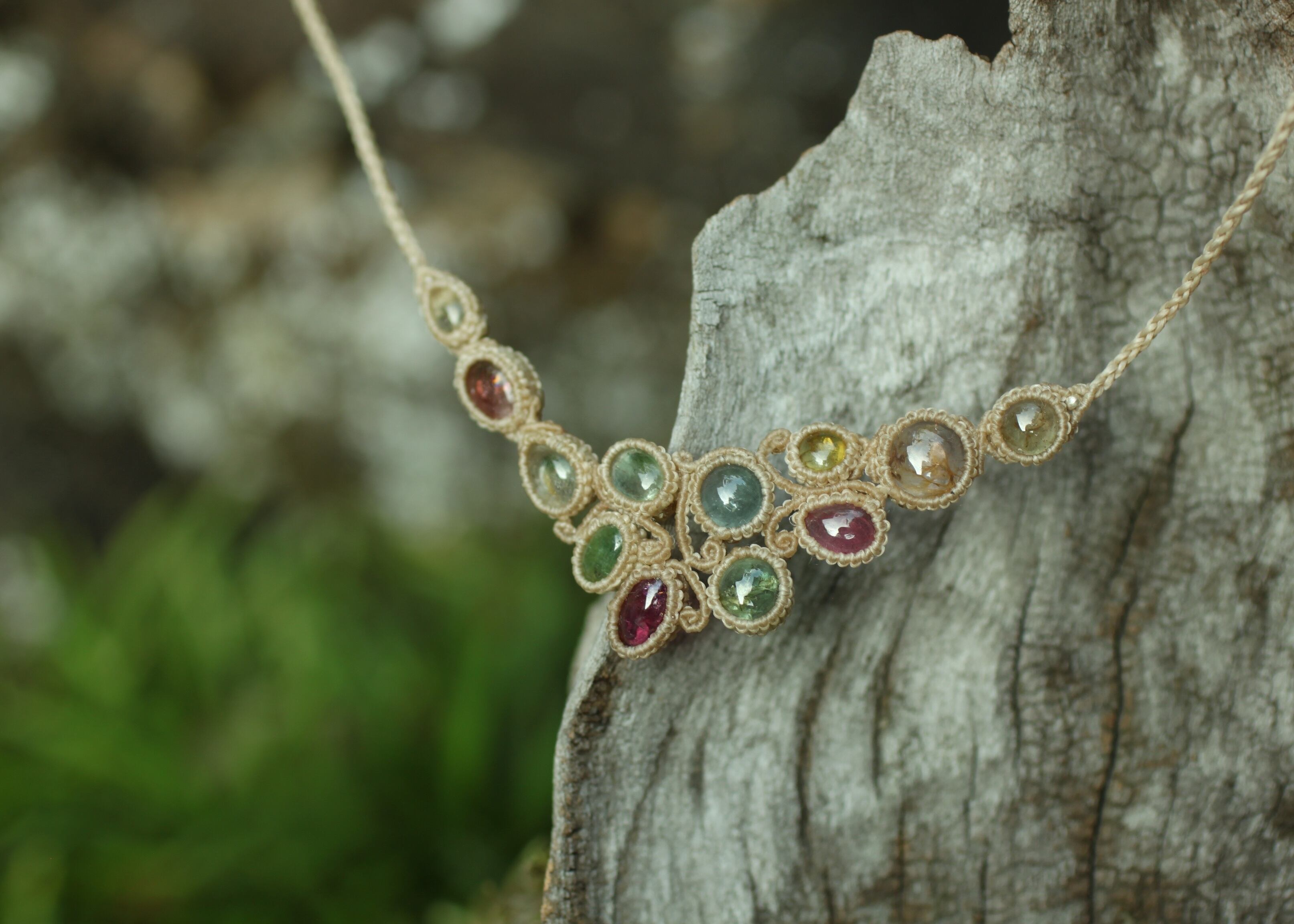 トルマリンの特性、多色性を活かした色とりどりな天然石をあしらった