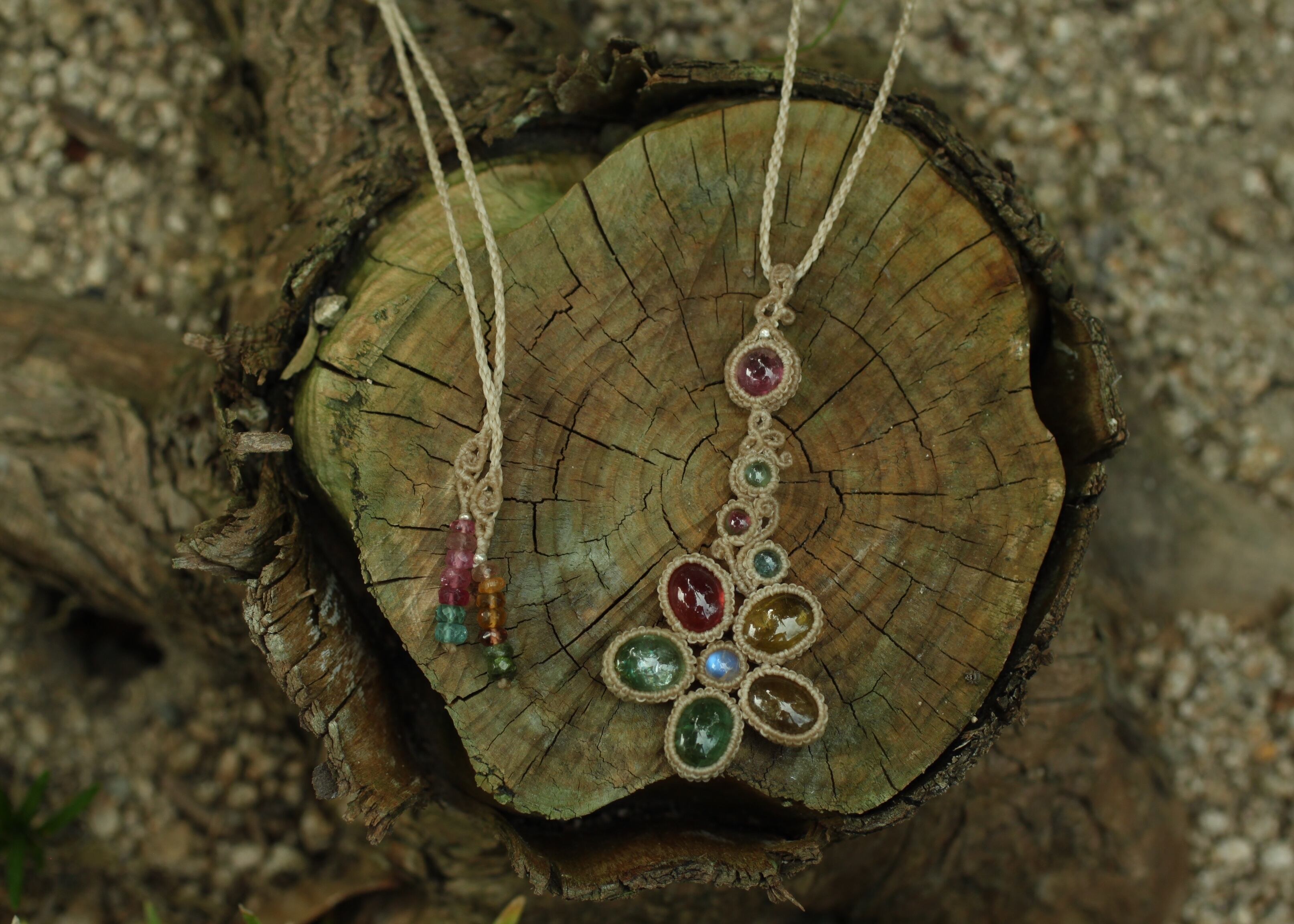 ※ 天然石を包むコードを始めトップ部分に使用したマクラメ編みコードは、