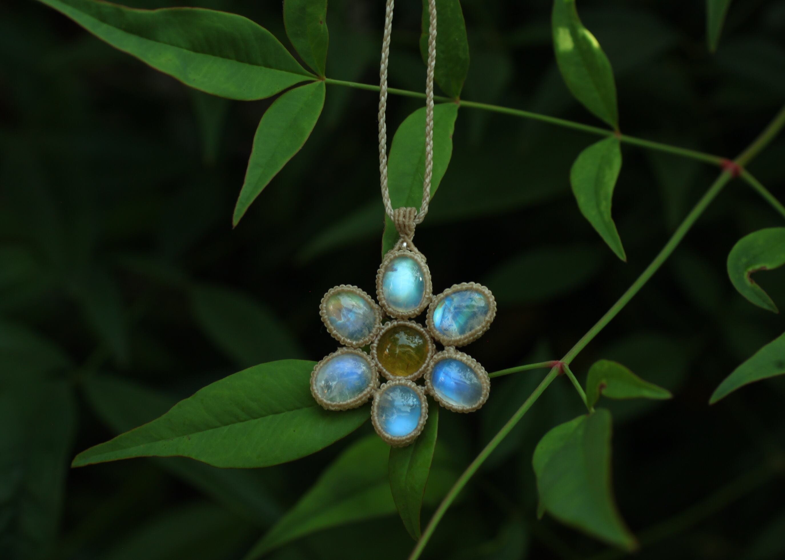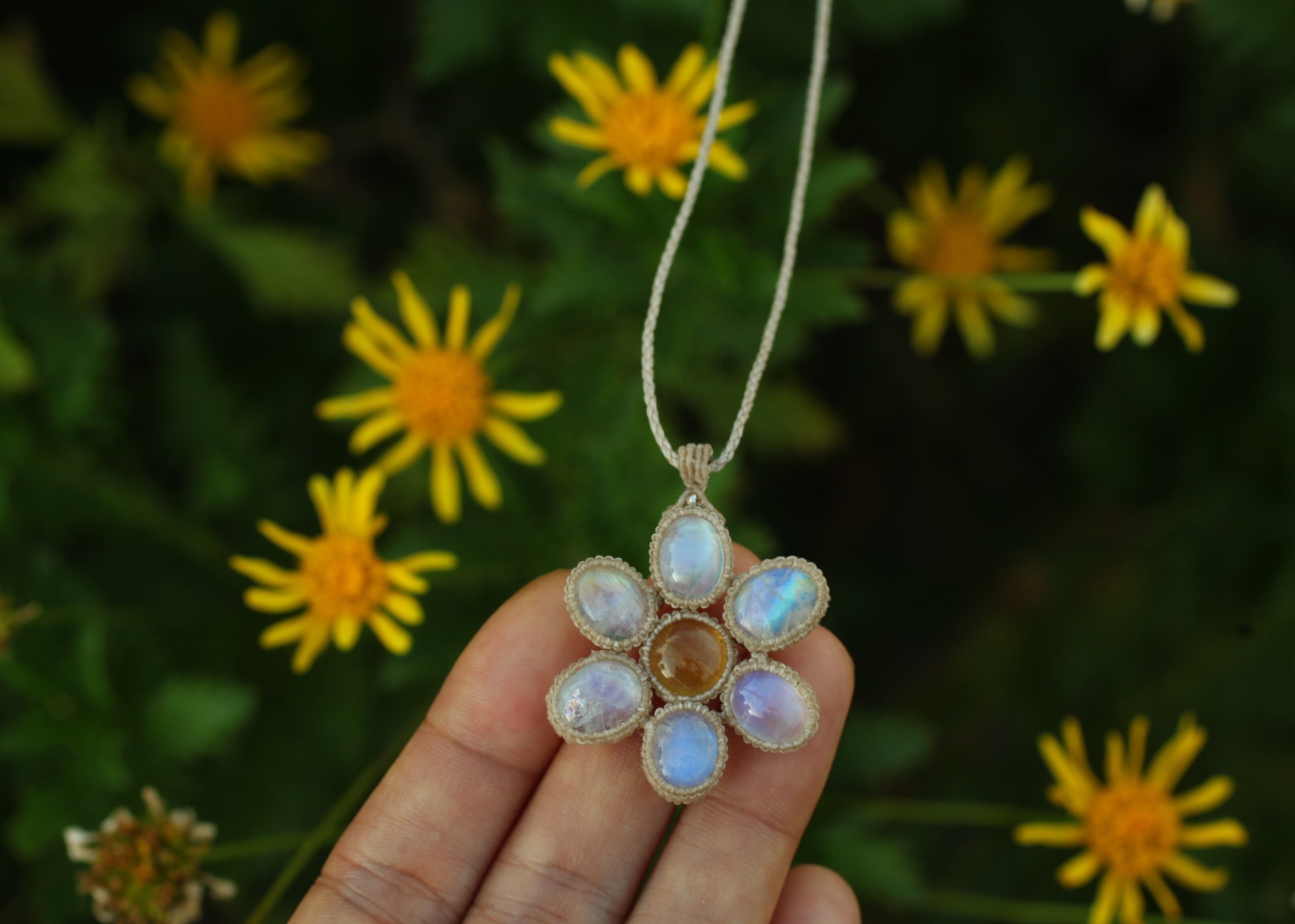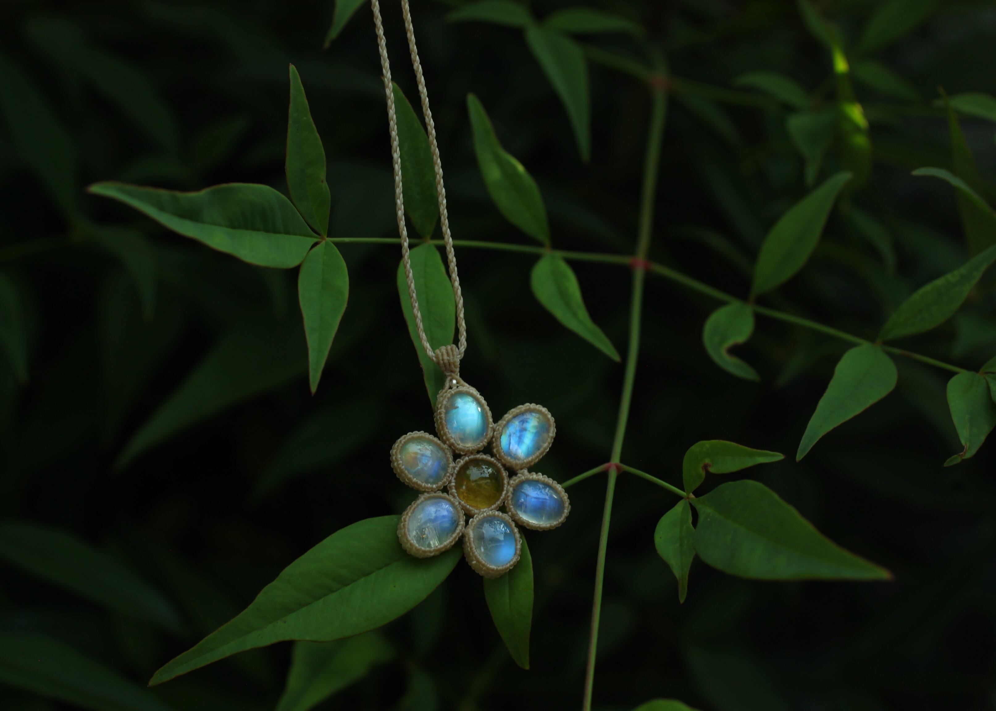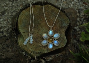 イエローベリル × ホワイトラブラドライト お花ペンダント