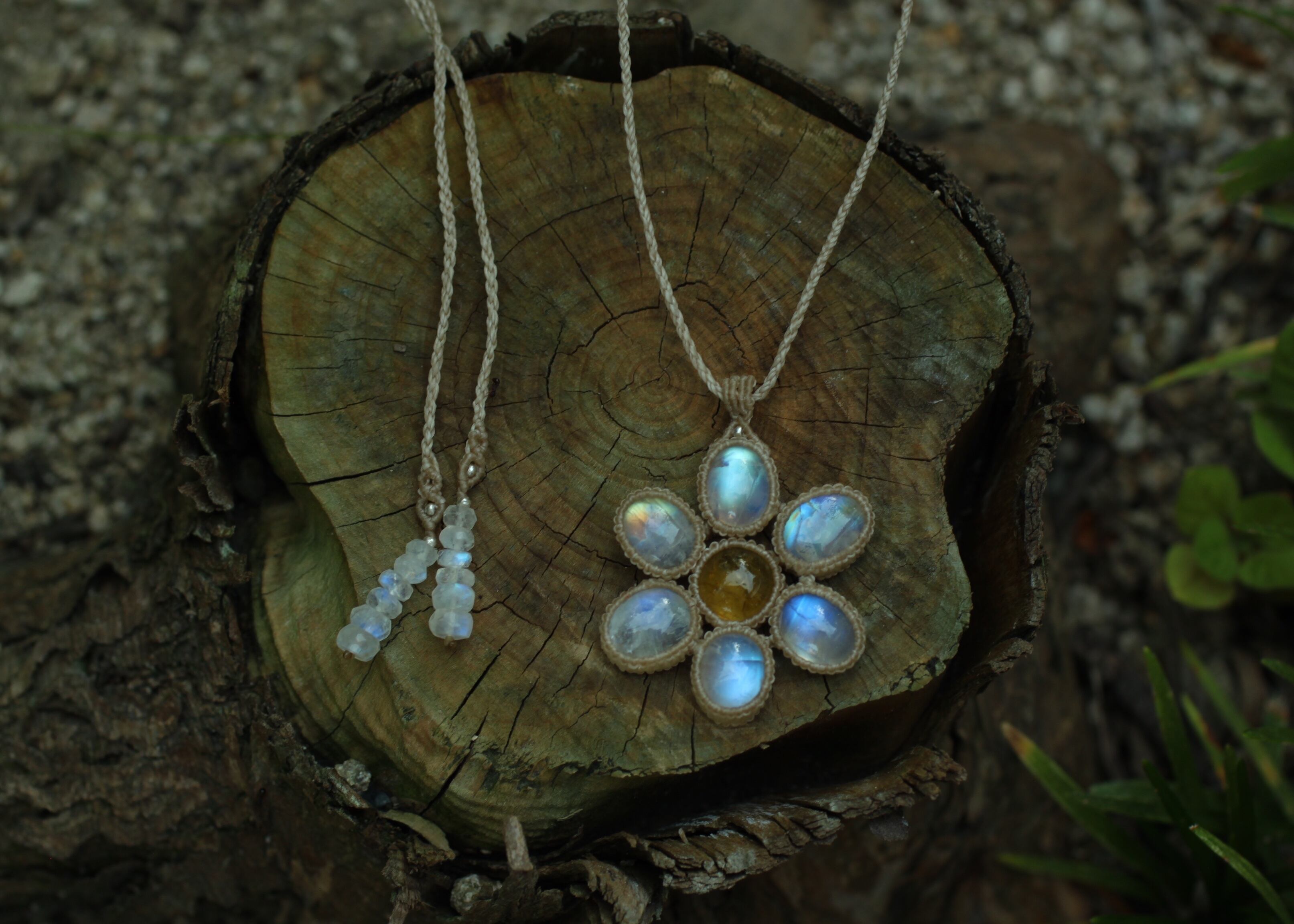 ※ 天然石を包むコードを始めトップ部分に使用したマクラメ編みコードは、