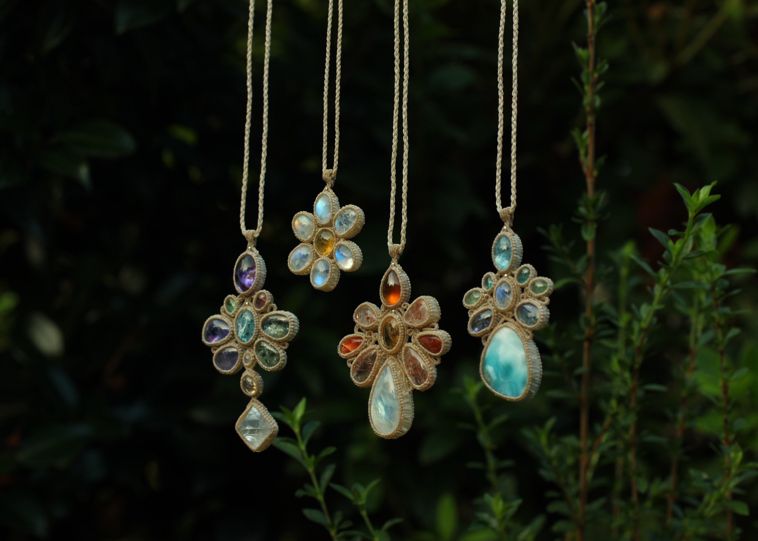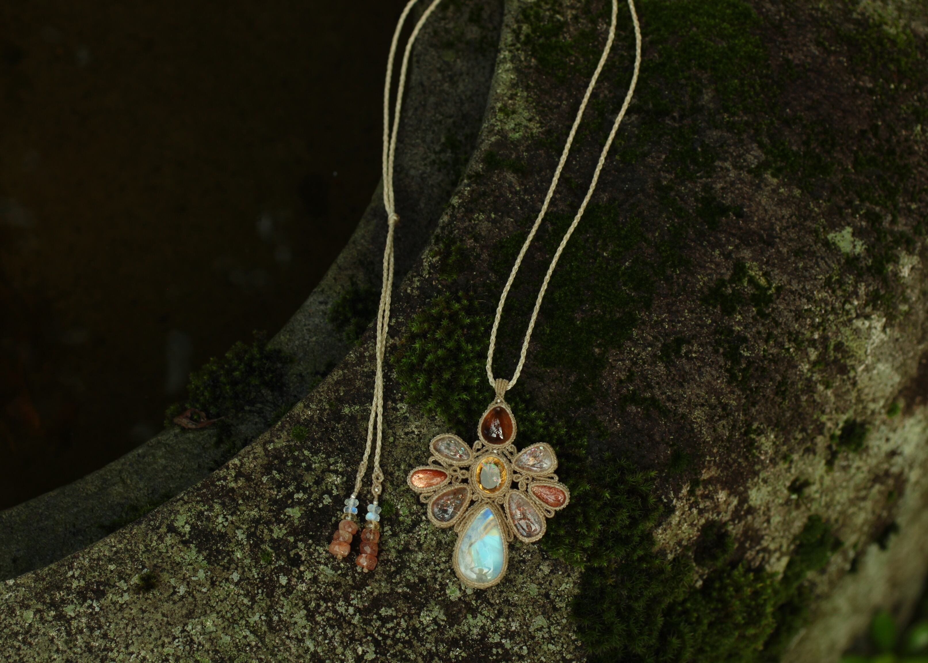 ※ 天然石を包むコードを始めトップ部分に使用したマクラメ編みコードは、