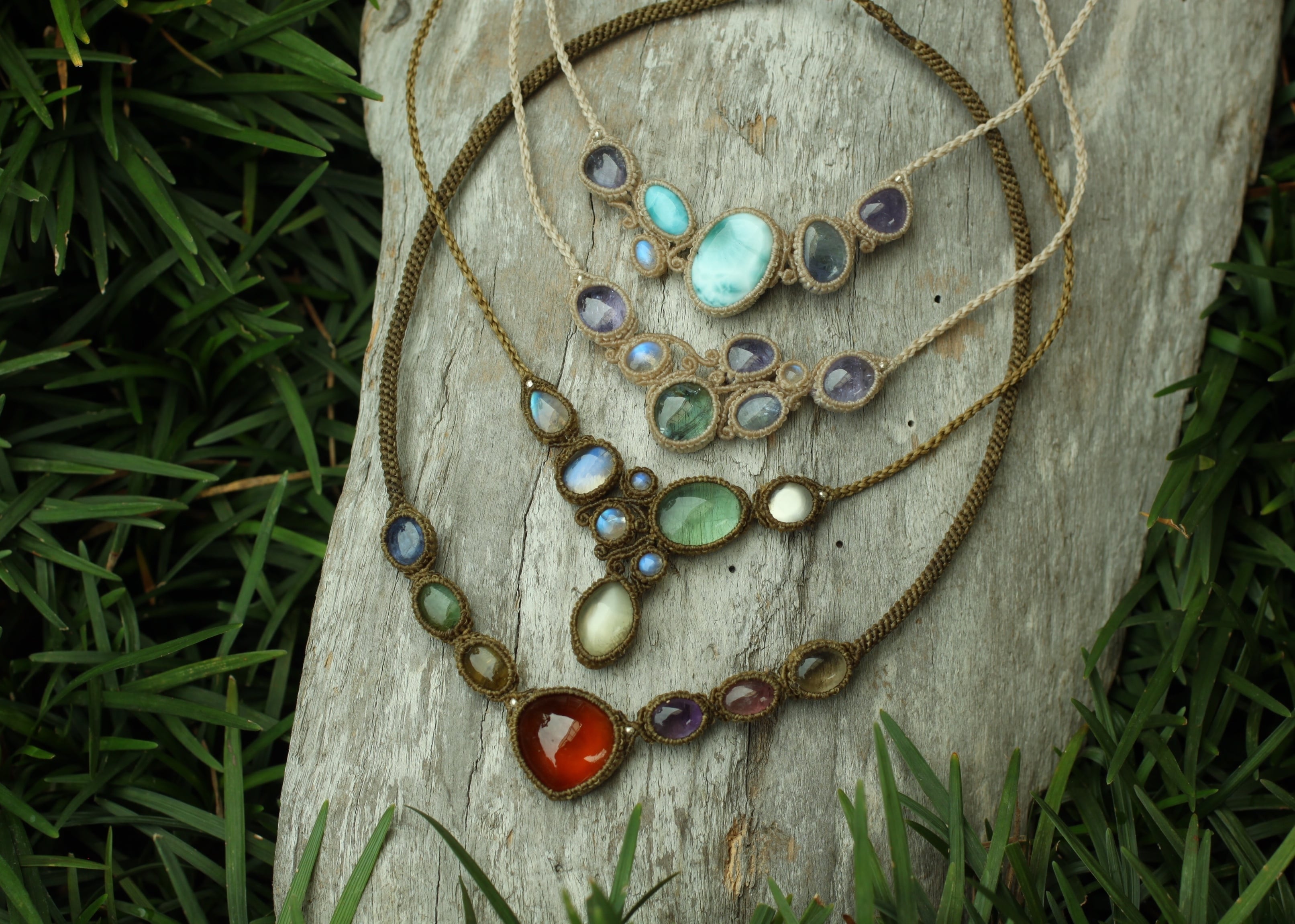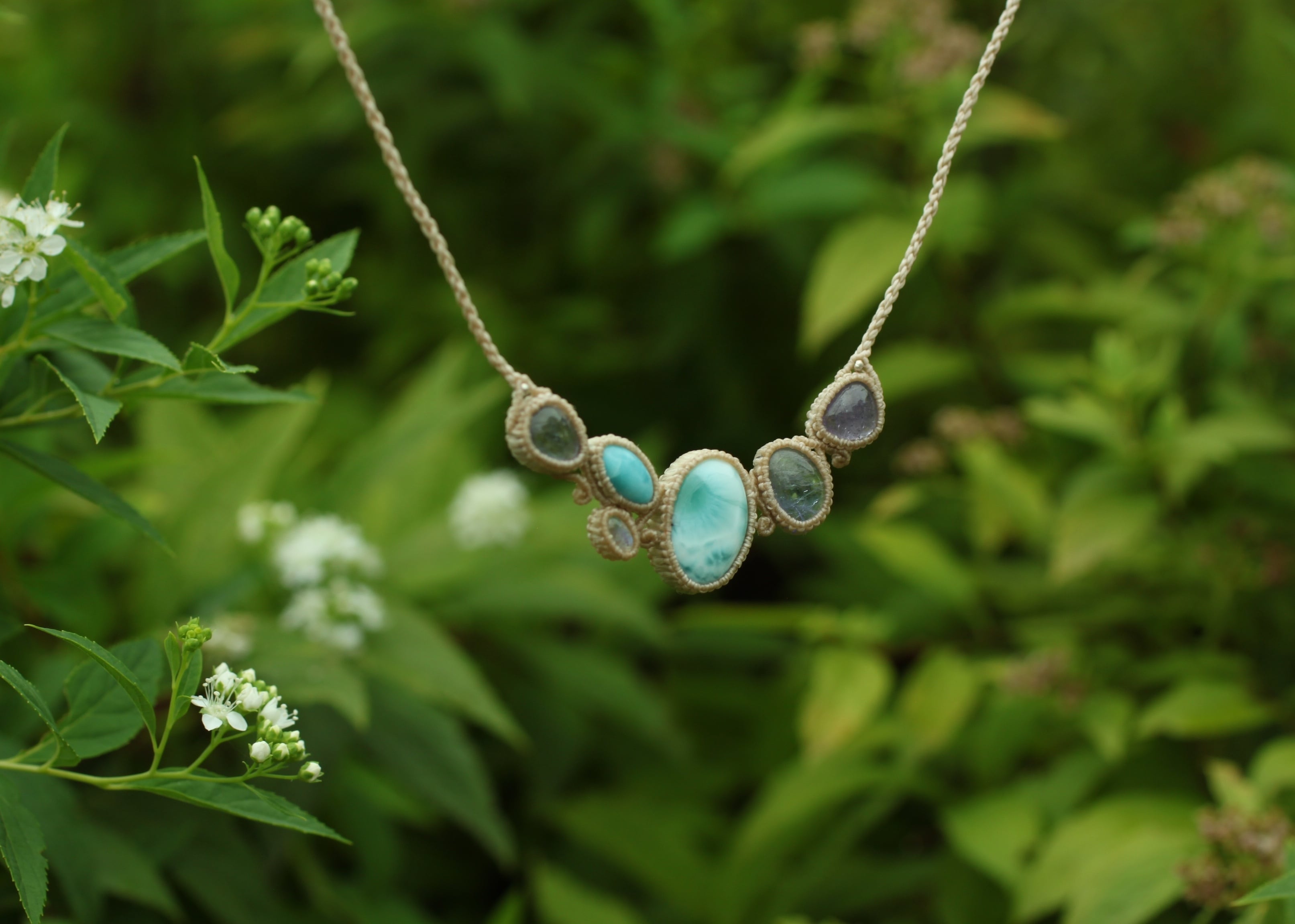 ※ 天然石を包むコードを始めトップ部分に使用したマクラメ編みコードは、
