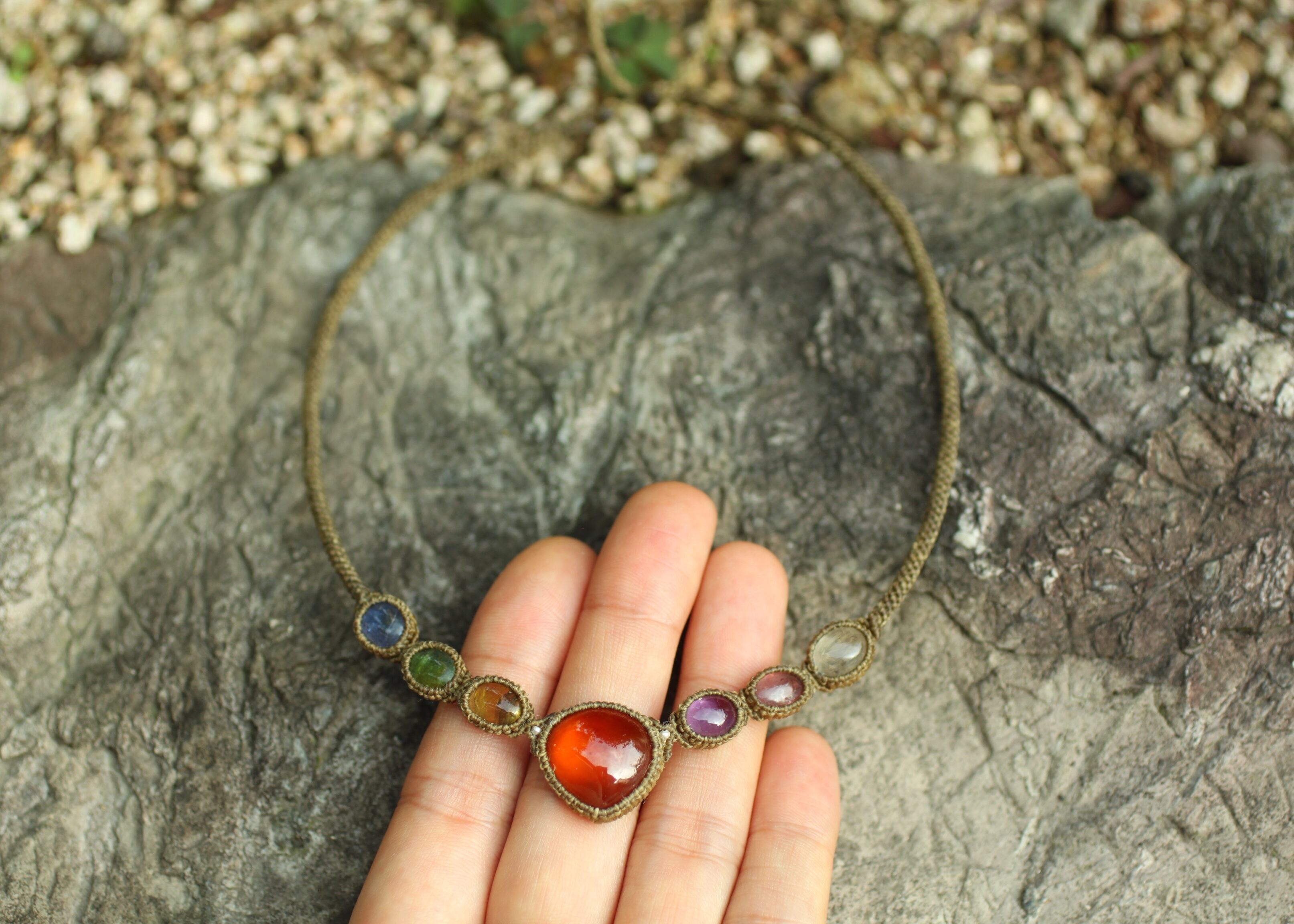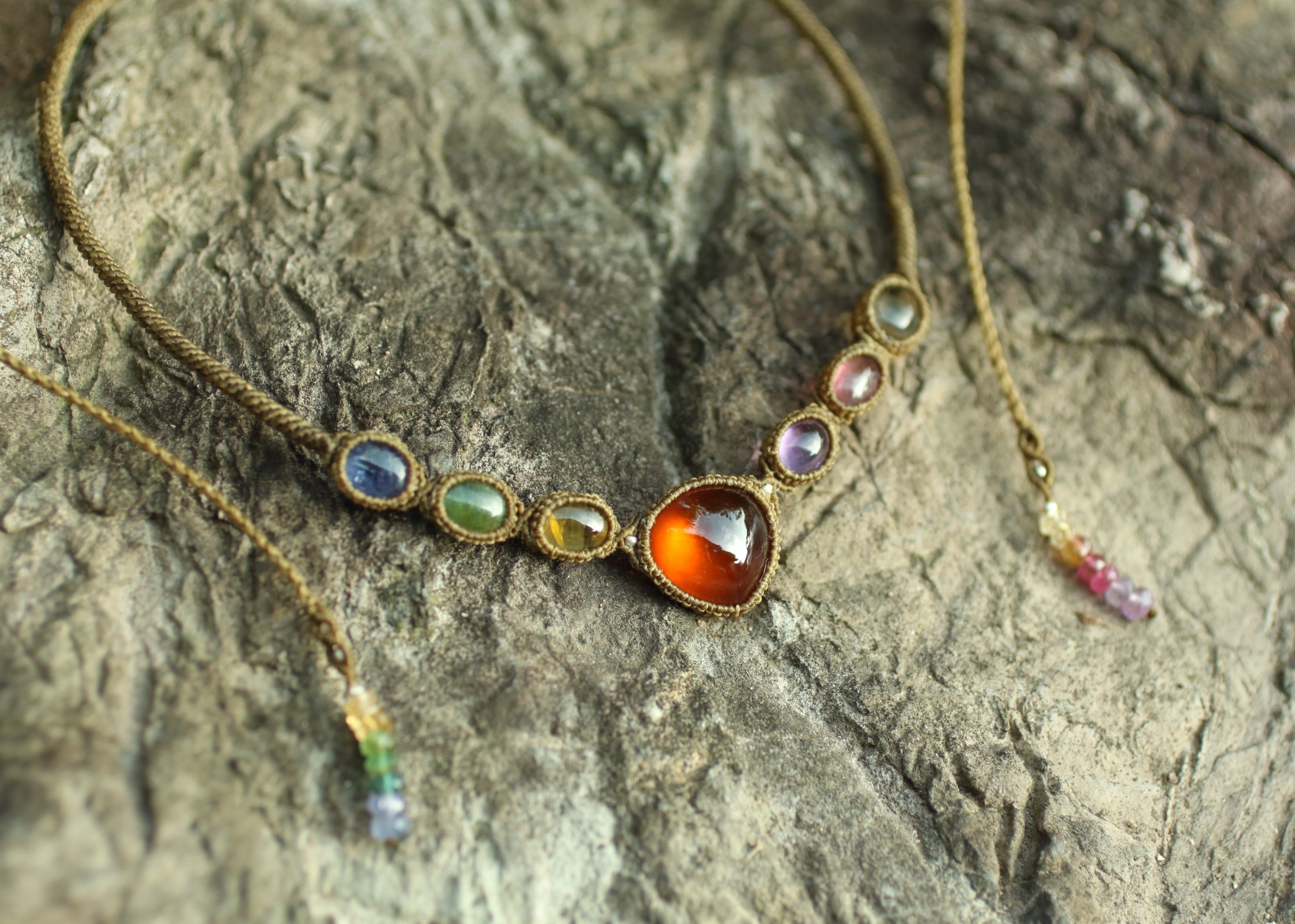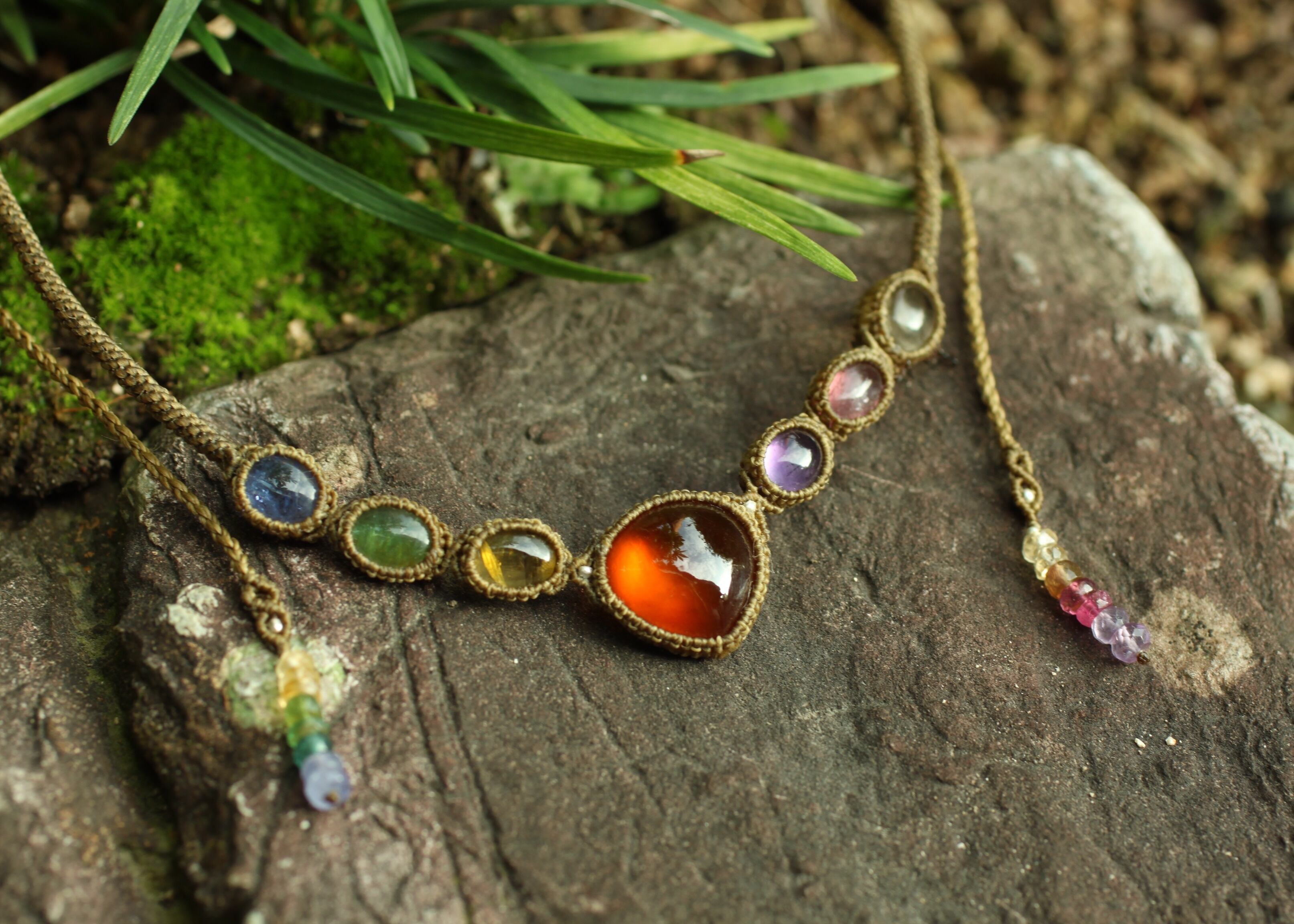 ※ 天然石を包むコードを始めトップ部分に使用したマクラメ編みコードは、
