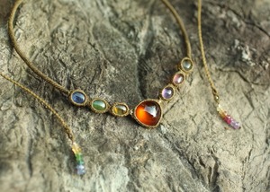 虹色を首元にまとうチョーカータイプのネックレスへとお仕立ていたしました