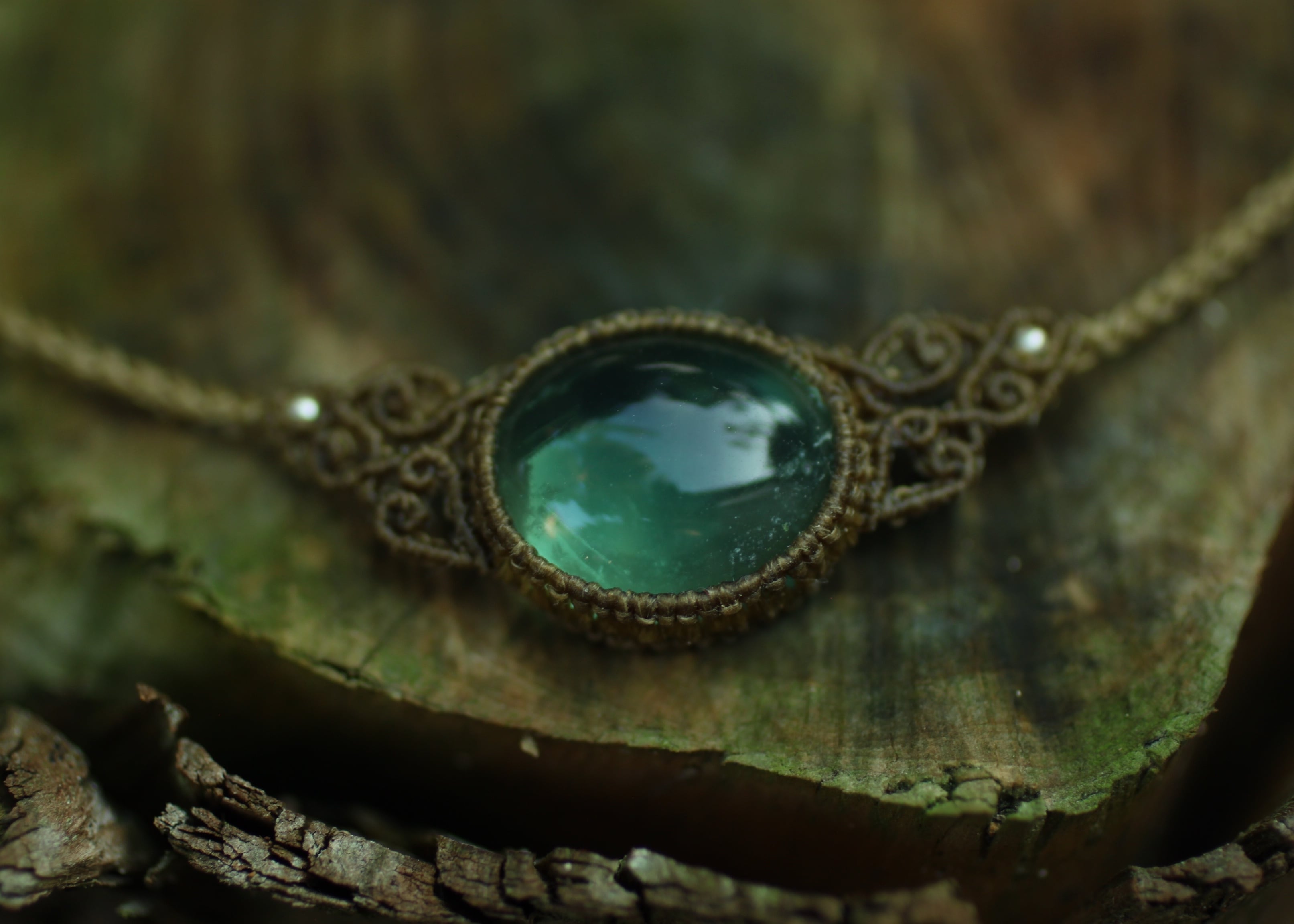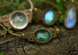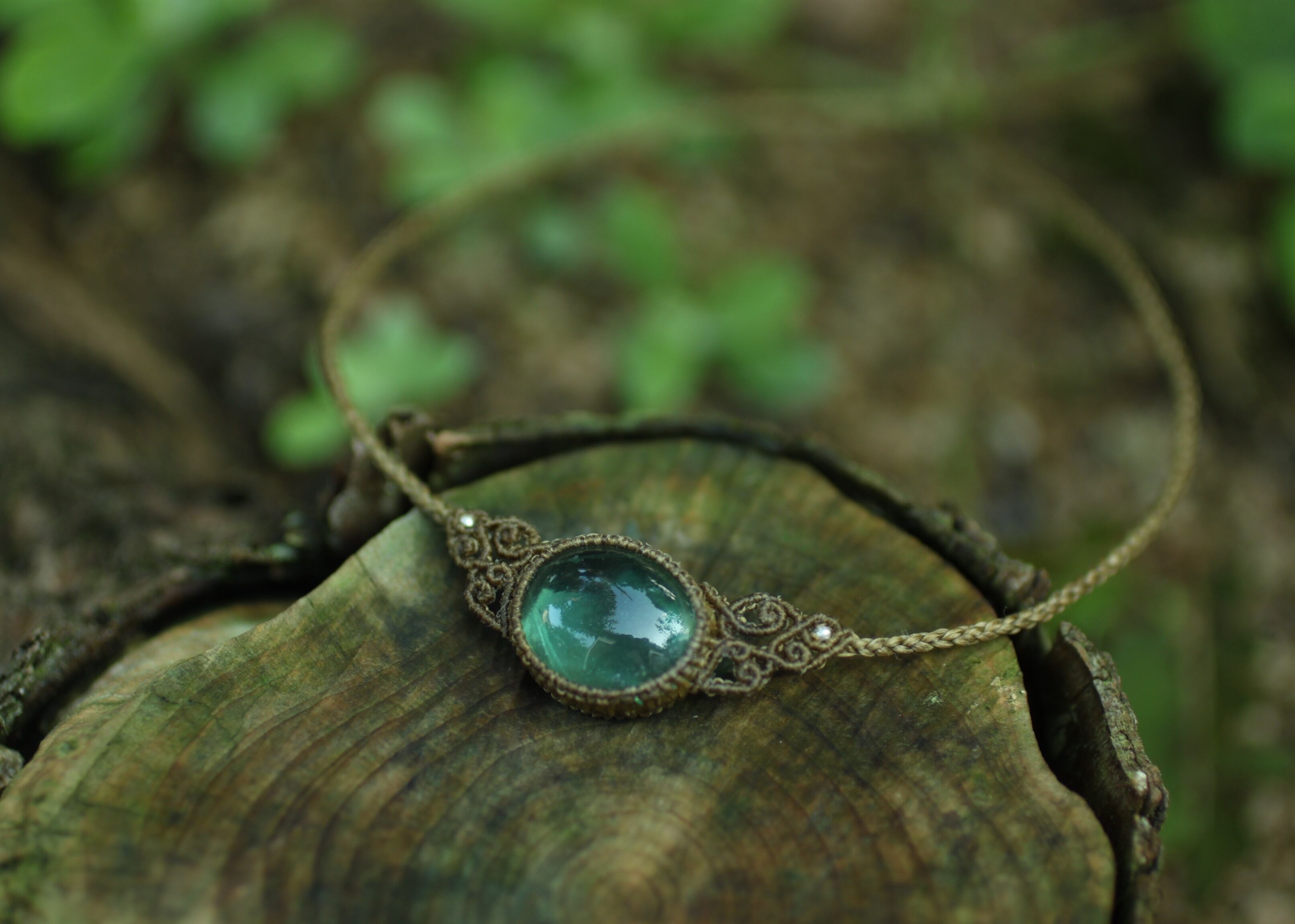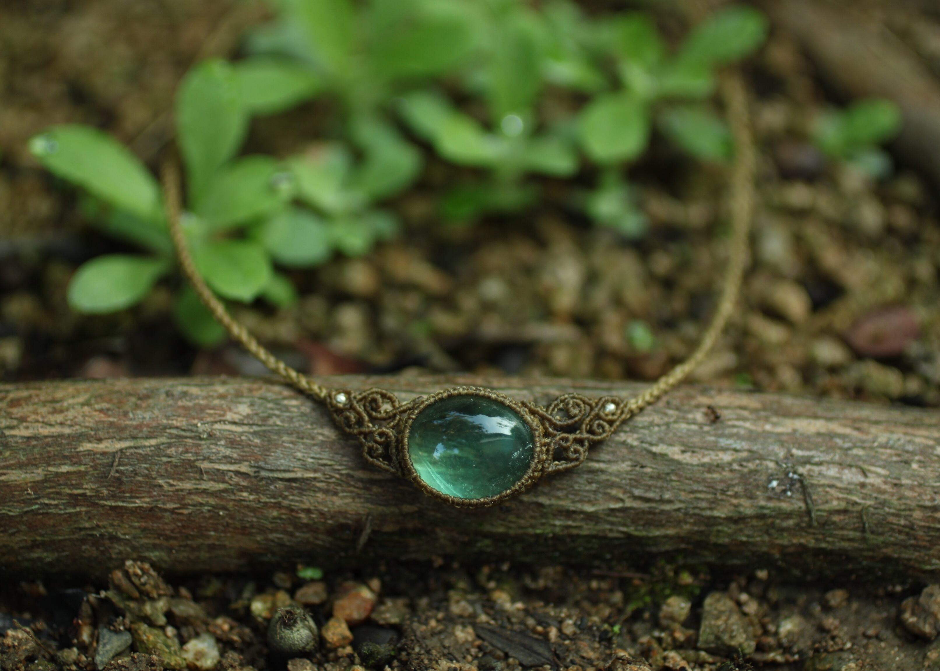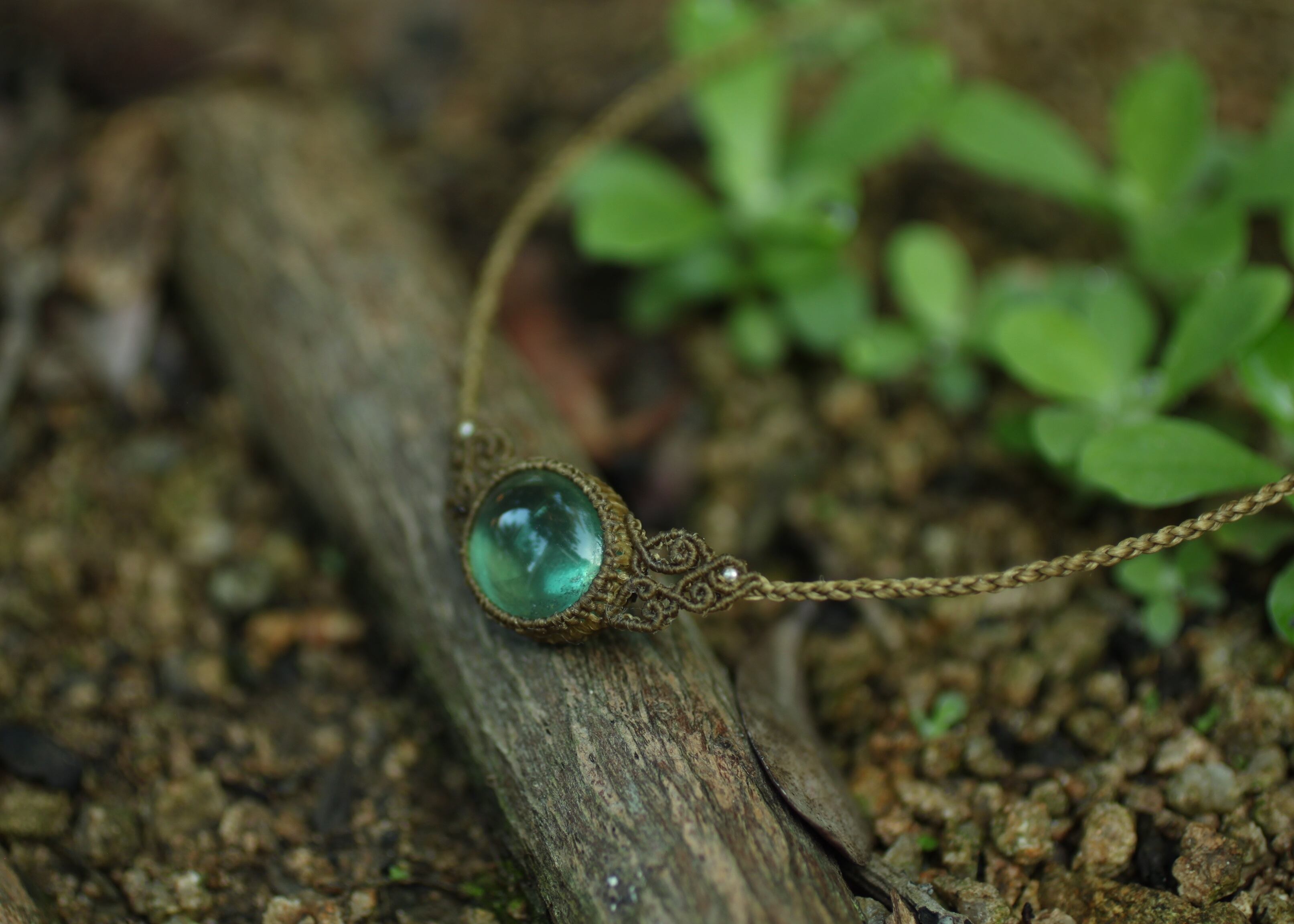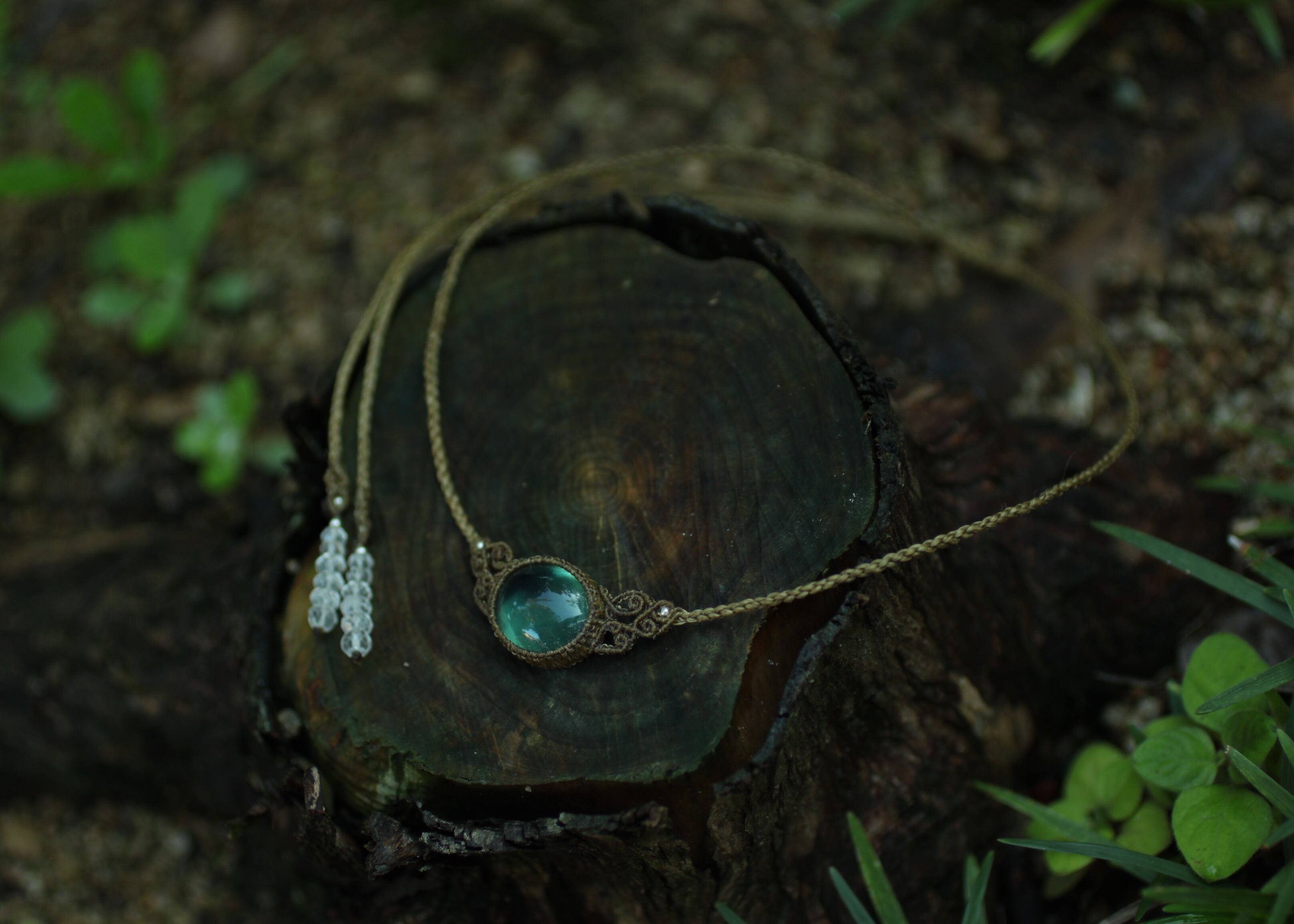 ※ 天然石を包むコードを始めトップ部分に使用したマクラメ編みコードは、