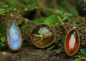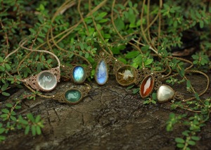 手縫い糸ほどの細いコードを使い出来る限り天然石の表情と繊細な仕上がりを重視し時間をかけ丁寧に編みました。
