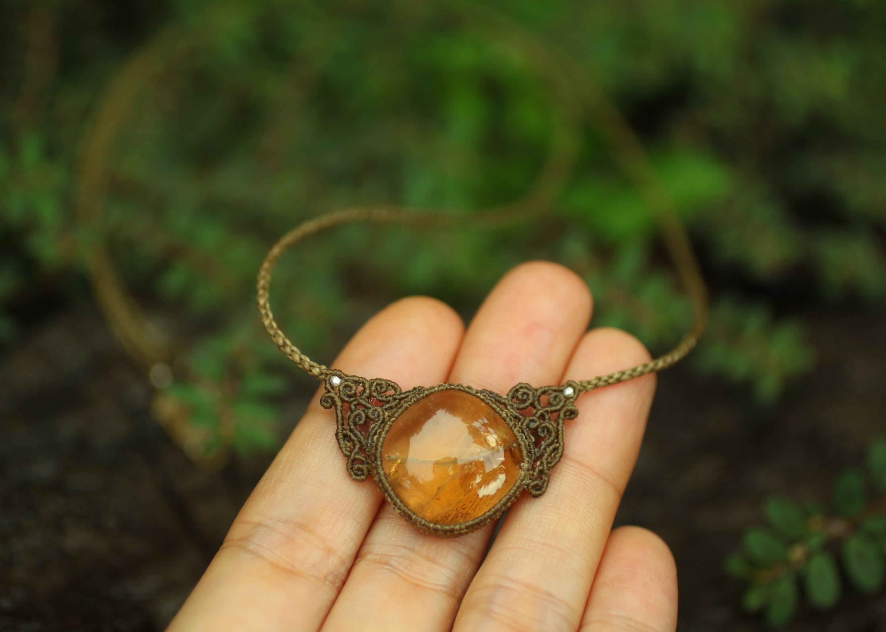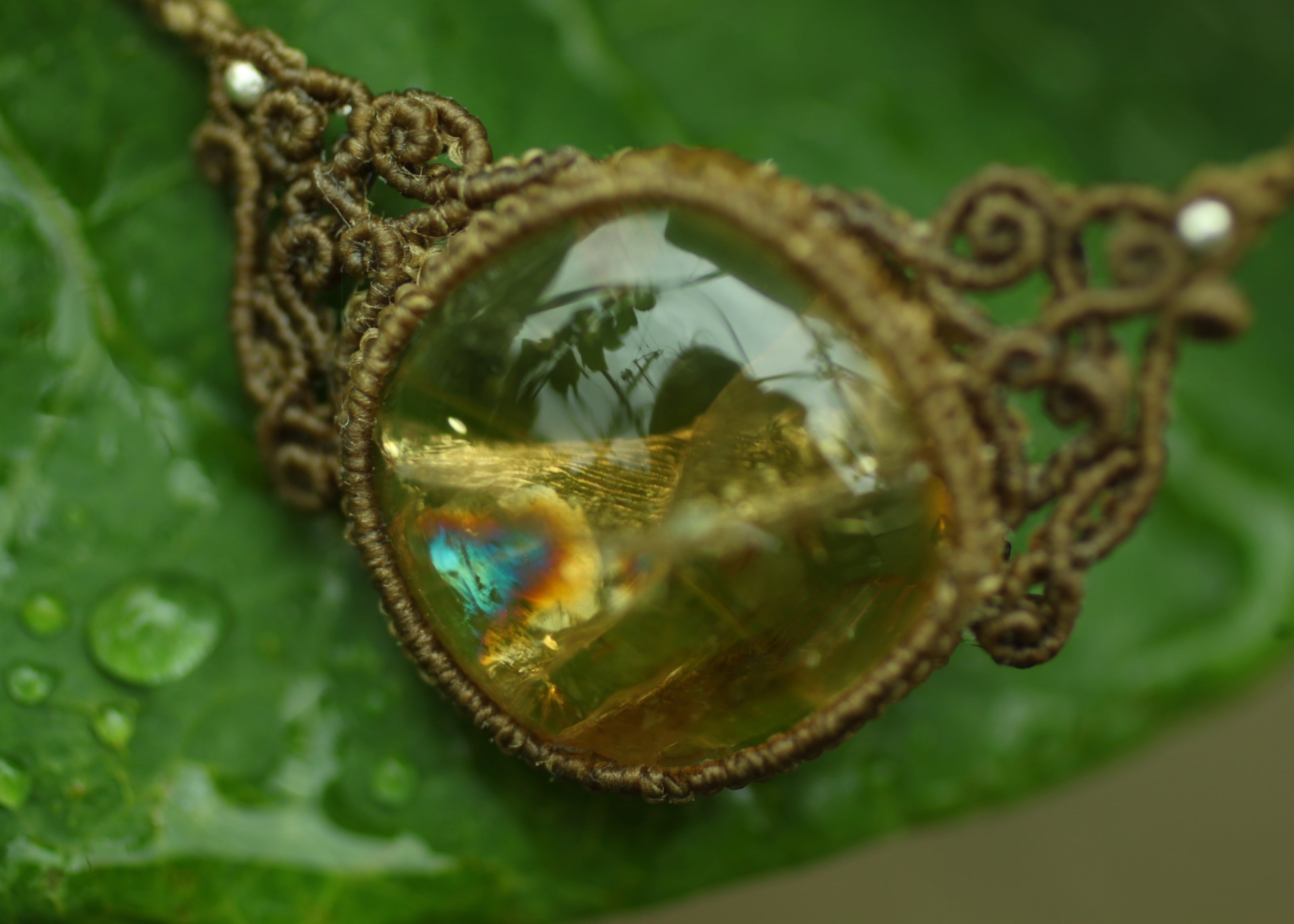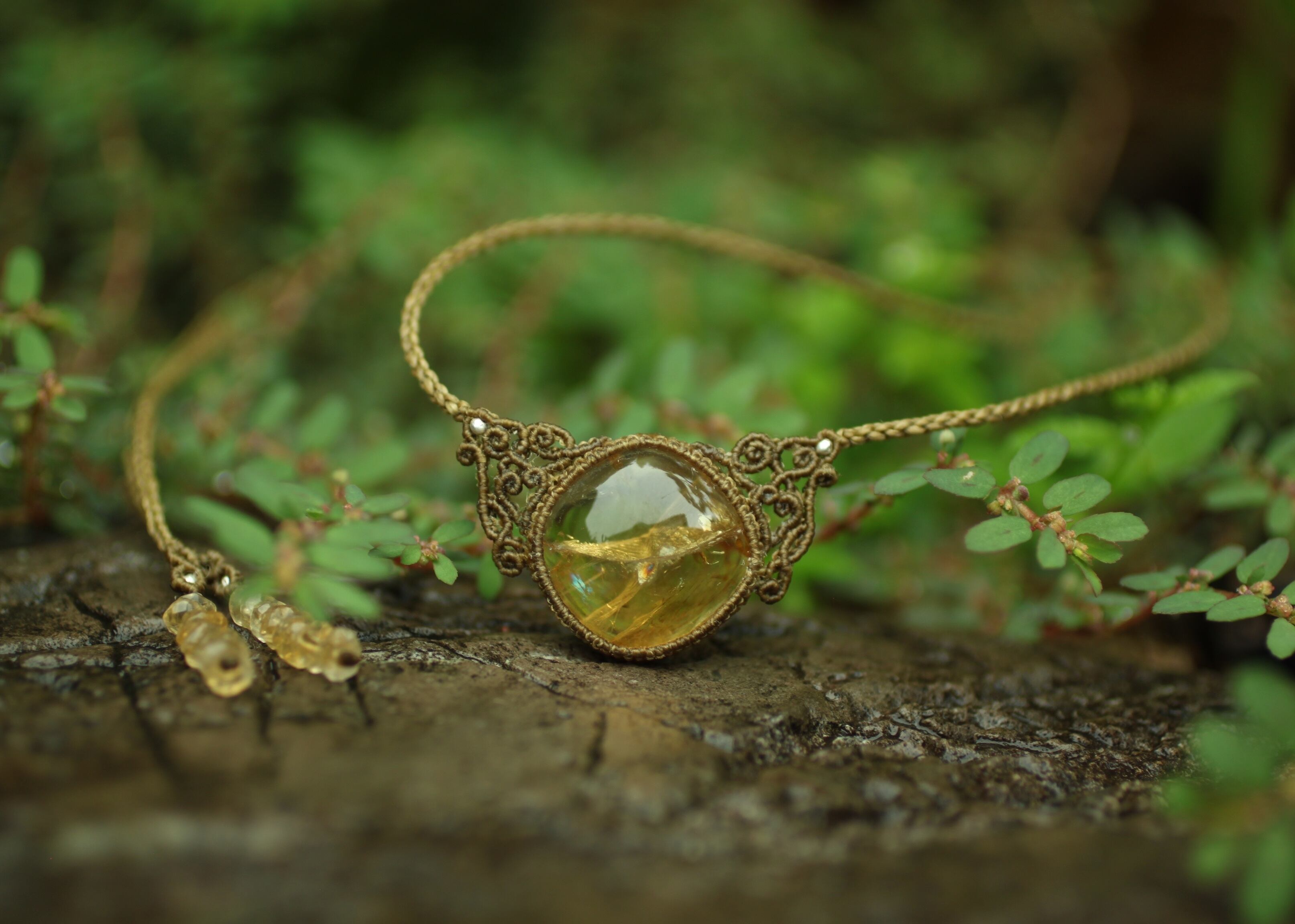 ※ 天然石を包むコードを始めトップ部分に使用したマクラメ編みコードは、