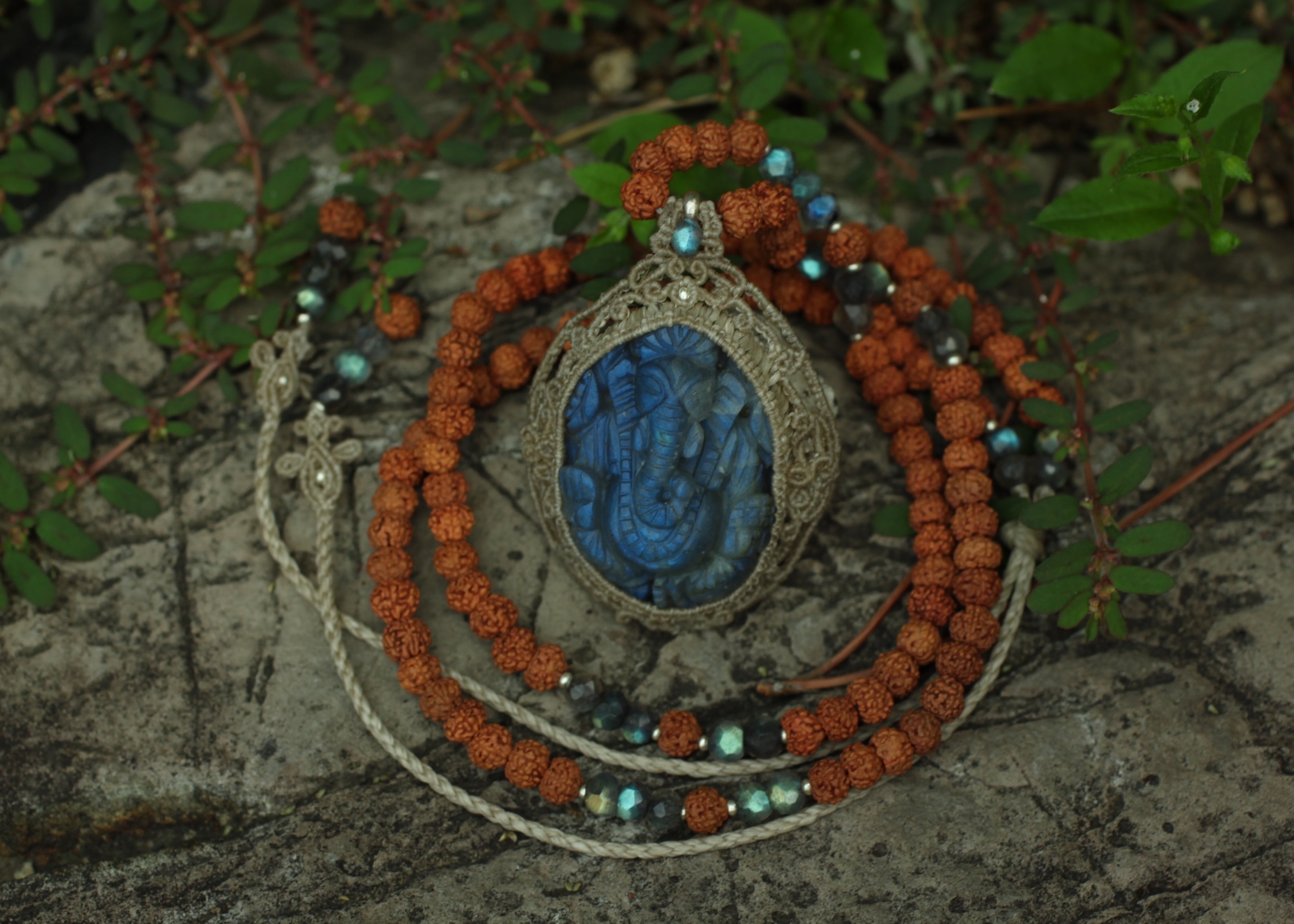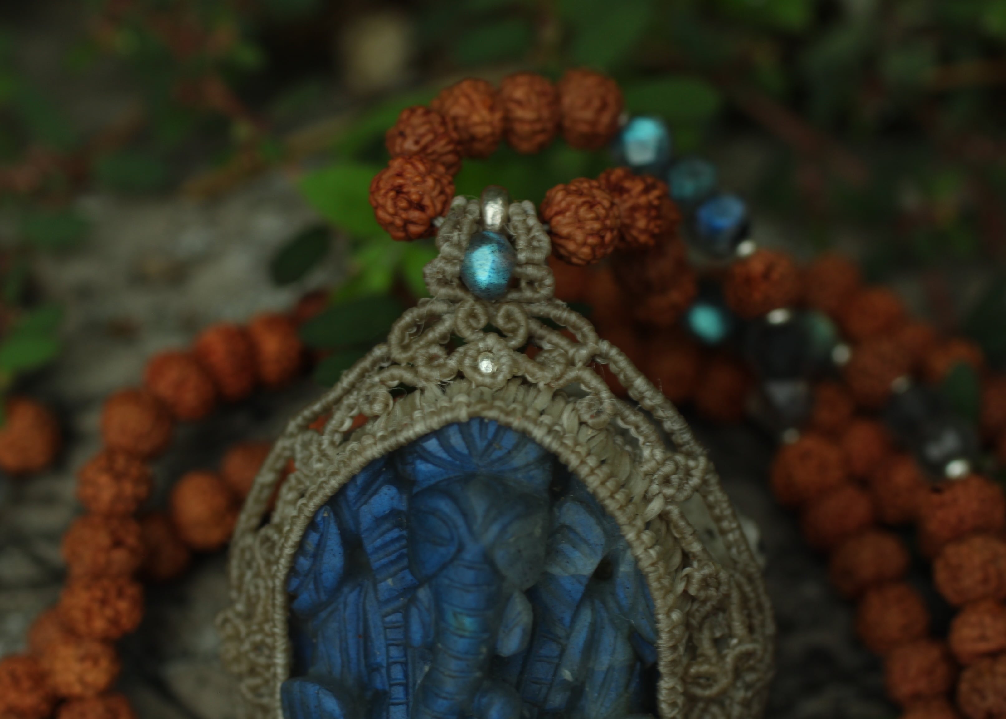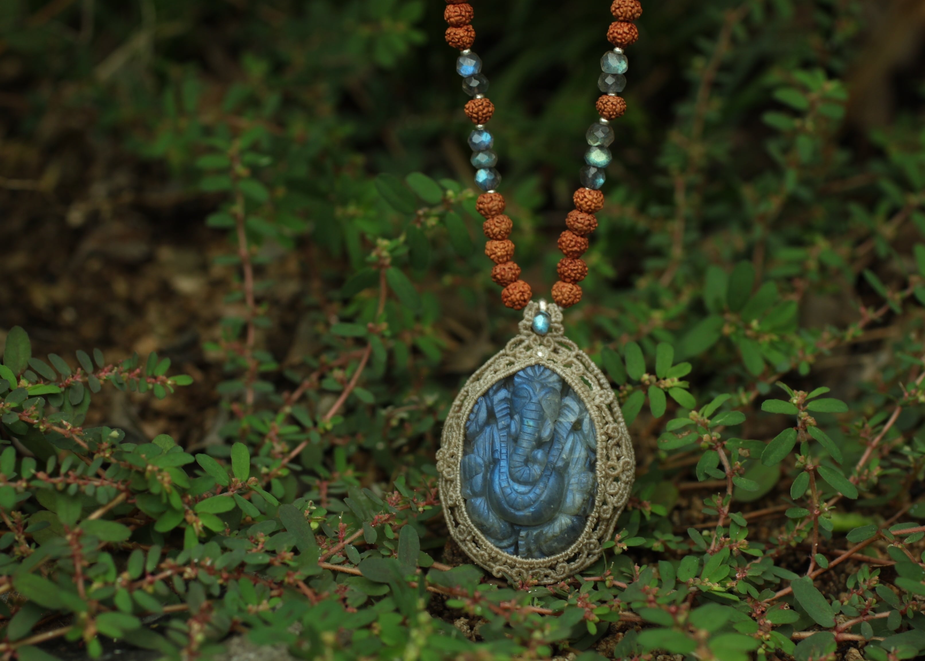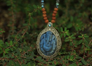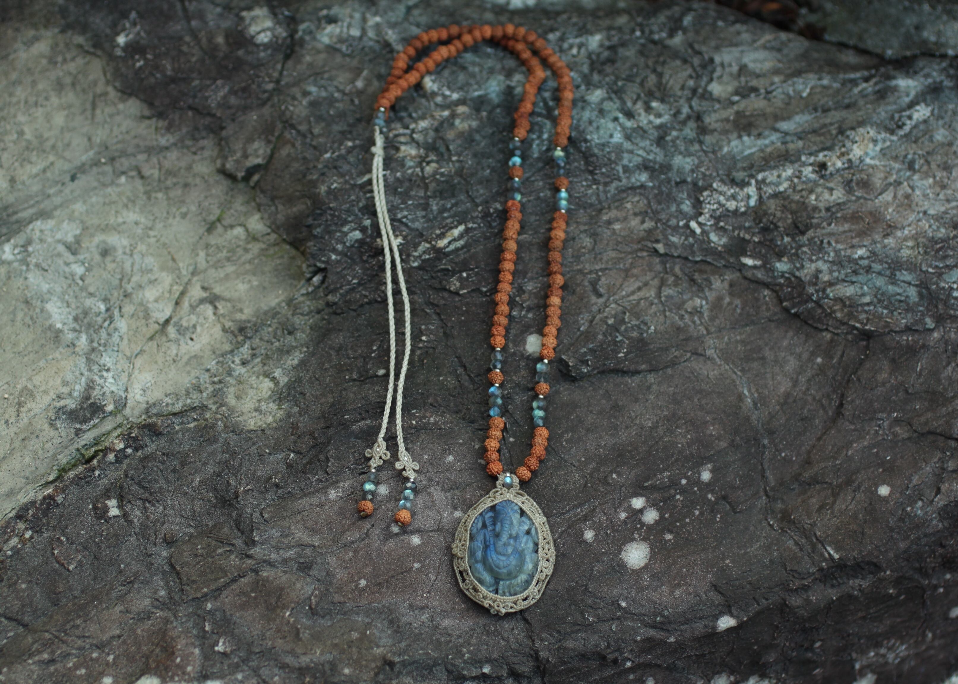 ラブラドライト ガネーシャ × 108粒 菩提樹の実 ネックレス