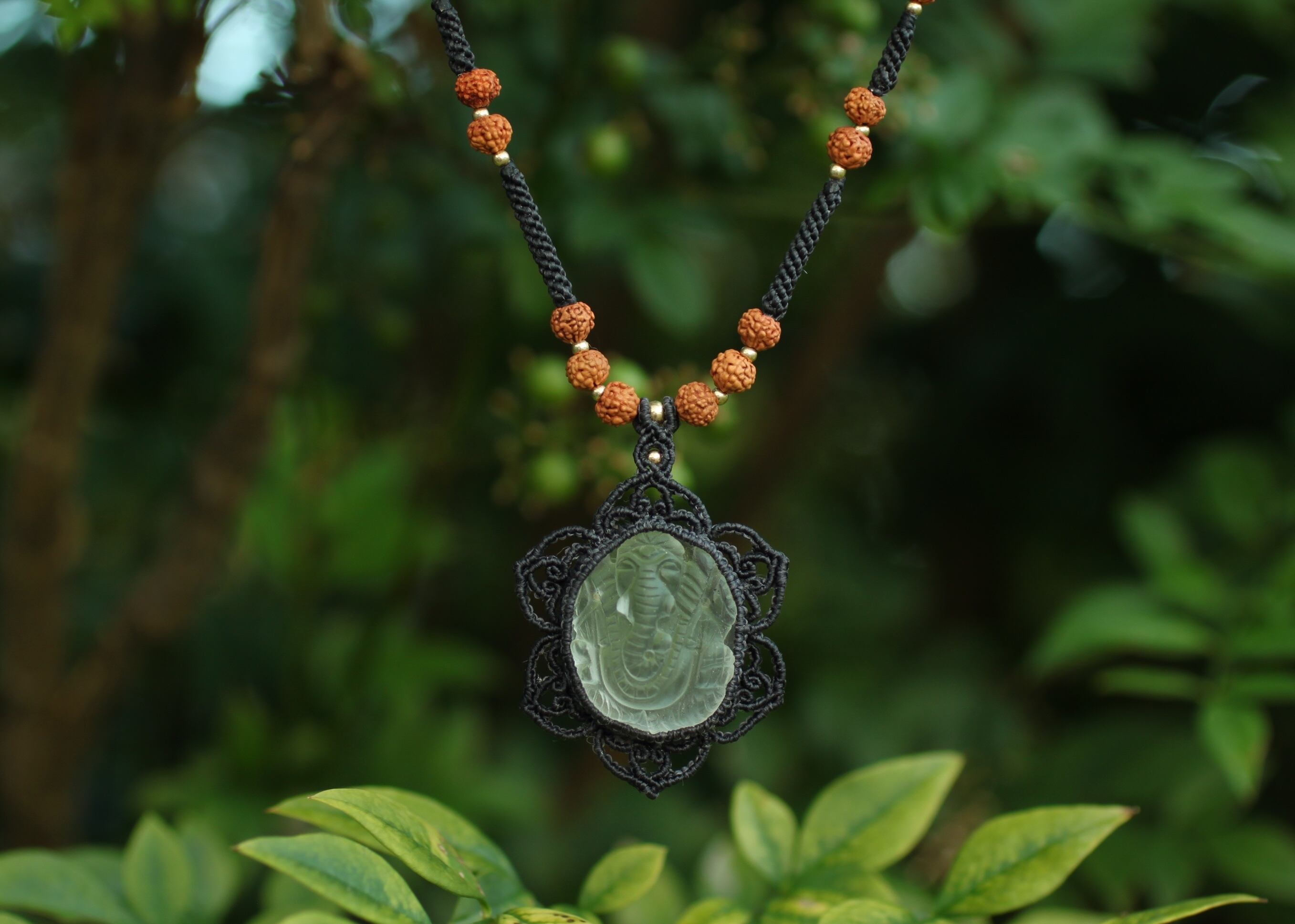 装飾として . . . . . 菩提樹、水晶、14kgf ビーズ 使用