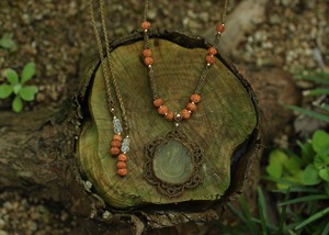 ※ 天然石を包むコードを始めトップ部分に使用したマクラメ編みコードは、