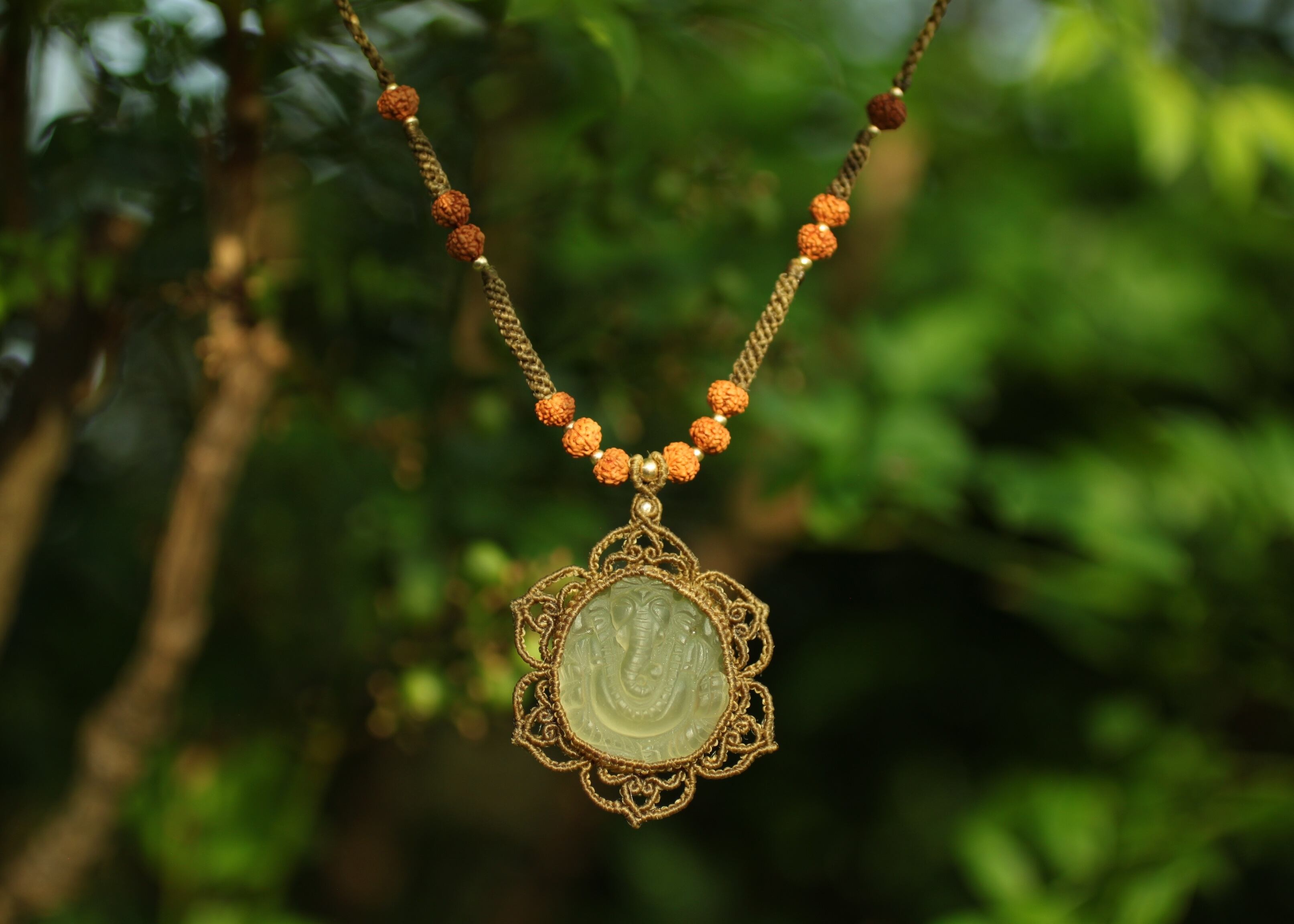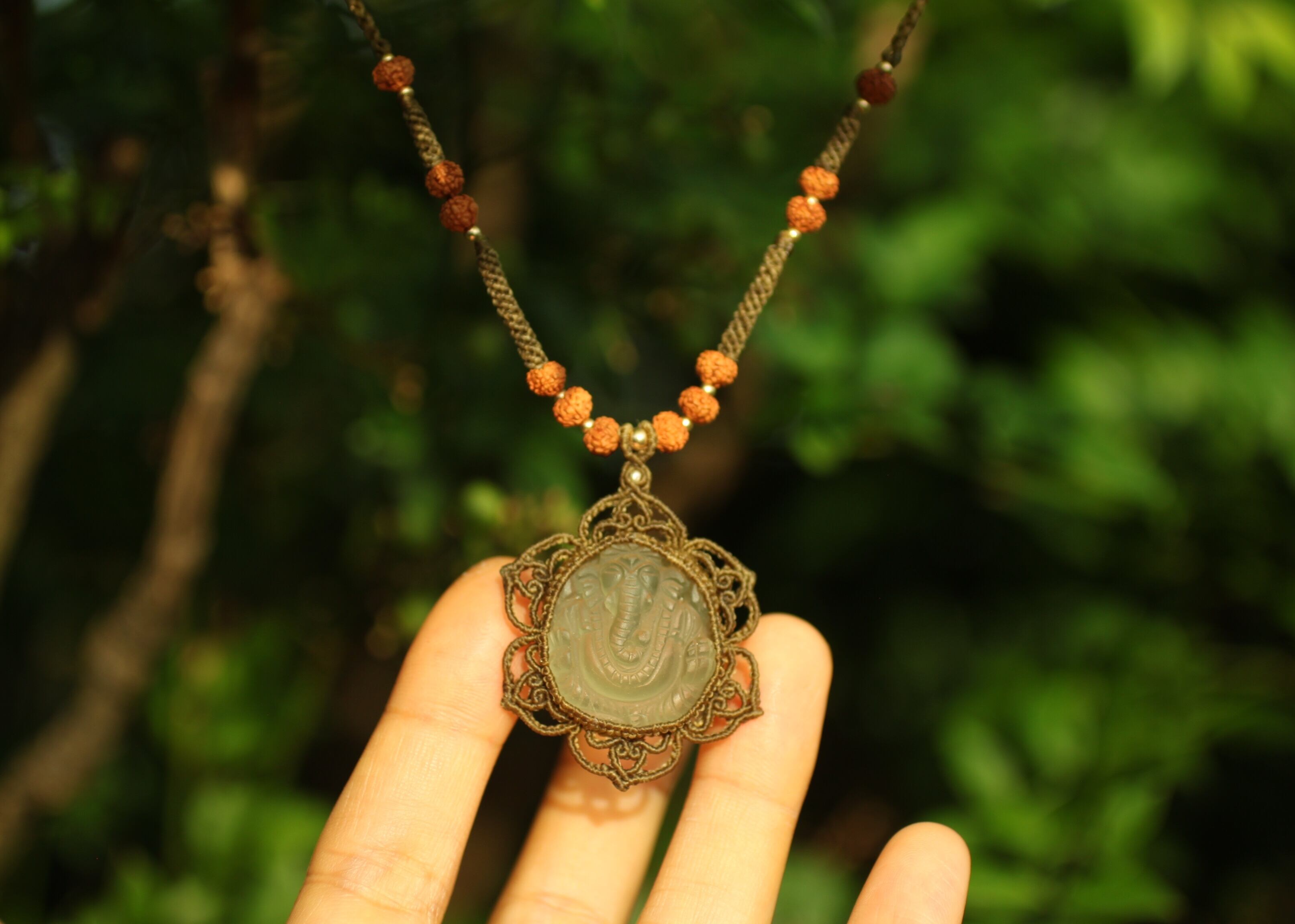 装飾として . . . . . 菩提樹、水晶、14kgf ビーズ 使用