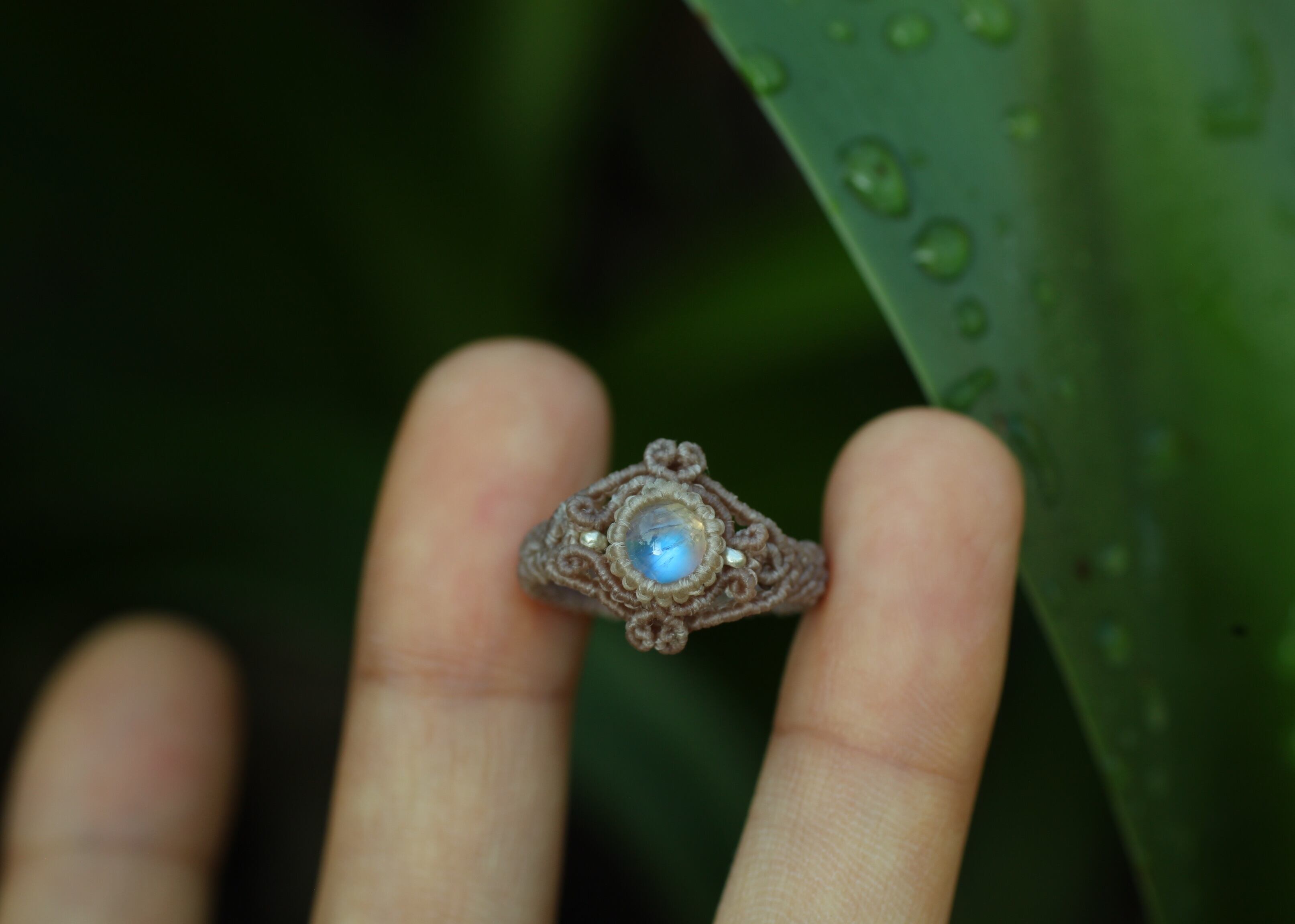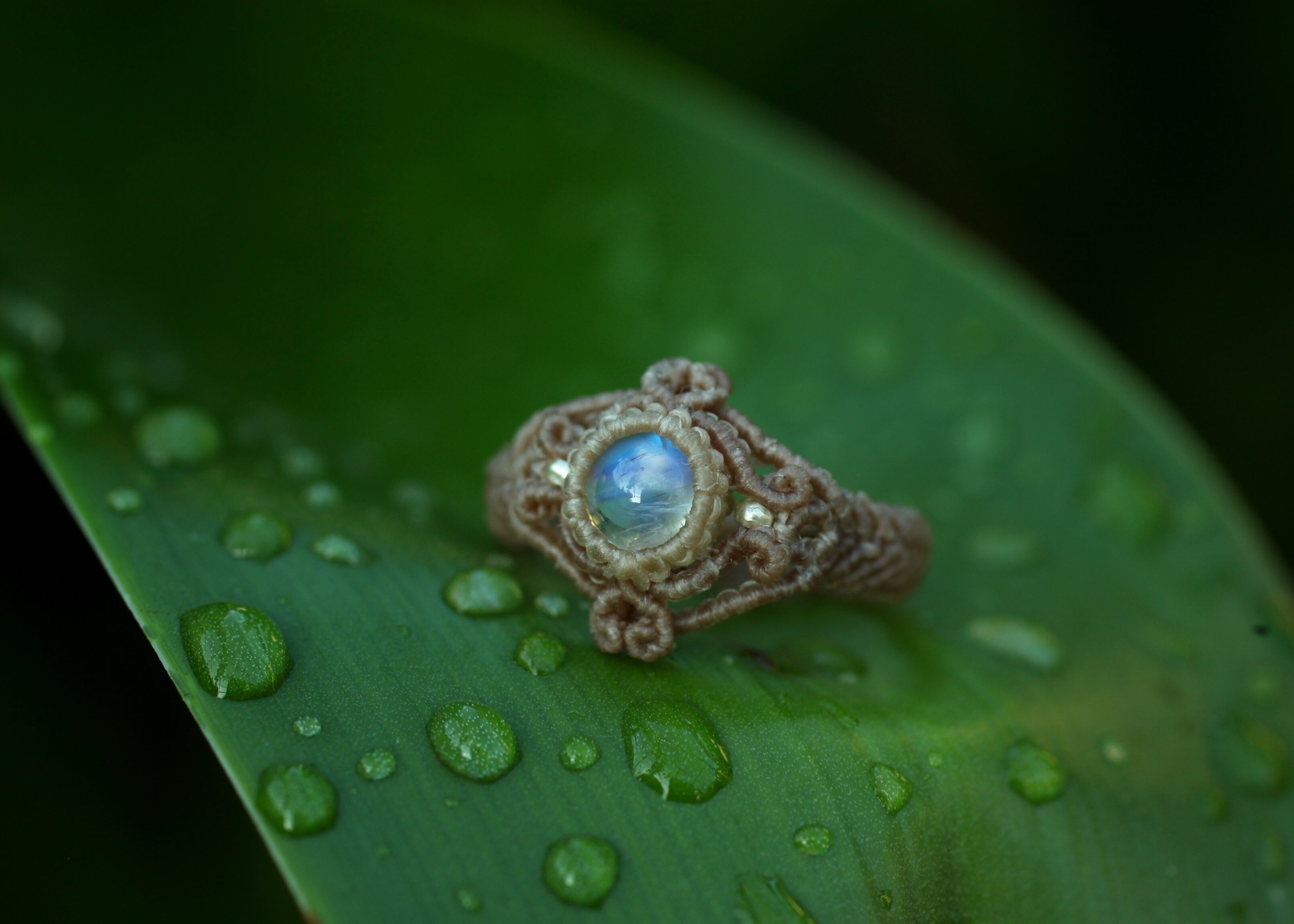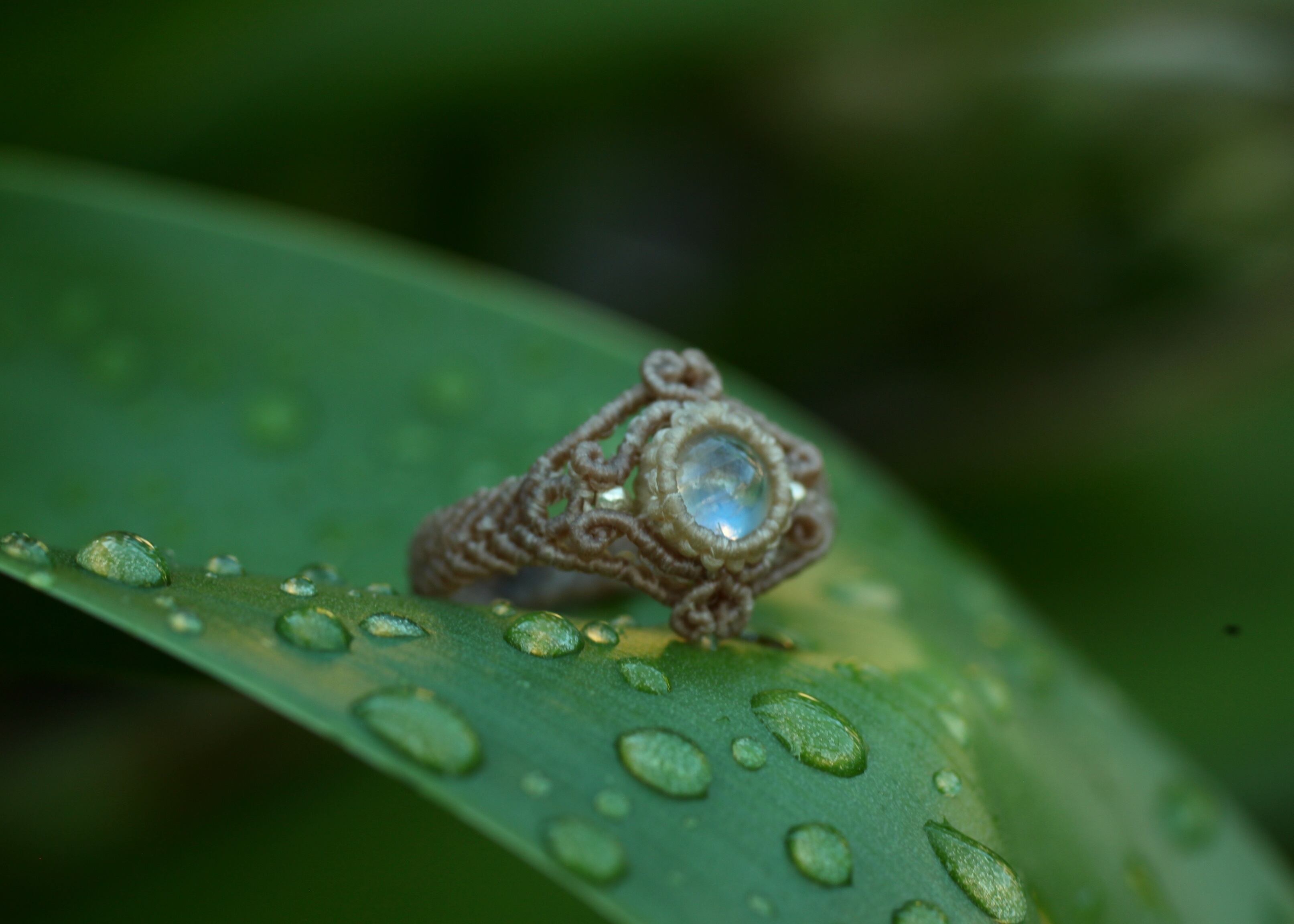 ※ 使用したマクラメ編みコードは、手縫い糸ほどの細いコードを使い出来る限り天然石の表情と繊細な仕上がりを重視し時間をかけ丁寧に編みました。