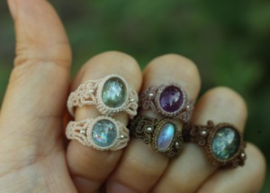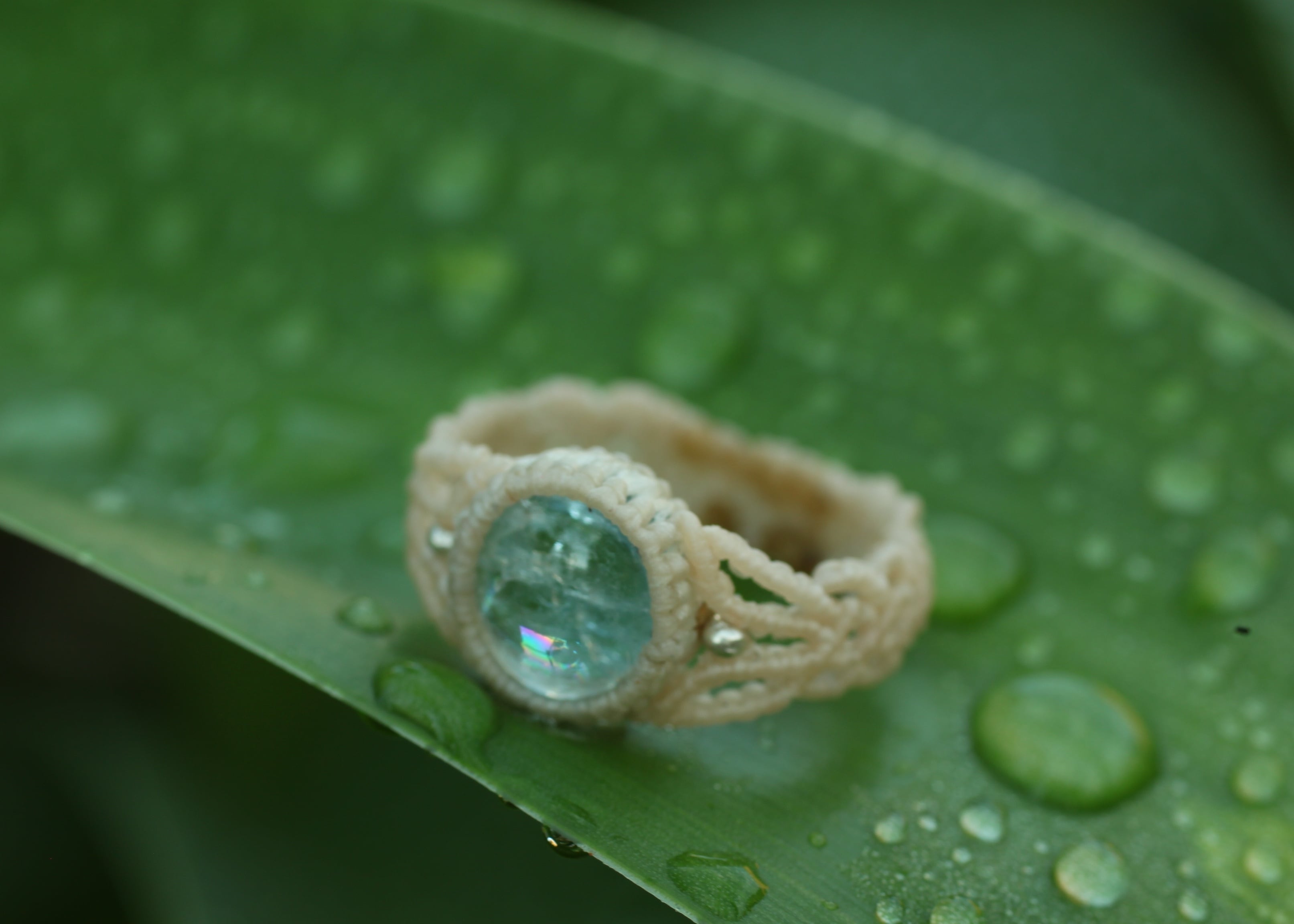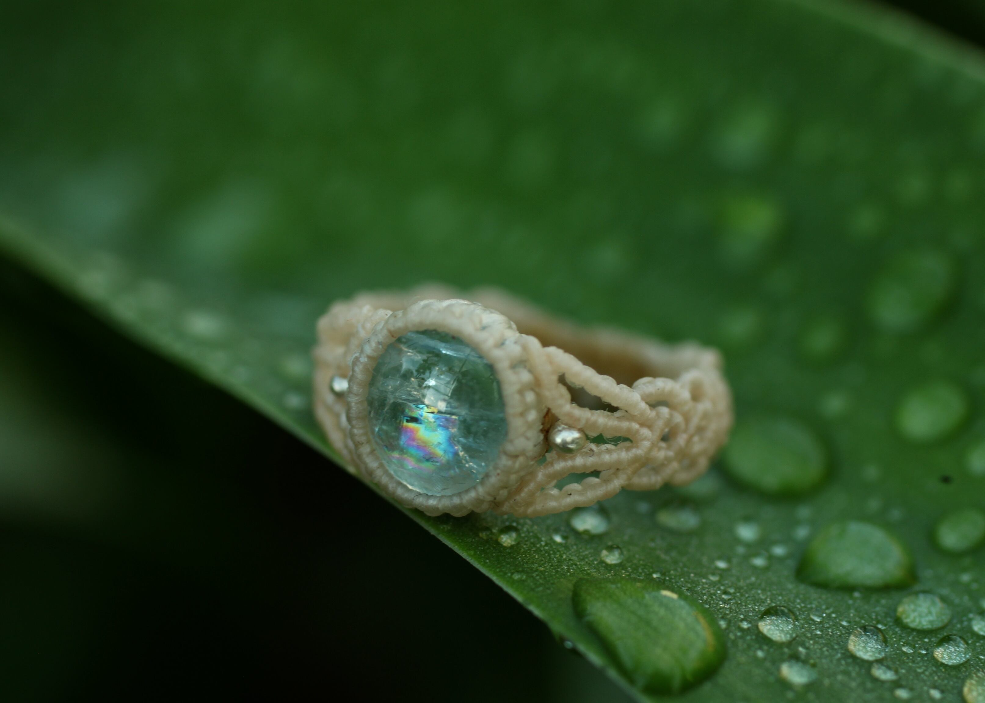 ※ 使用したマクラメ編みコードは、手縫い糸ほどの細いコードを使い出来る限り天然石の表情と繊細な仕上がりを重視し時間をかけ丁寧に編みました。