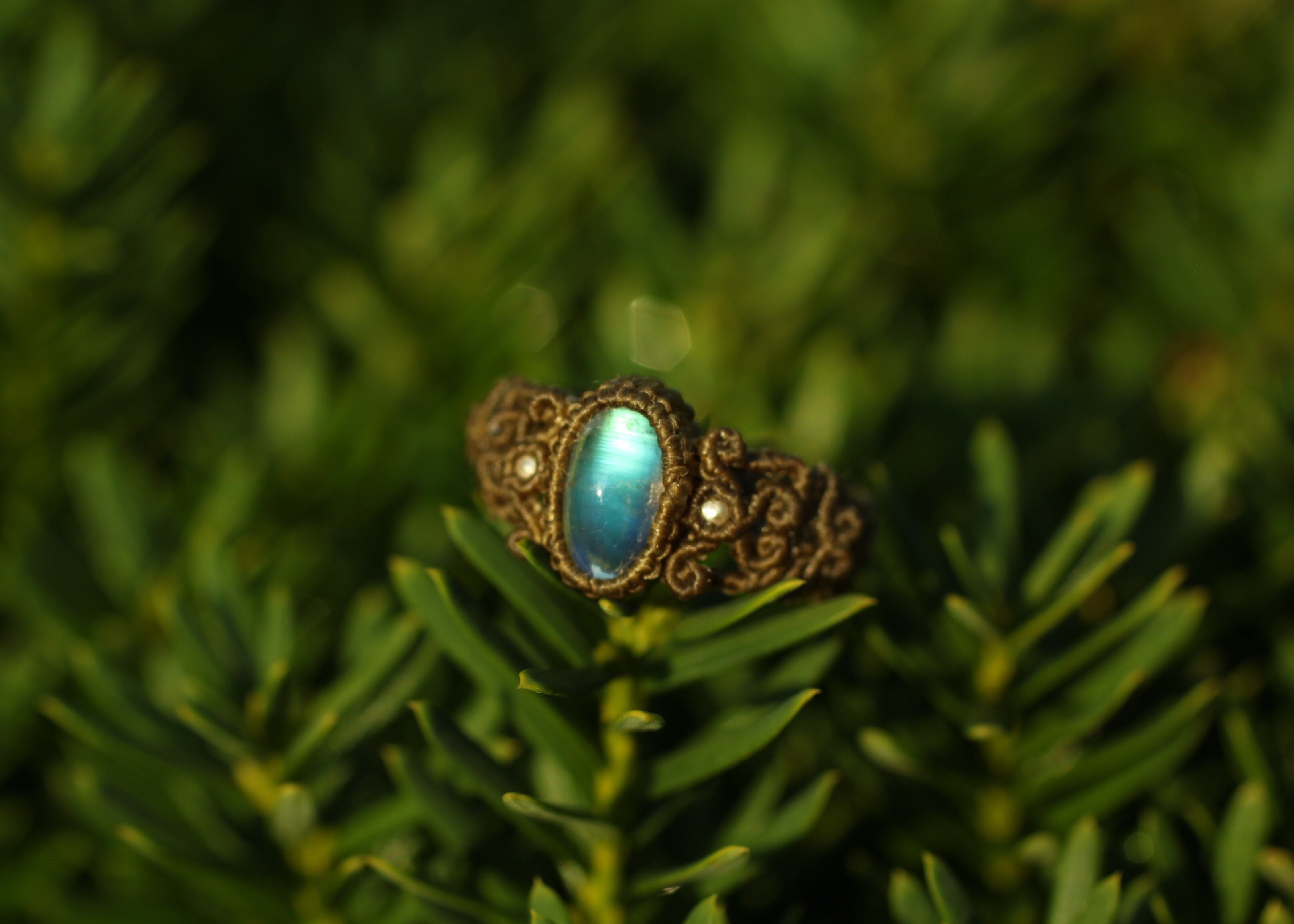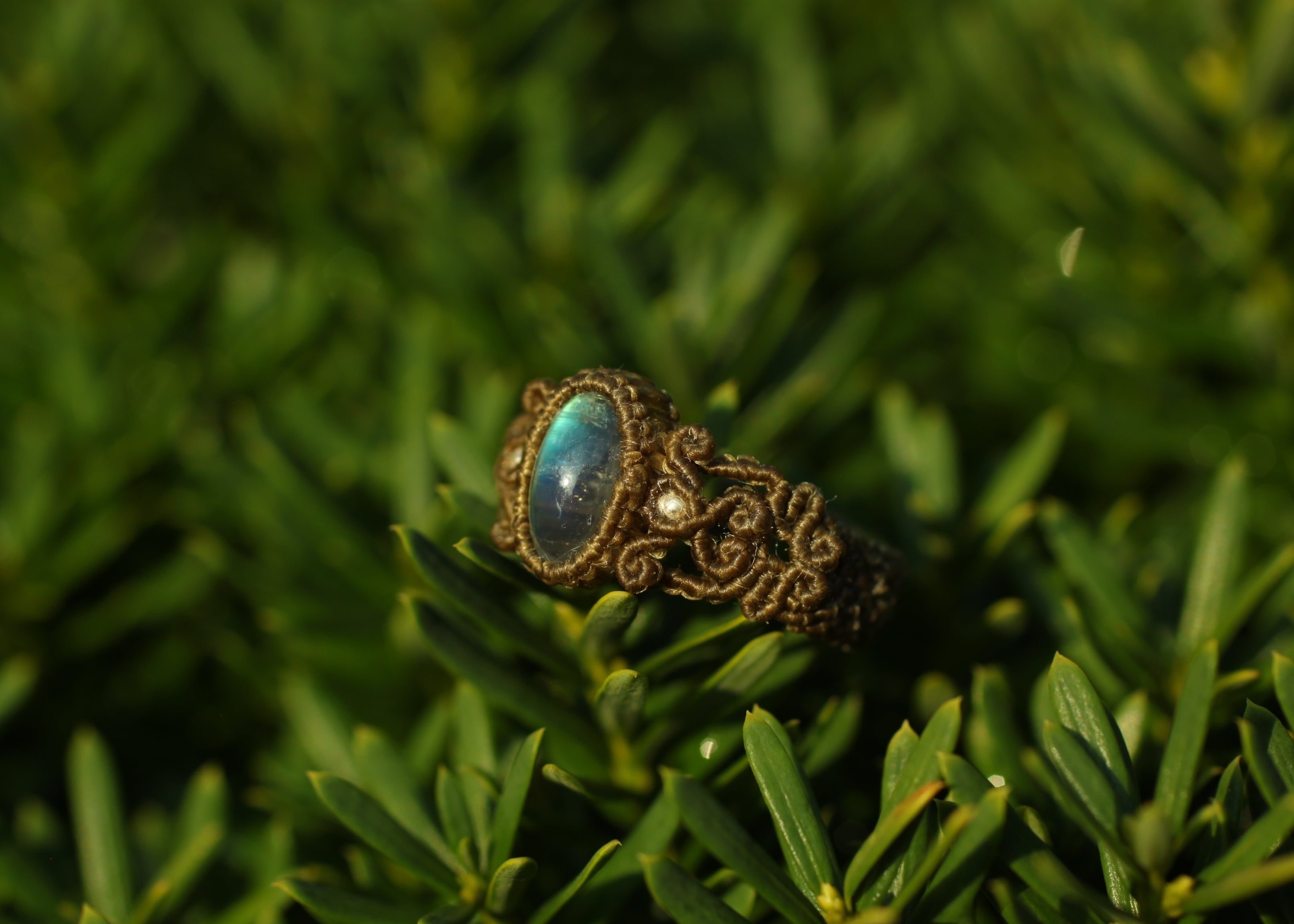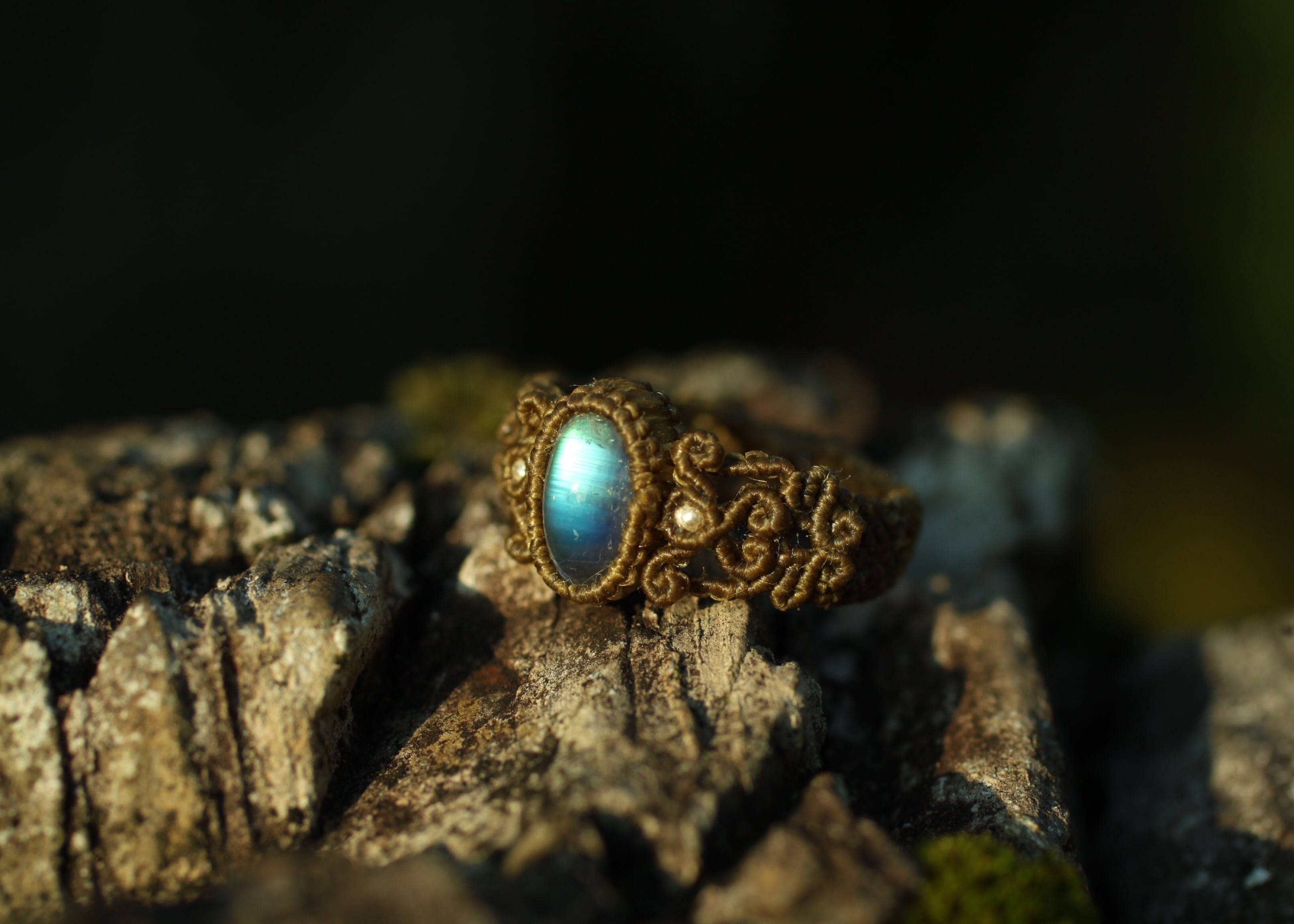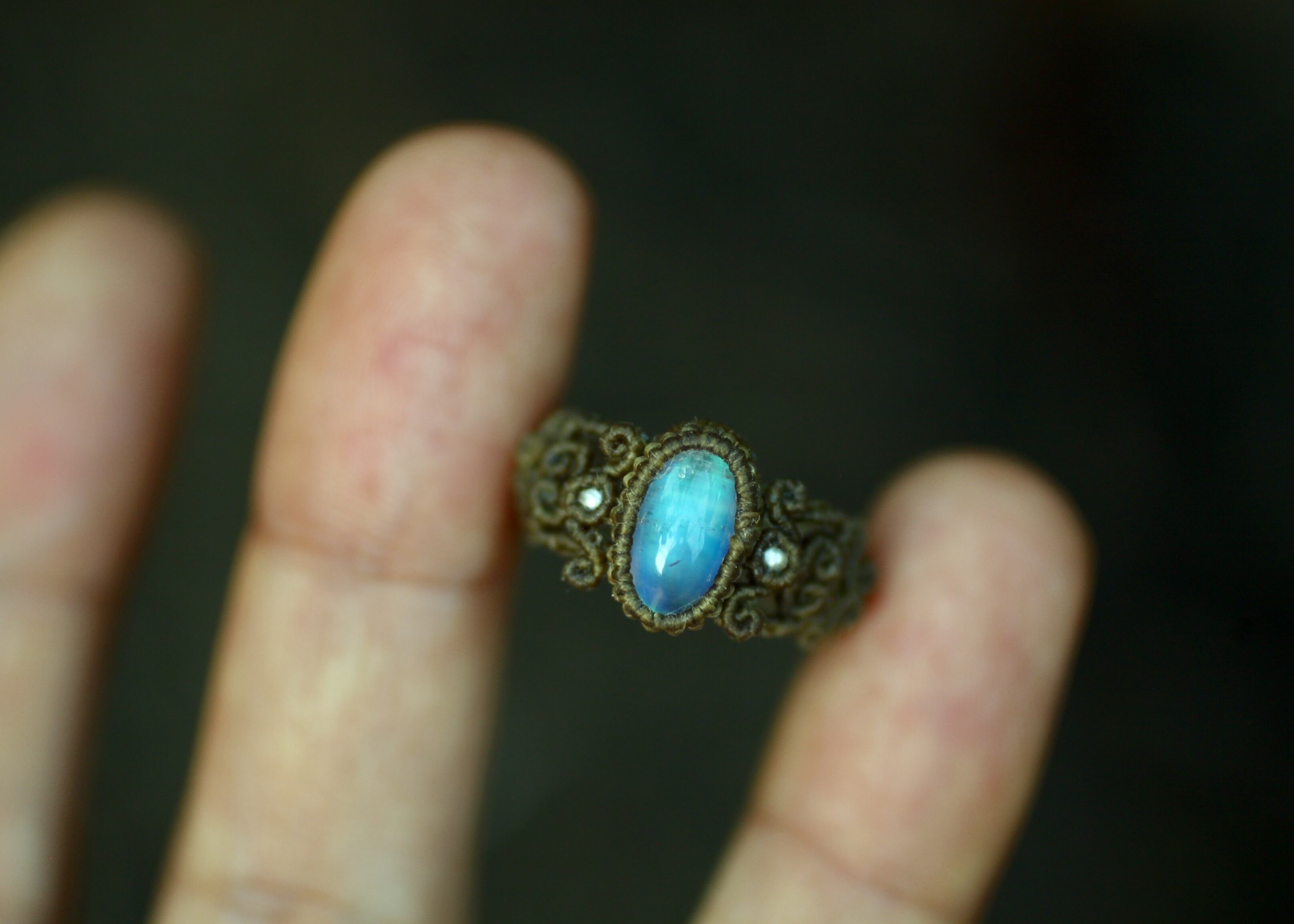 ※ 使用したマクラメ編みコードは、手縫い糸ほどの細いコードを使い出来る限り天然石の表情と繊細な仕上がりを重視し時間をかけ丁寧に編みました。