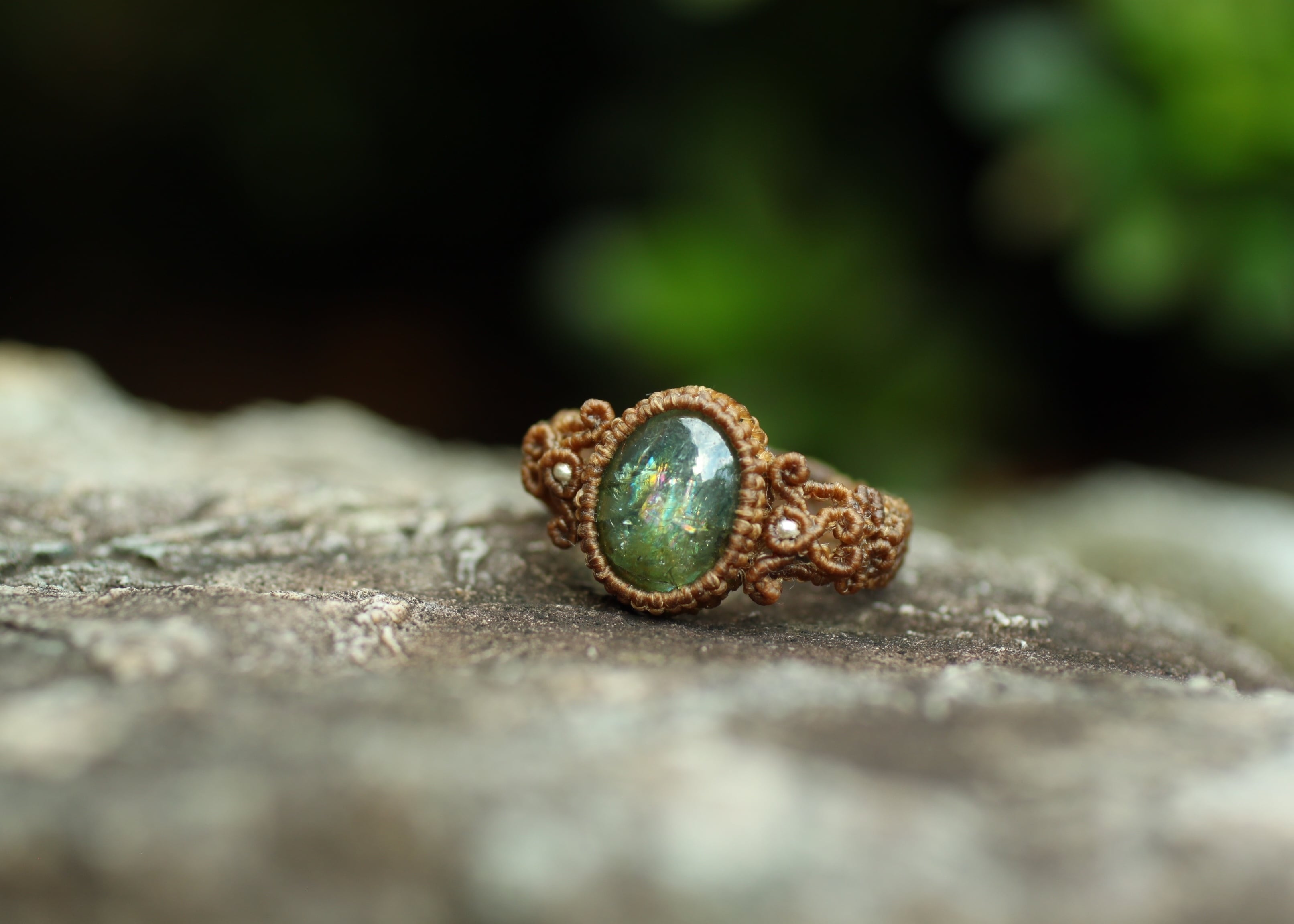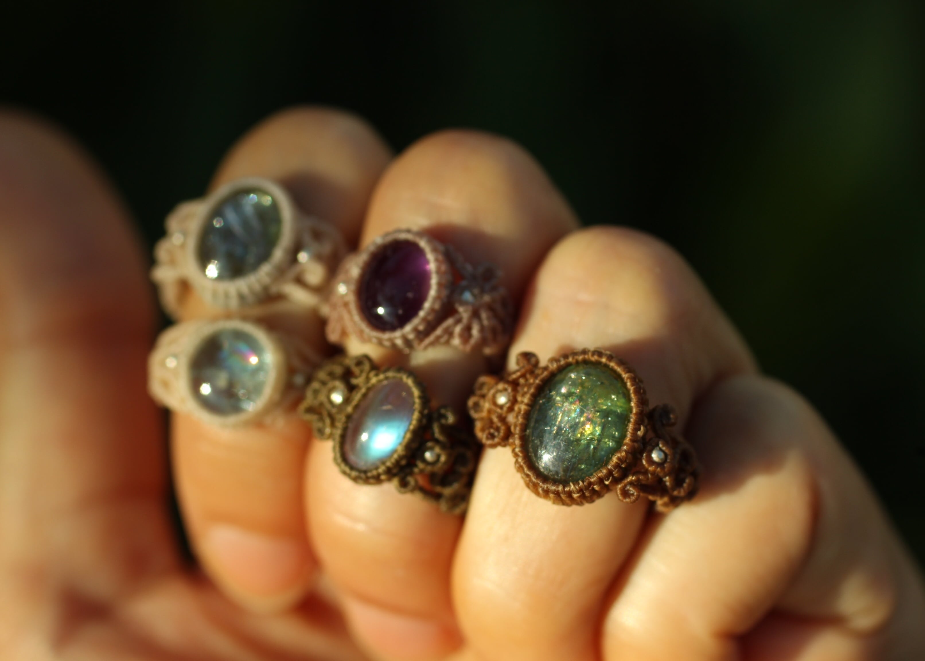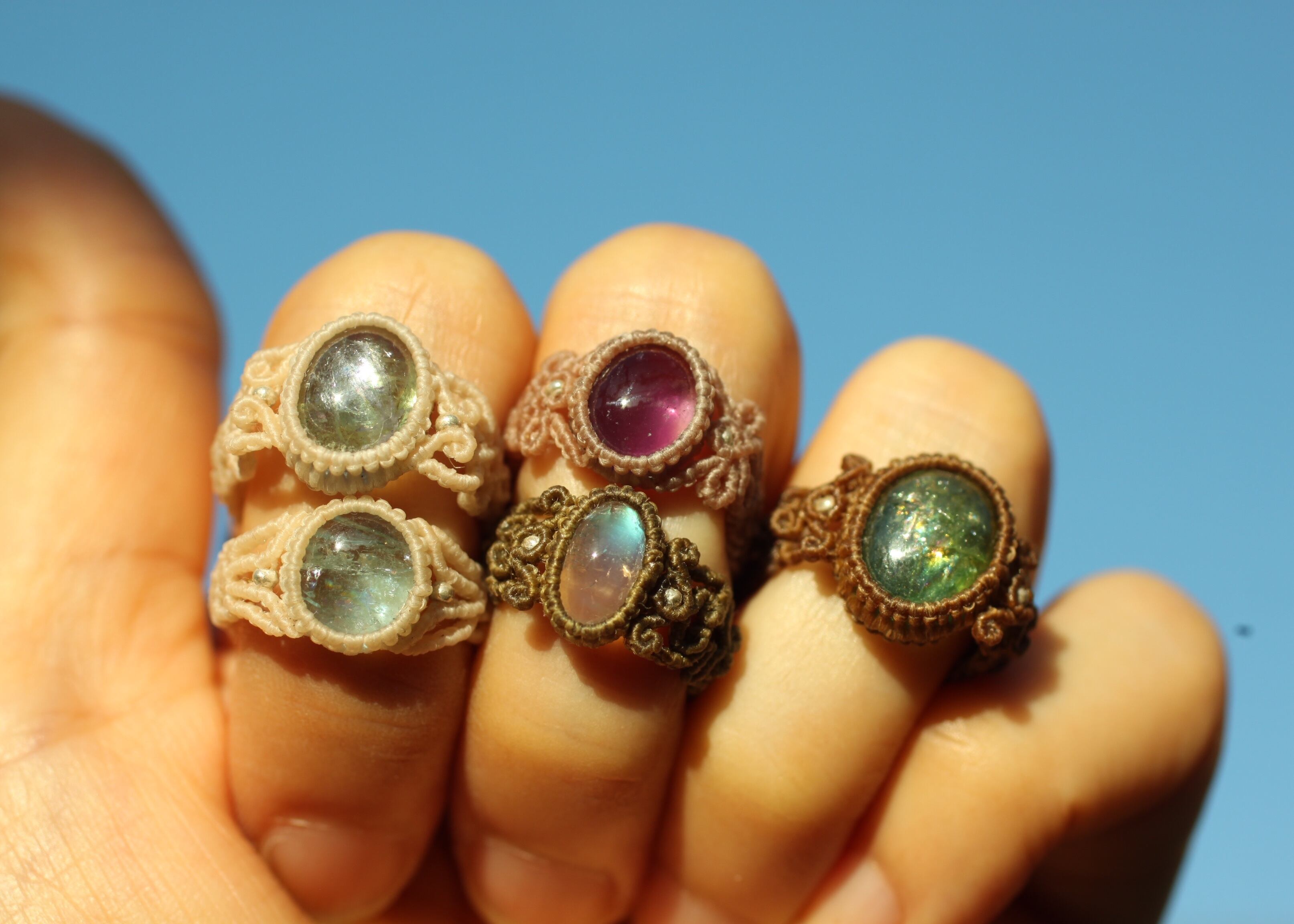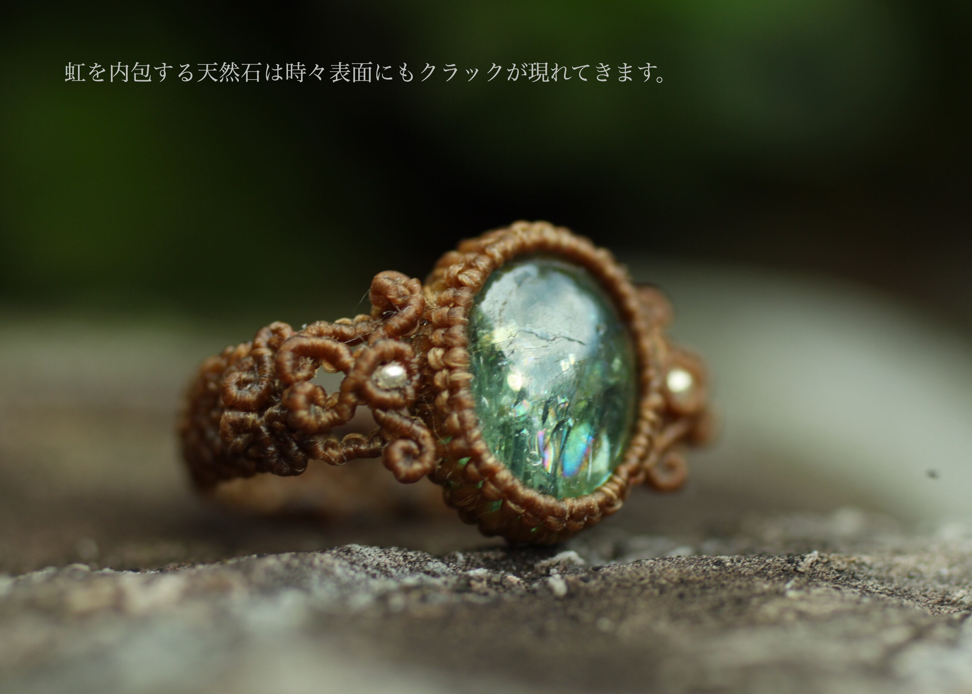 ※ 使用したマクラメ編みコードは、手縫い糸ほどの細いコードを使い出来る限り天然石の表情と繊細な仕上がりを重視し時間をかけ丁寧に編みました。