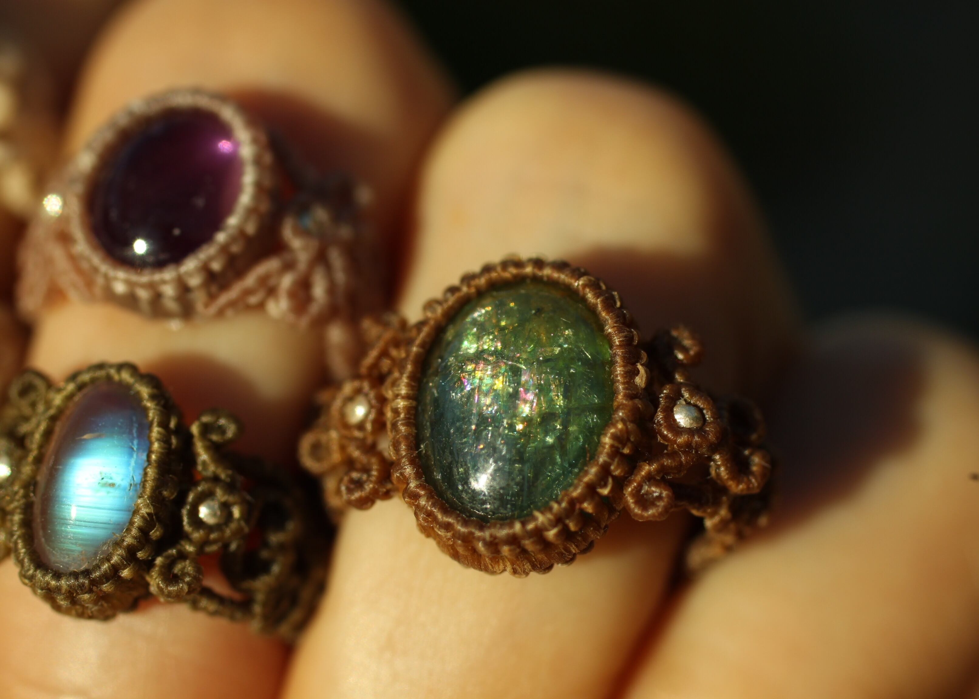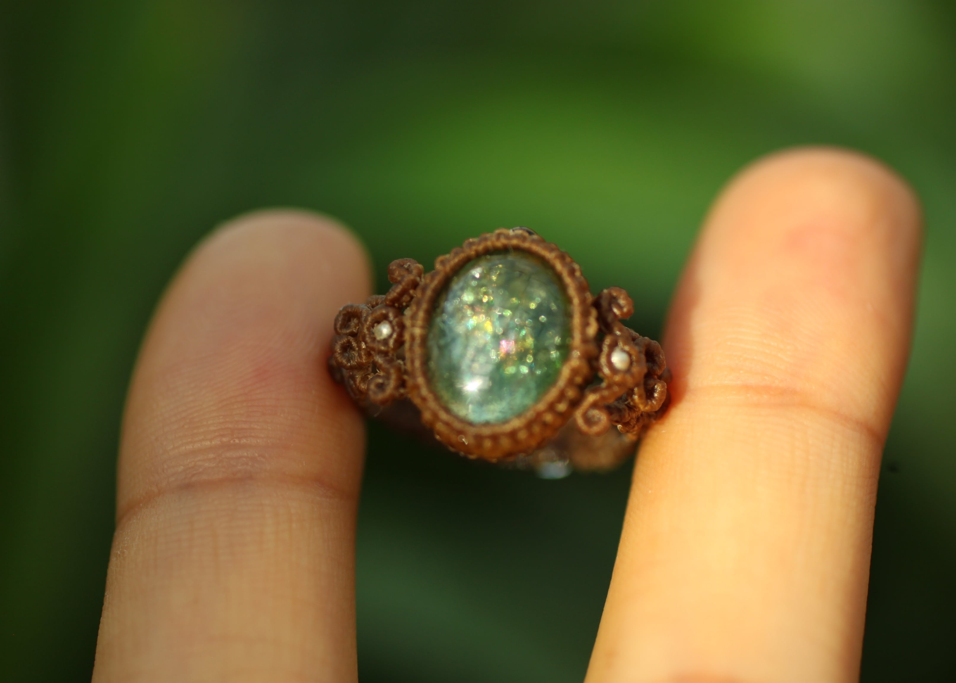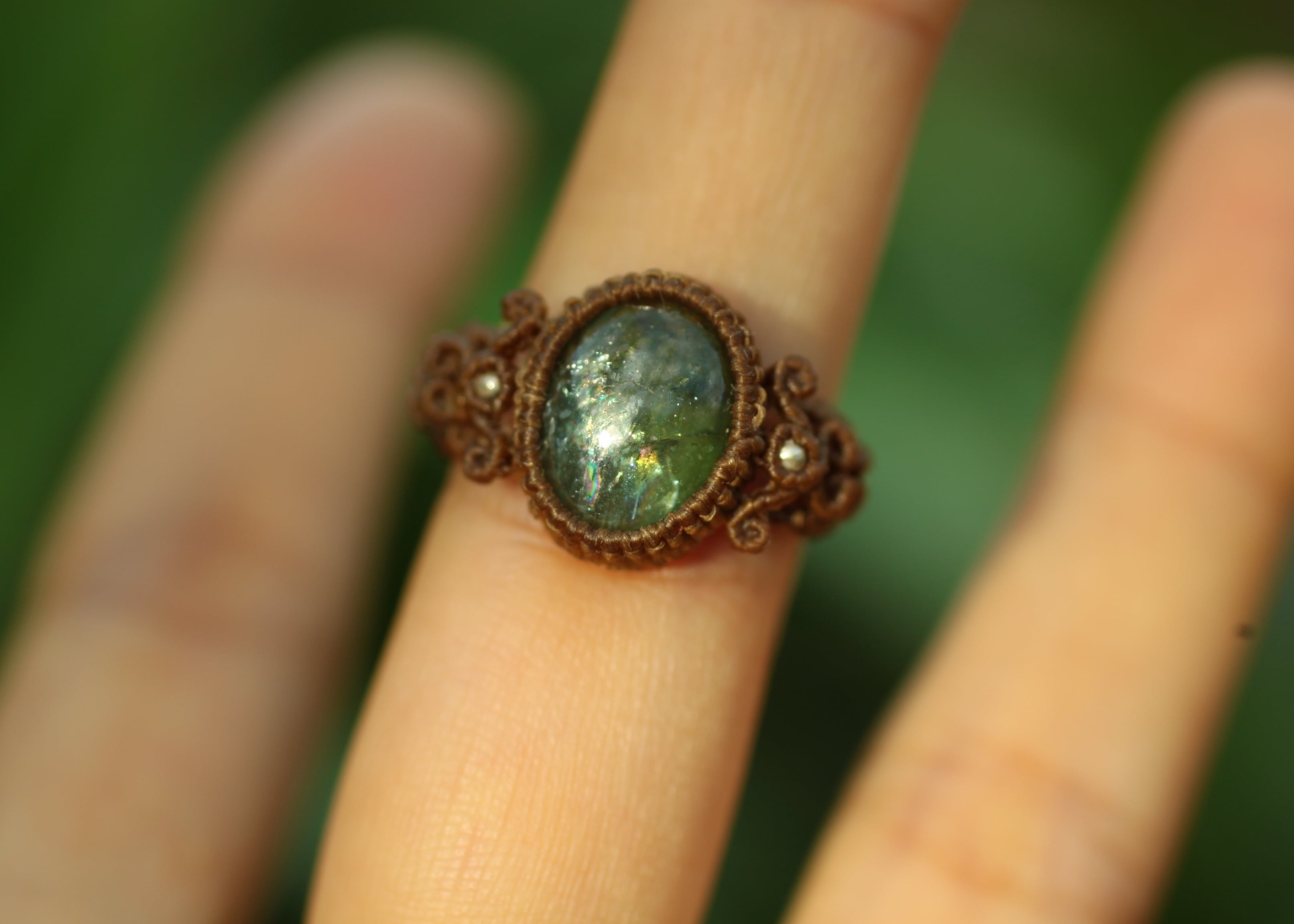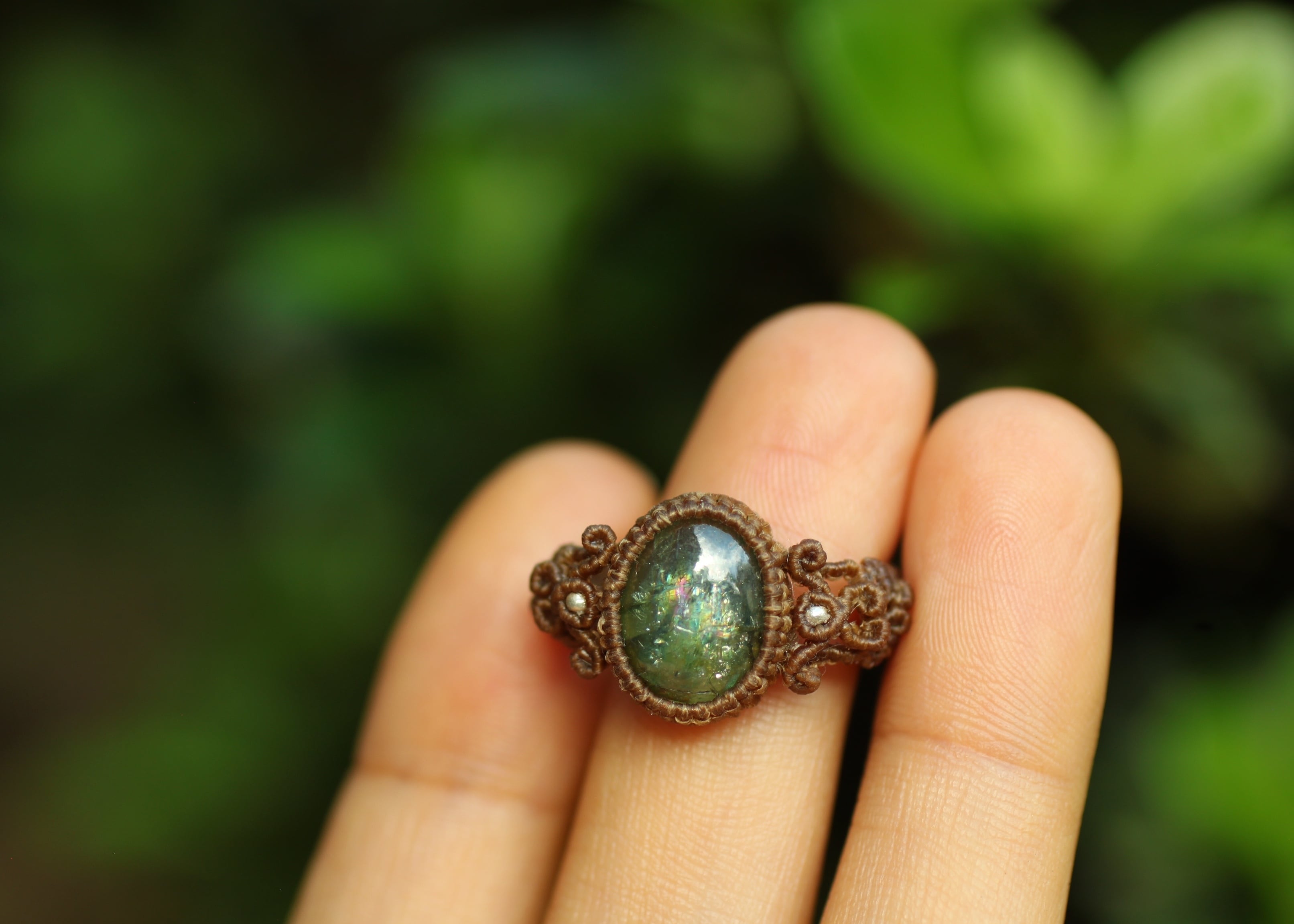 ※ 使用したマクラメ編みコードは、手縫い糸ほどの細いコードを使い出来る限り天然石の表情と繊細な仕上がりを重視し時間をかけ丁寧に編みました。