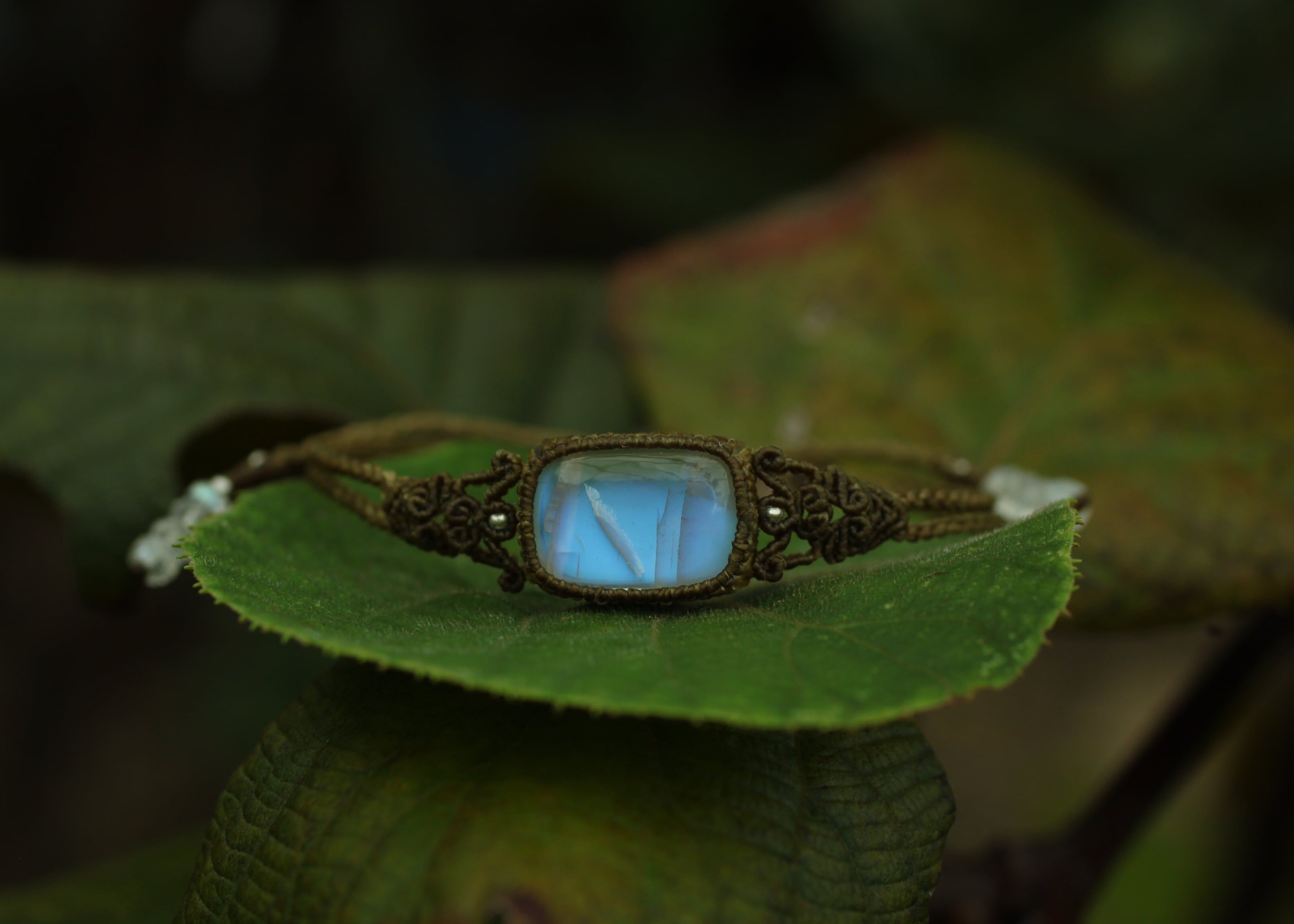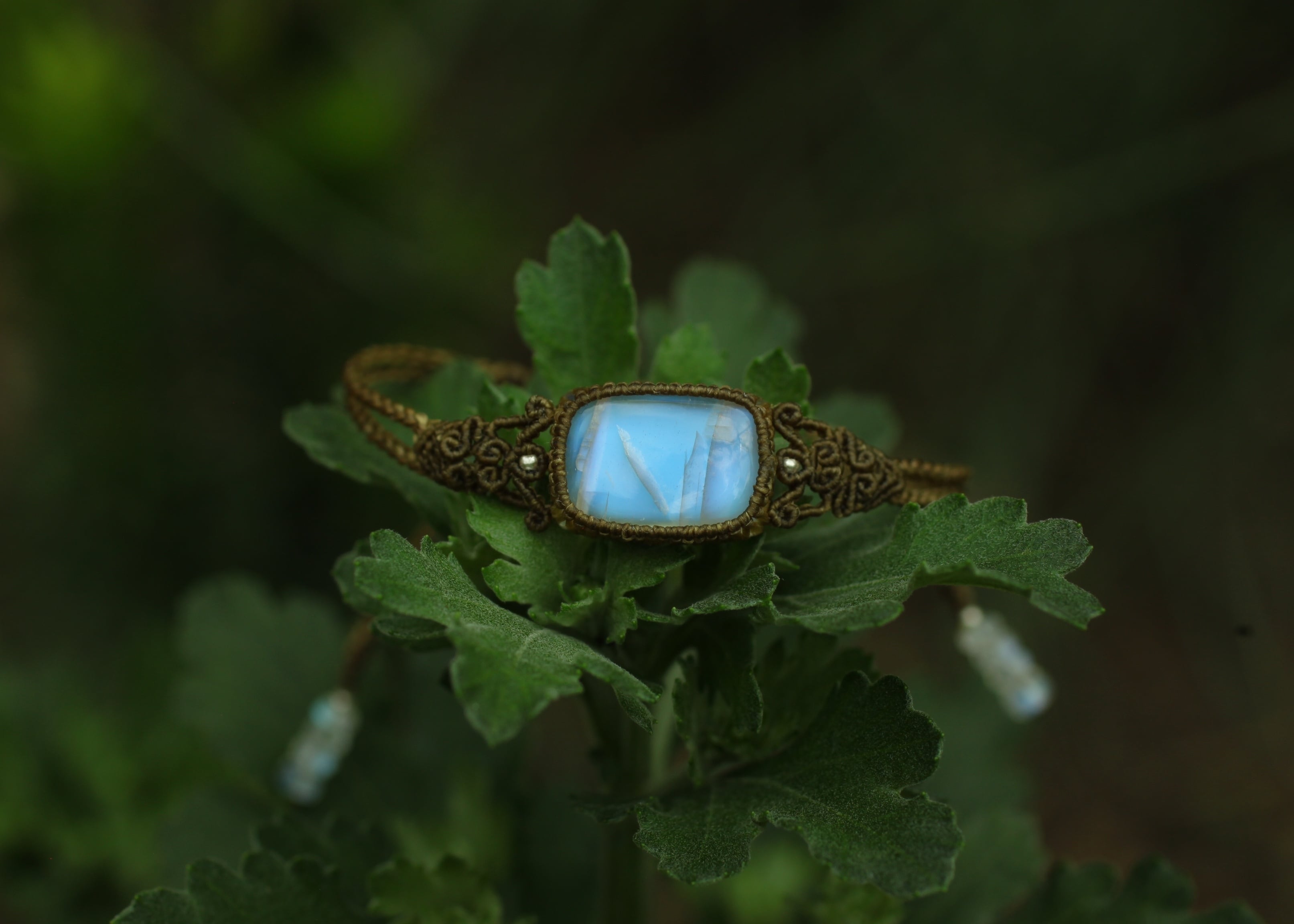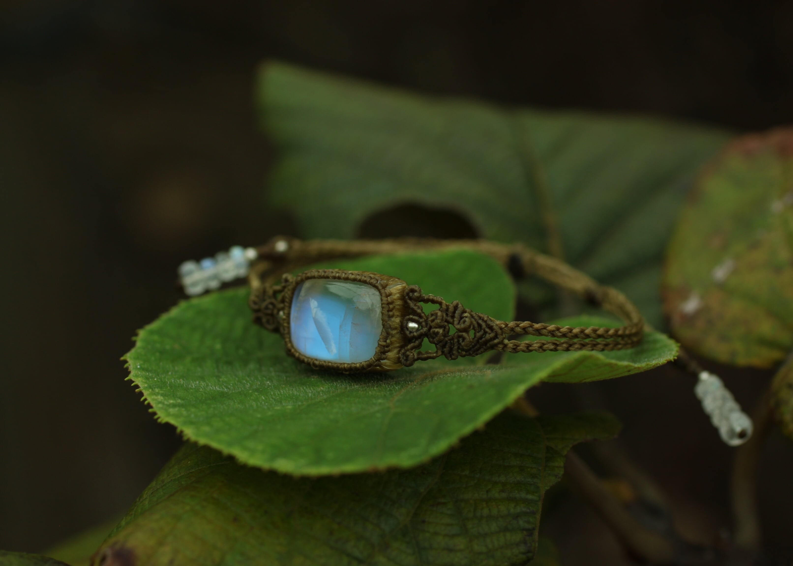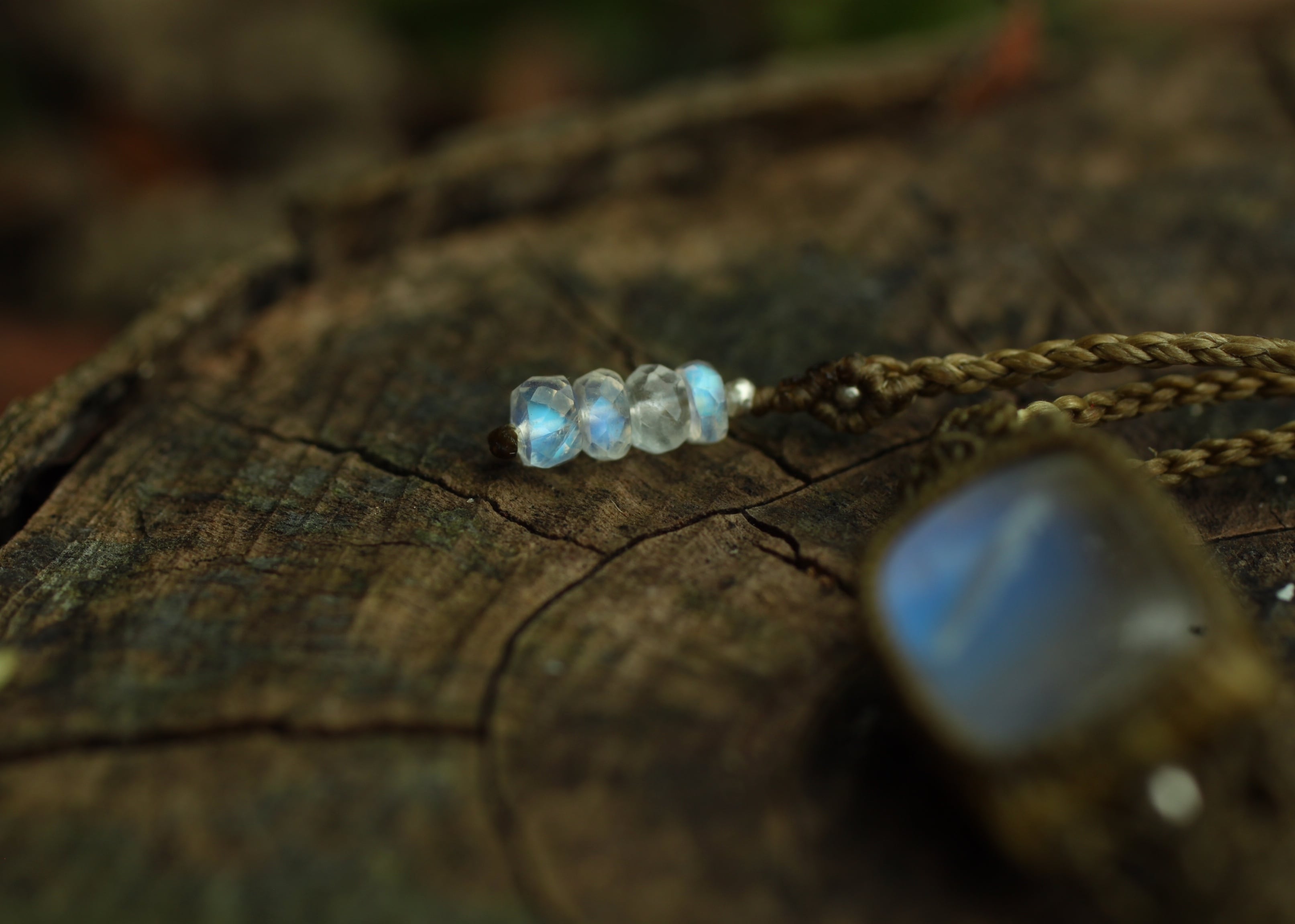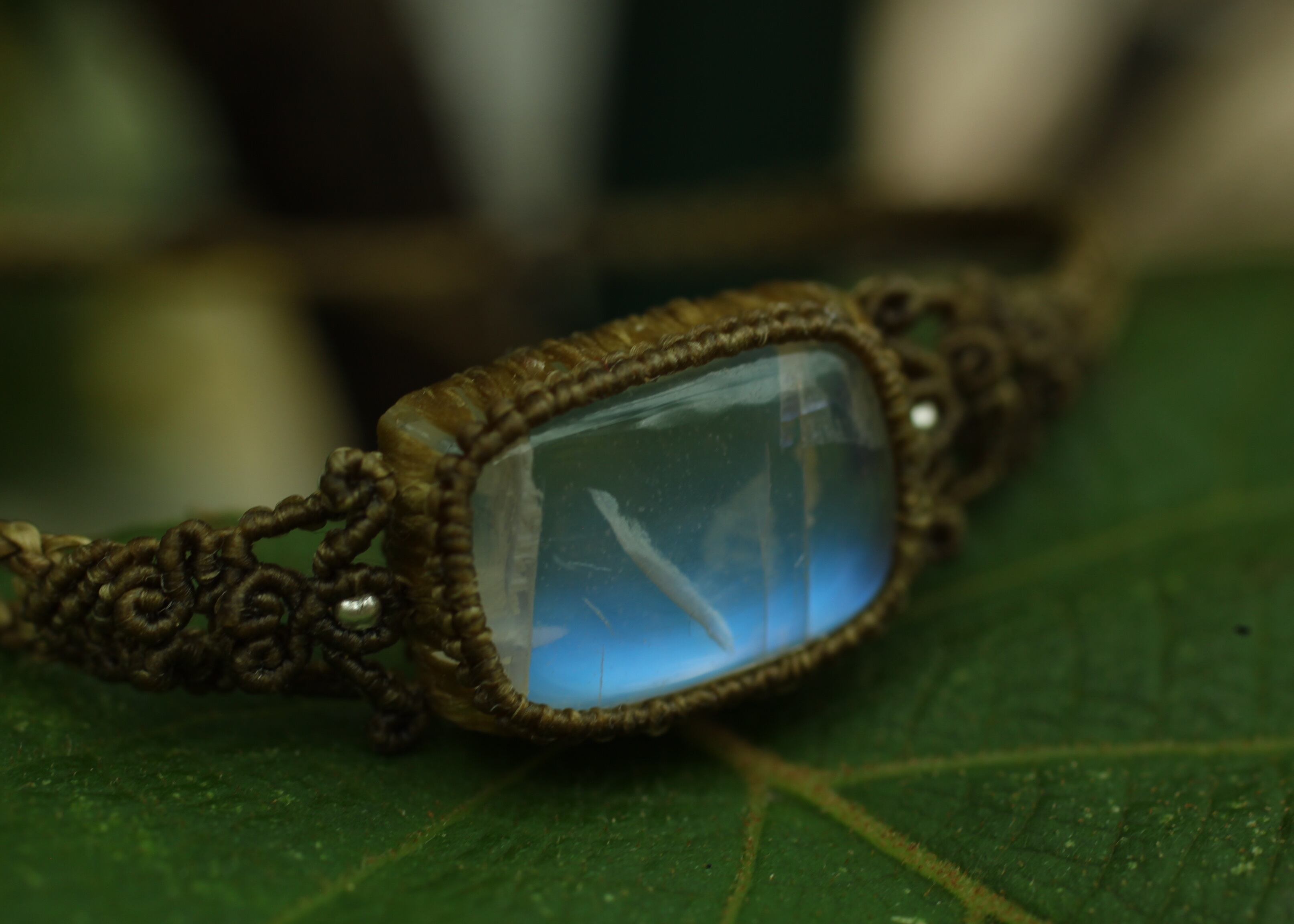 ※ 使用したマクラメ編みコードは、手縫い糸ほどの細いコードを使い出来る限り天然石の表情と繊細な仕上がり、着け心地の良さを重視し時間をかけ丁寧に編みました。
