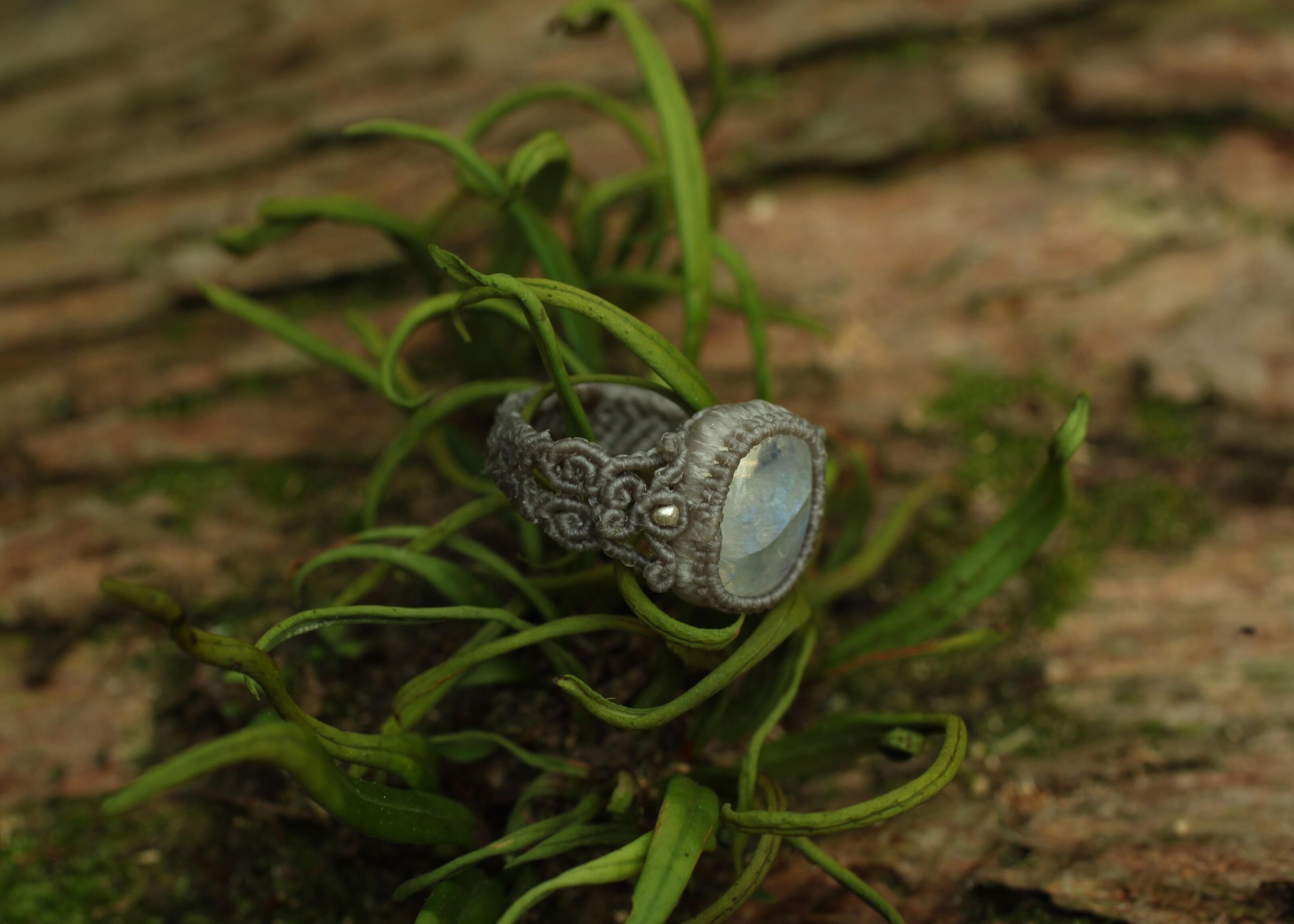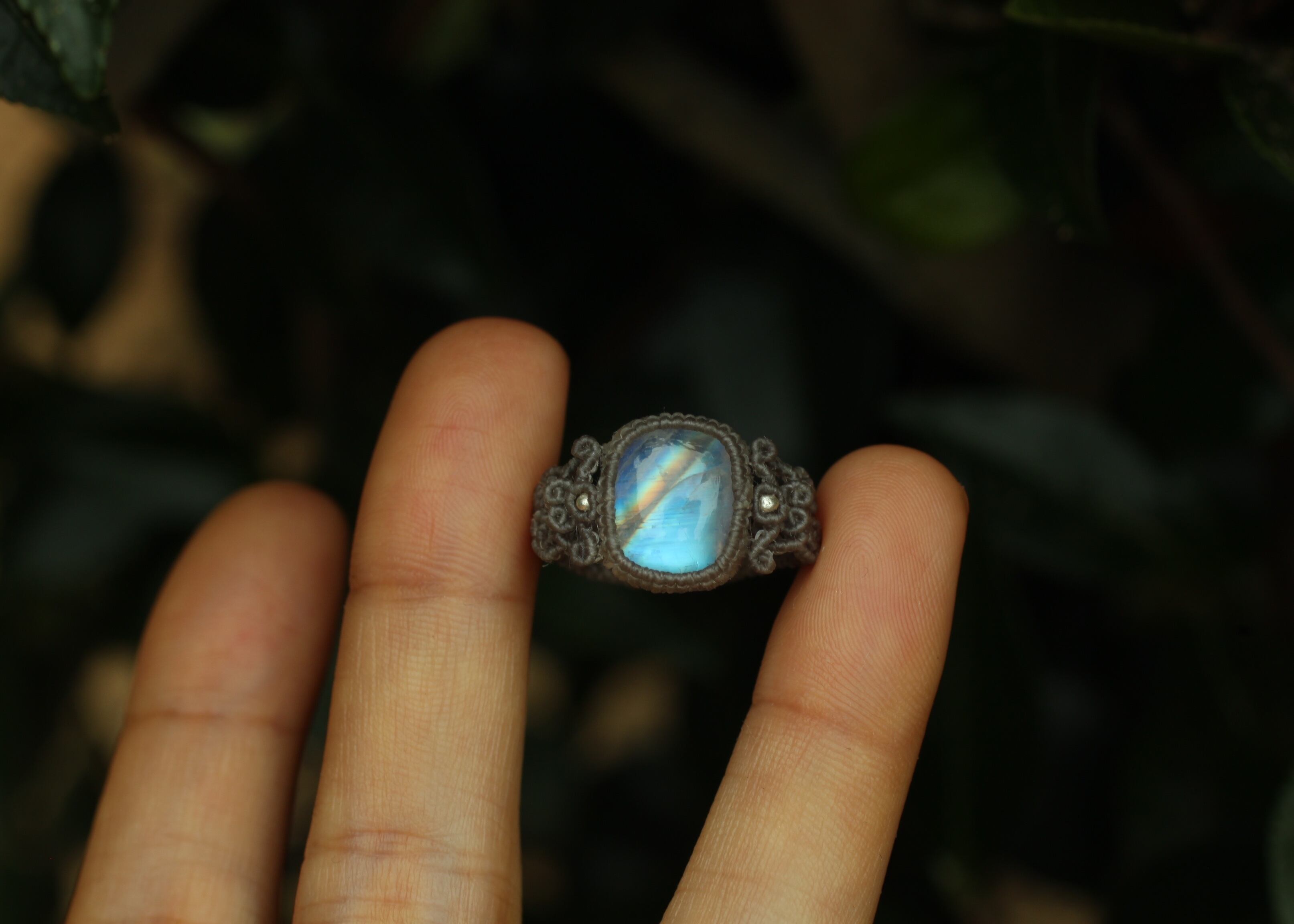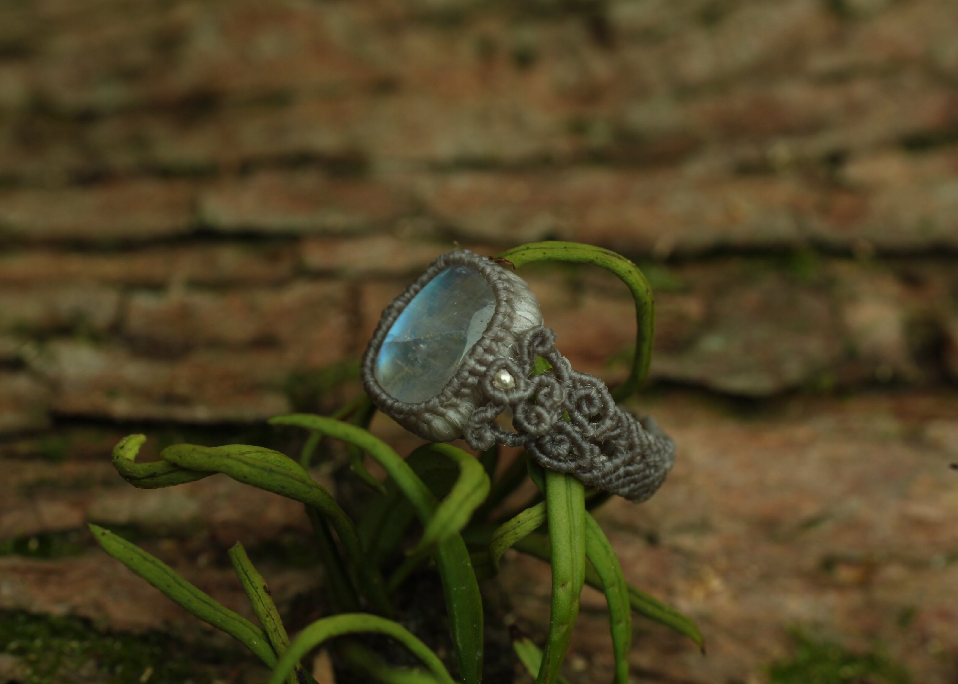 ※ 使用したマクラメ編みコードは、手縫い糸ほどの細いコードを使い出来る限り天然石の表情と繊細な仕上がり、着け心地の良さを重視し時間をかけ丁寧に編みました。