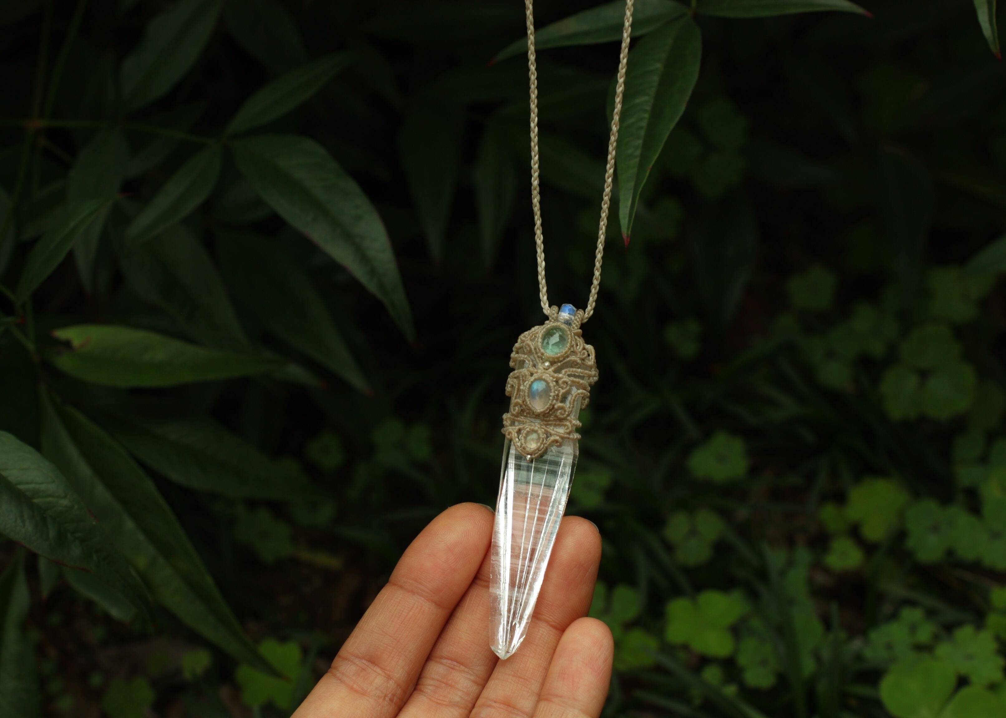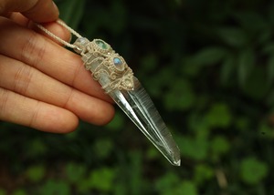 装飾、ひもの最後に . . . ムーンストーン、水晶、シルバー925ビーズ使用