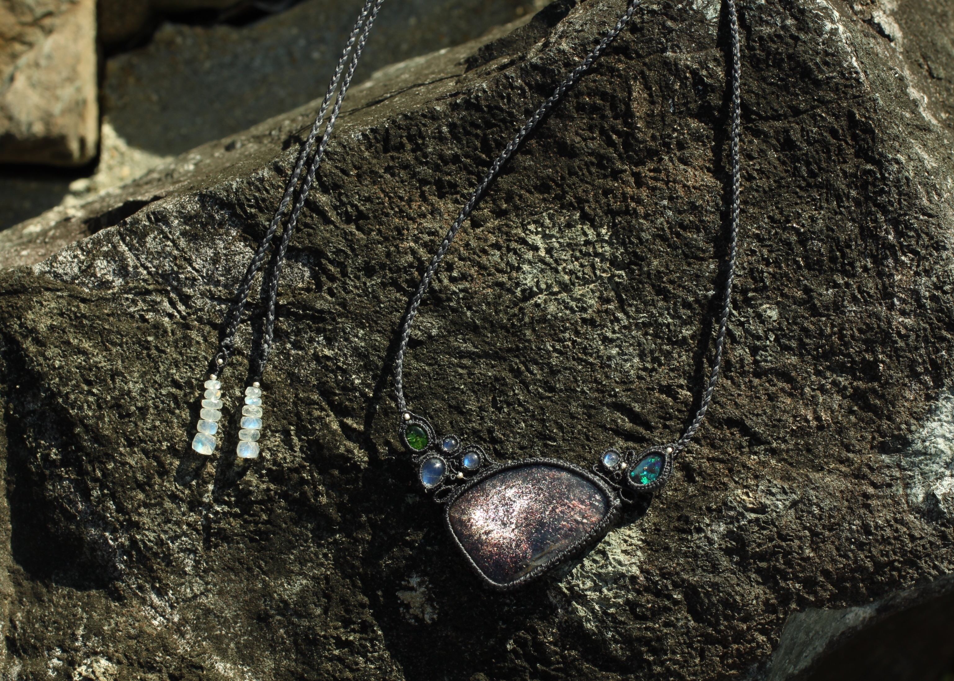銀河のようなアイオライトサンストーンに合わすよう