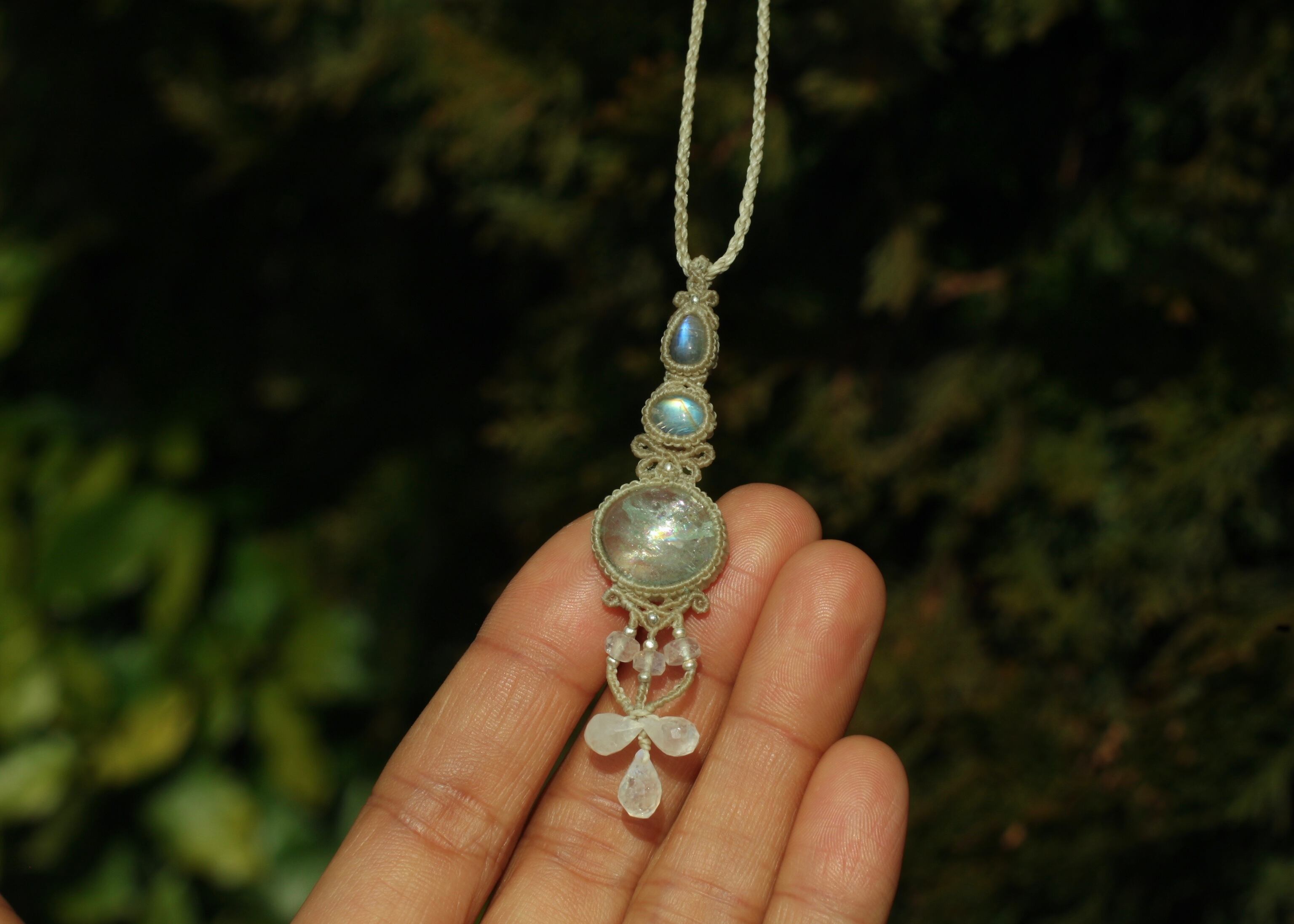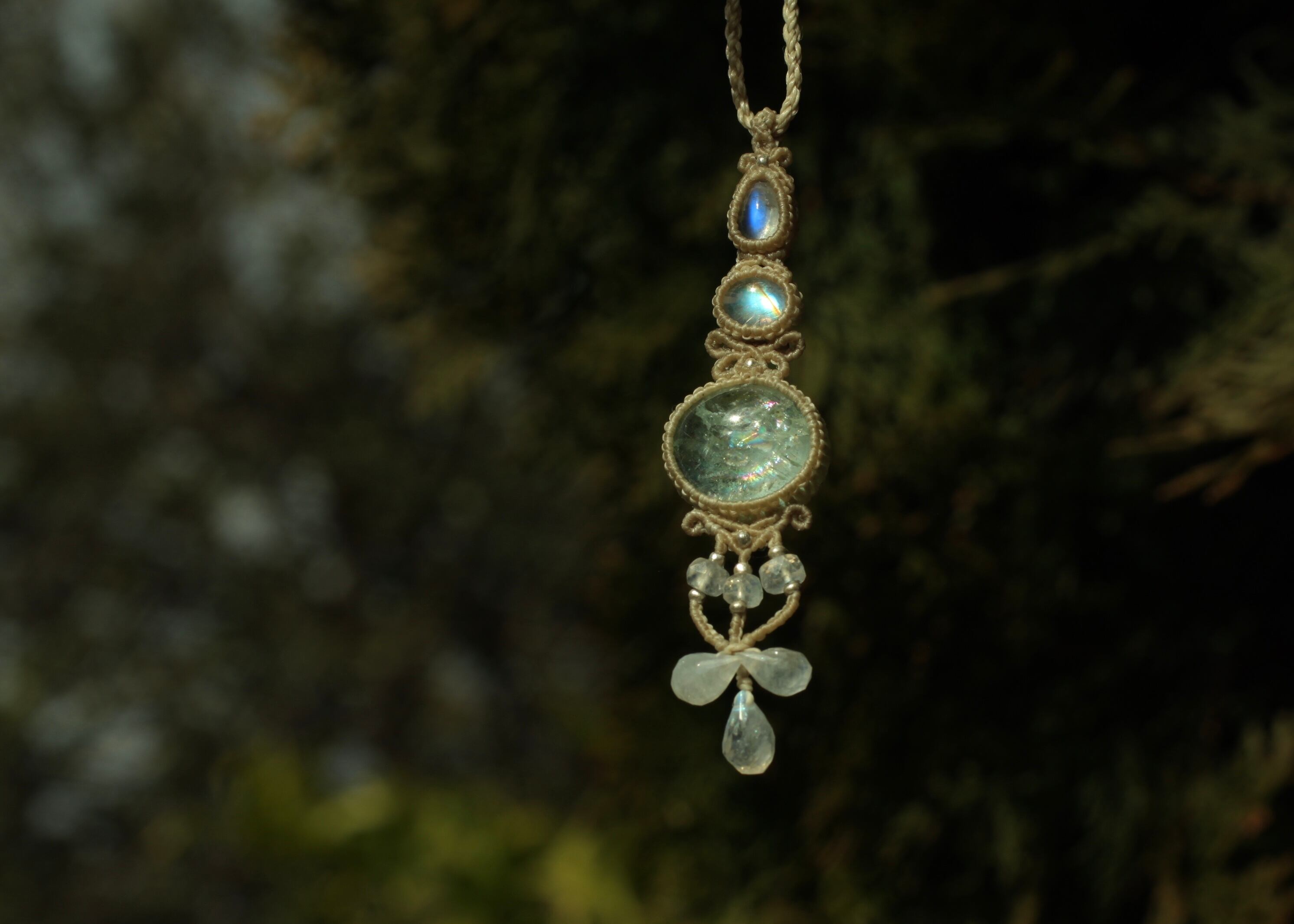 濃いブルーのシラーを放つムーンストーンをあしらいました。