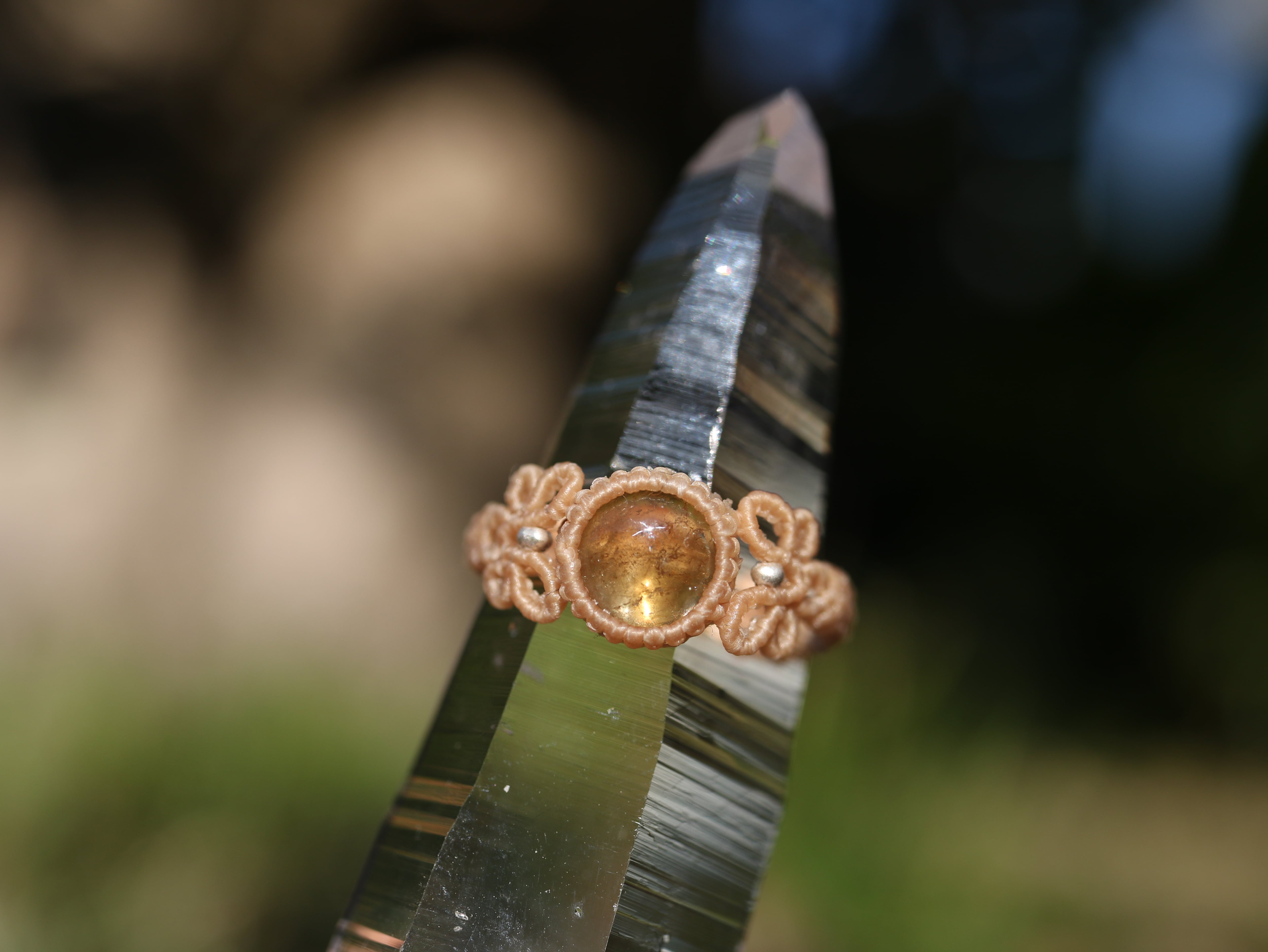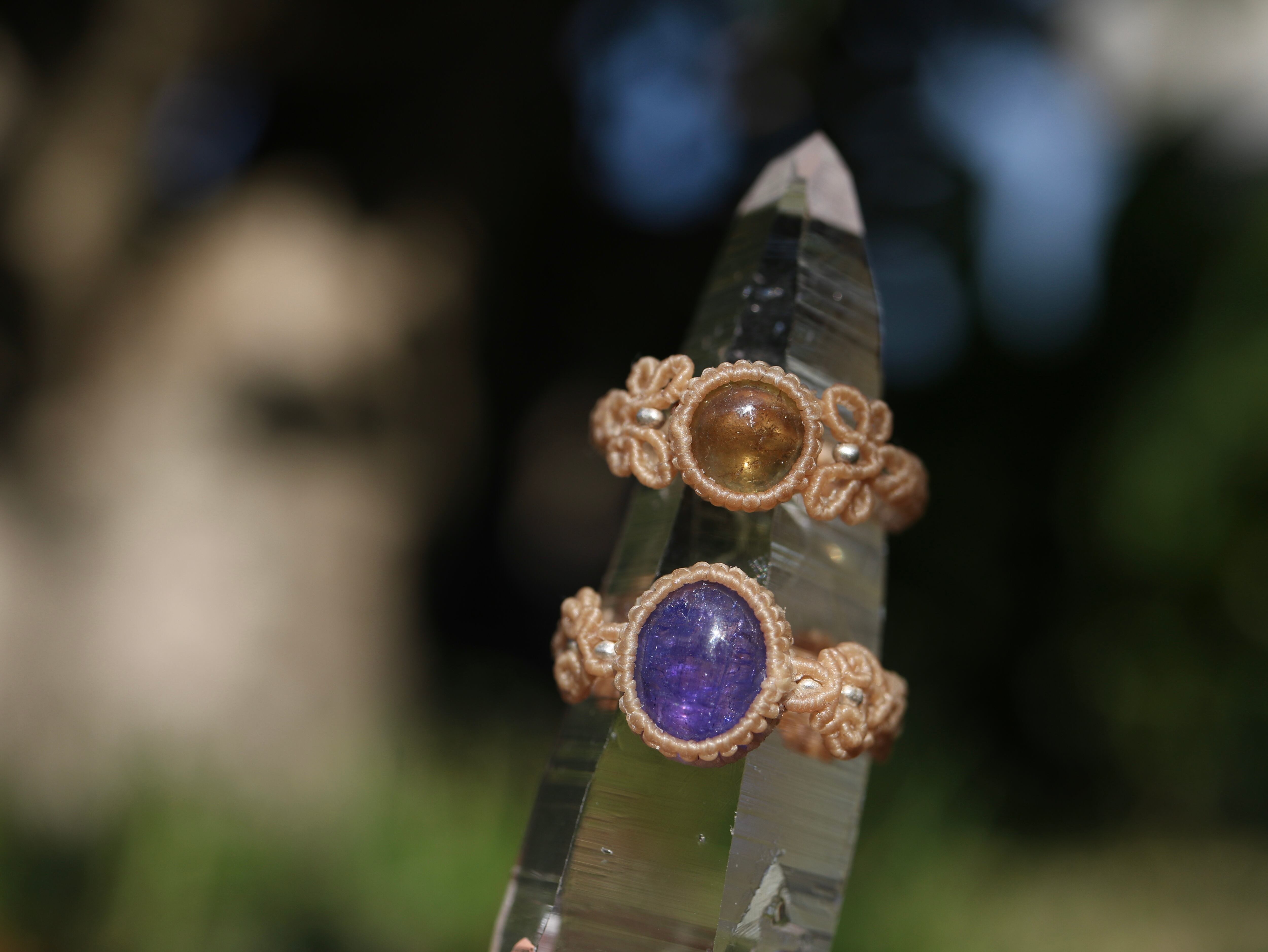 ※ 使用したマクラメ編みコードは、手縫い糸ほどの細いコードを使い出来る限り天然石の表情と繊細な仕上がり、着け心地の良さ、耐久性を重視し時間をかけ丁寧に編みました。