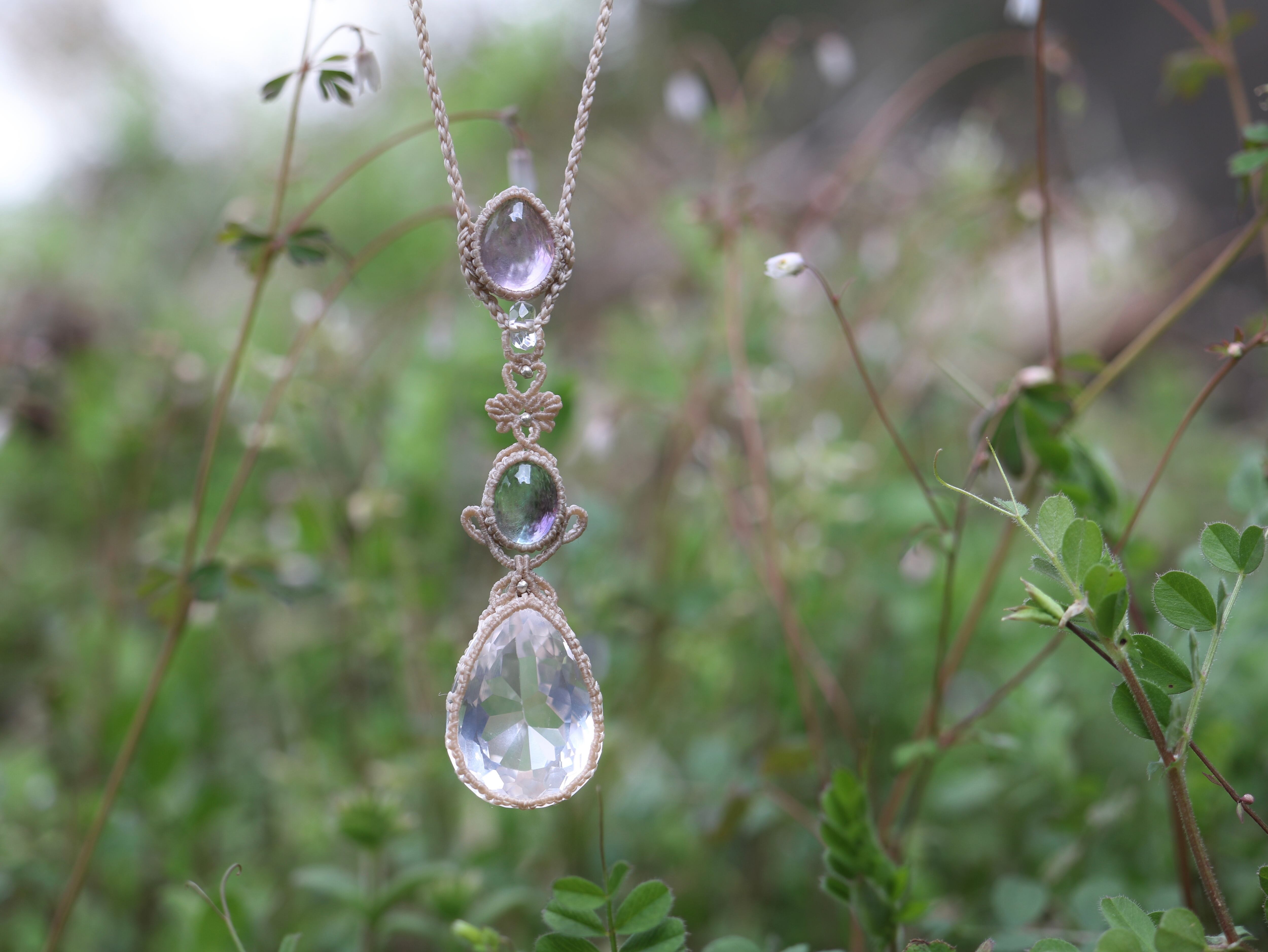 カットローズクオーツ × フローライト ペンダント