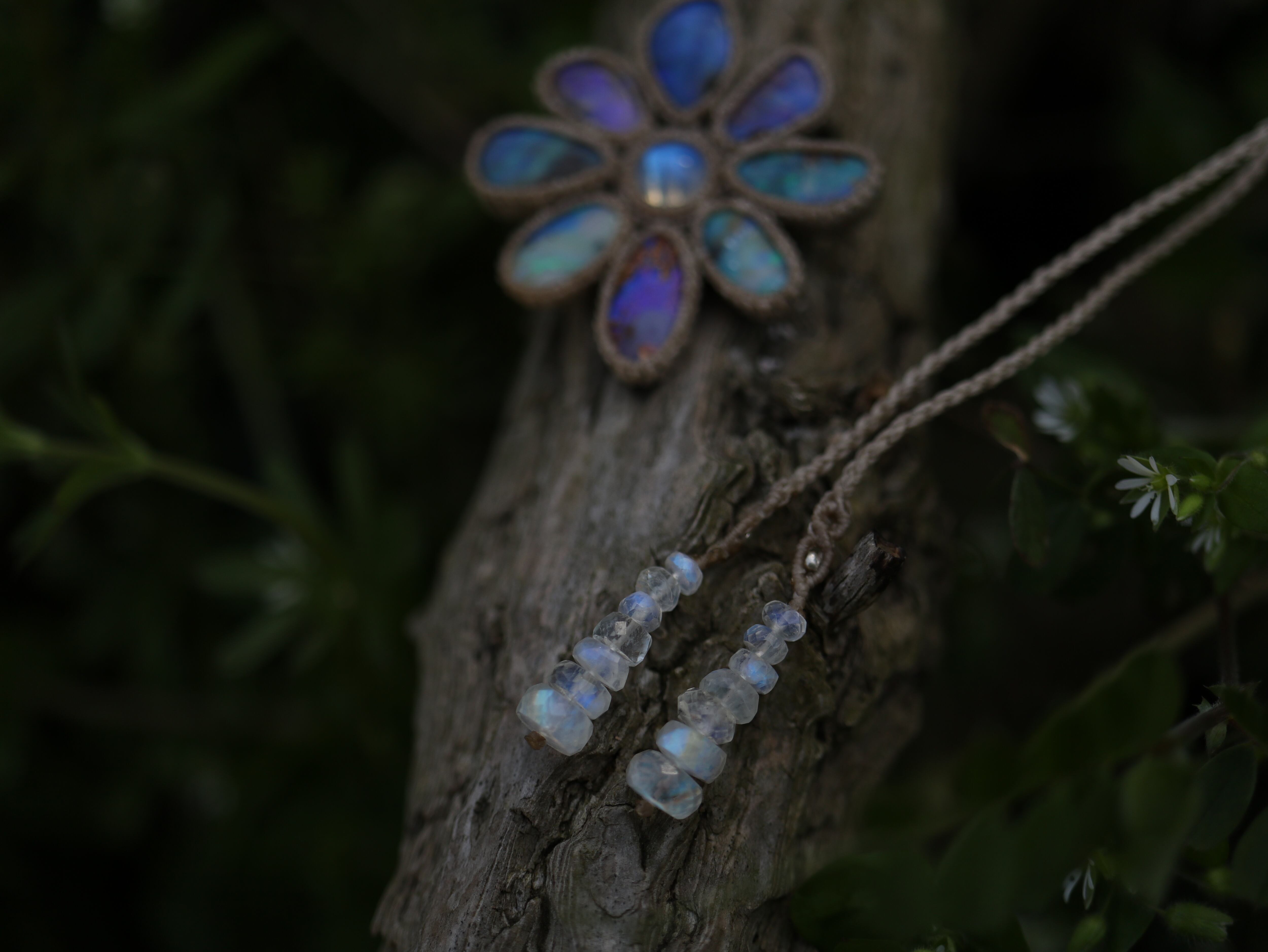 ブルーのシラーを放つムーンストーンを中心に