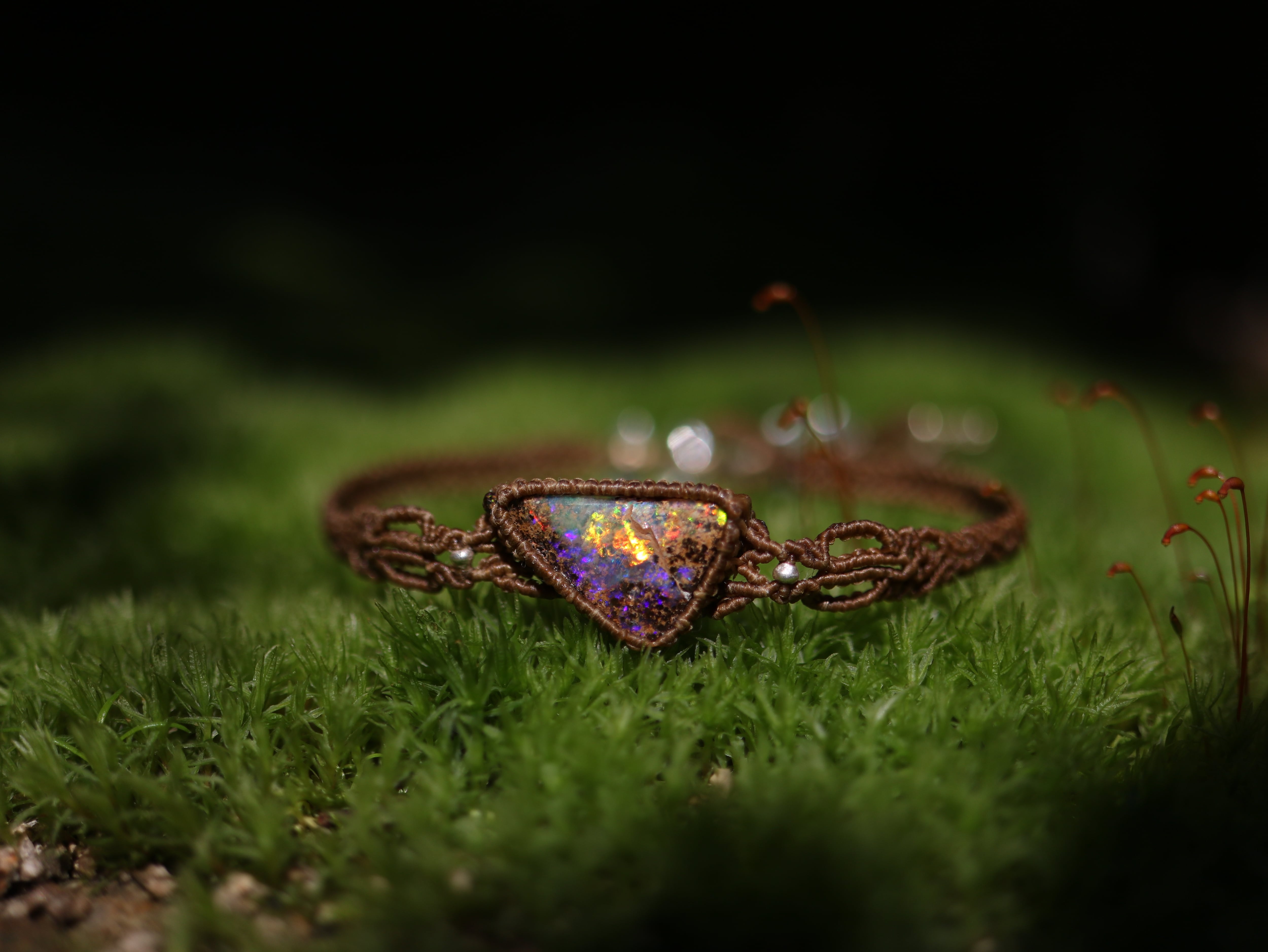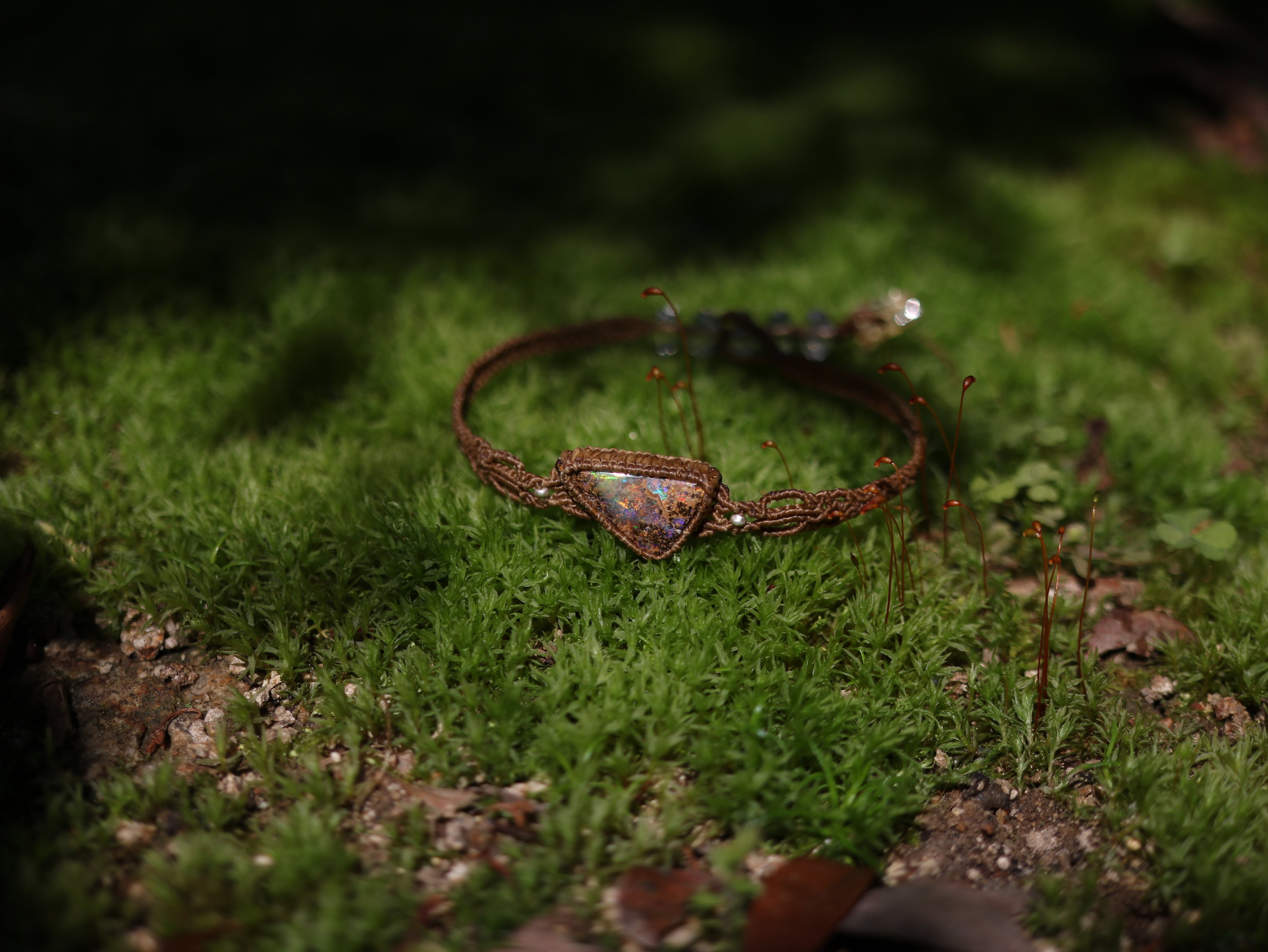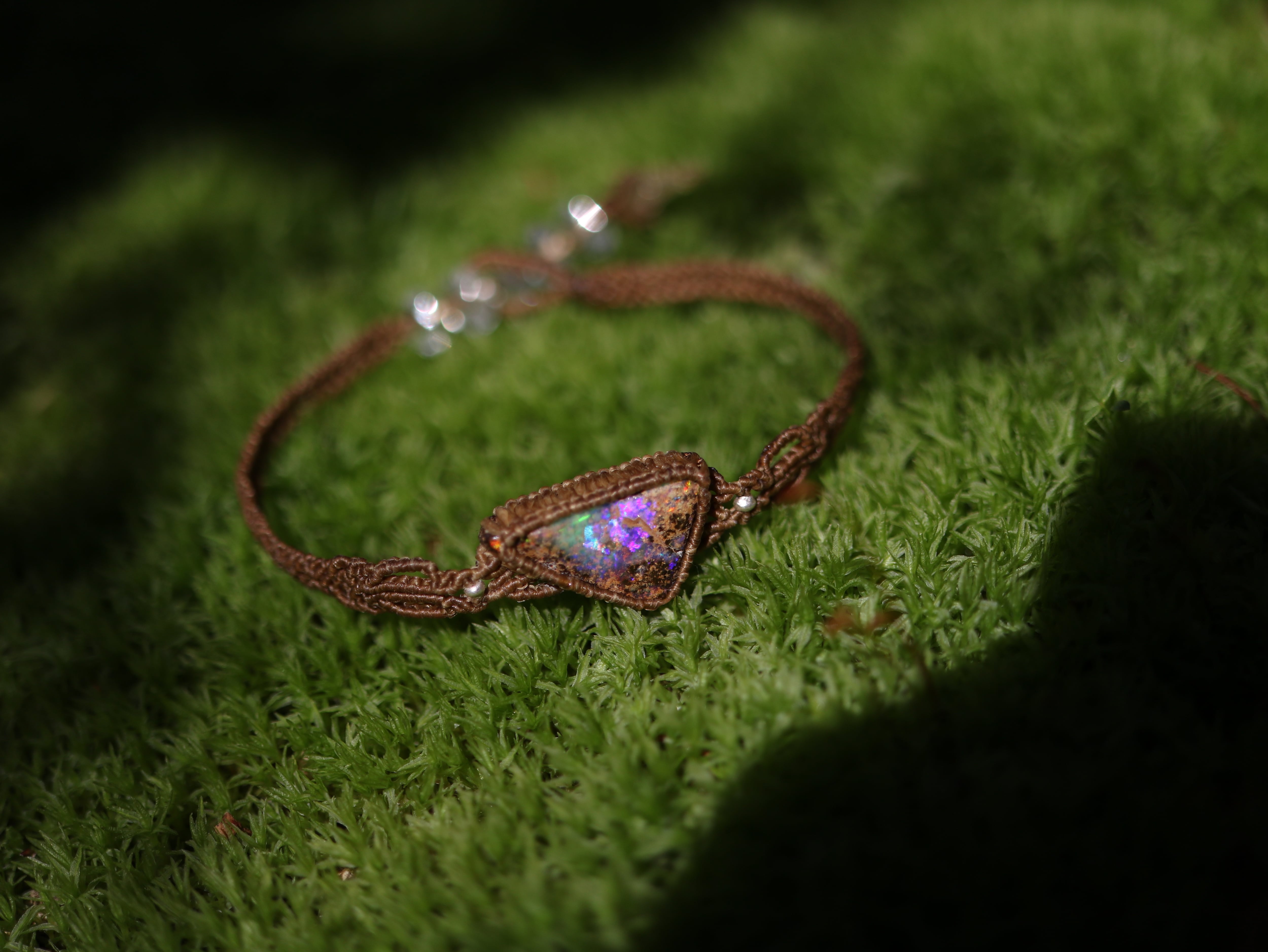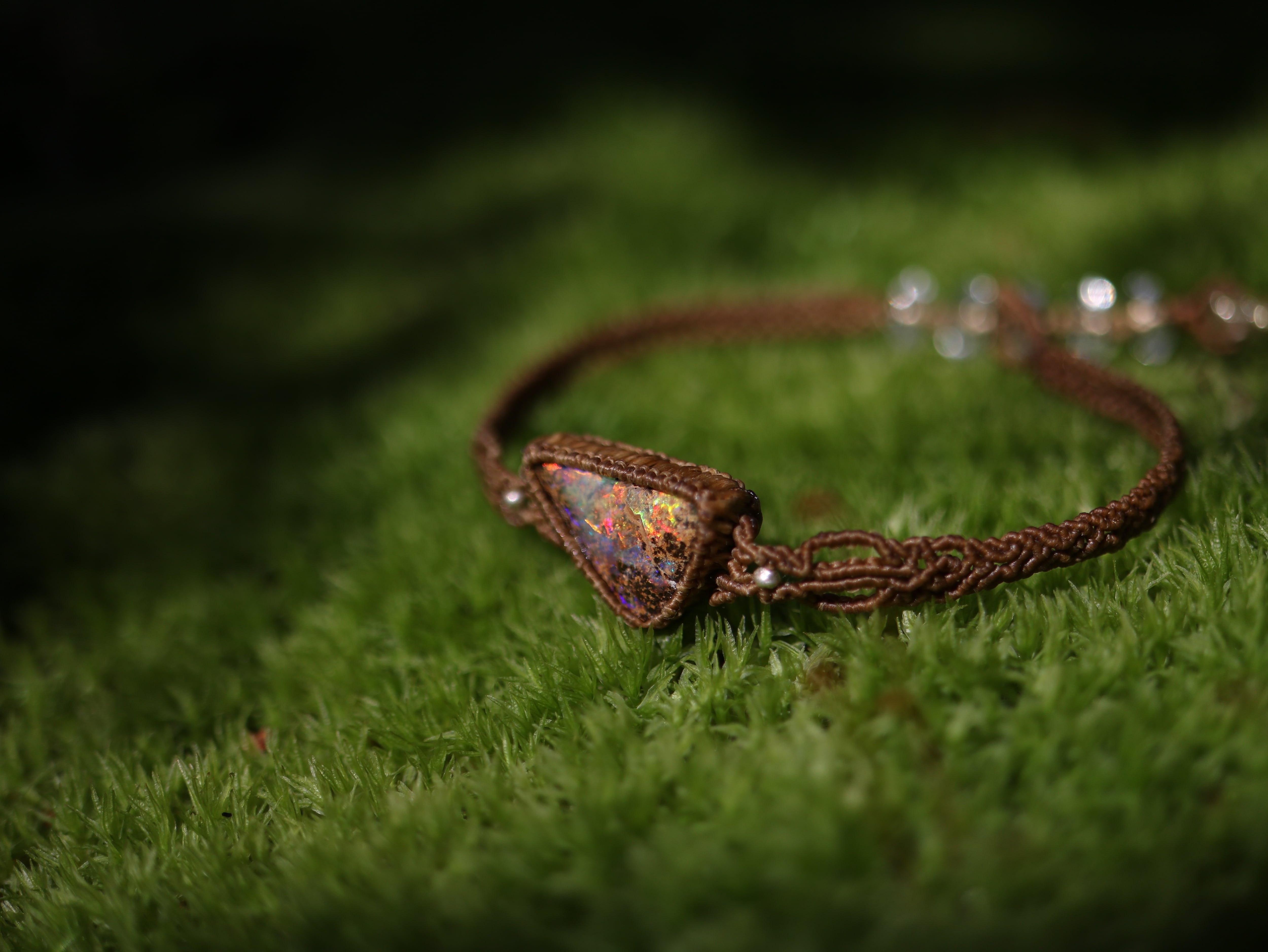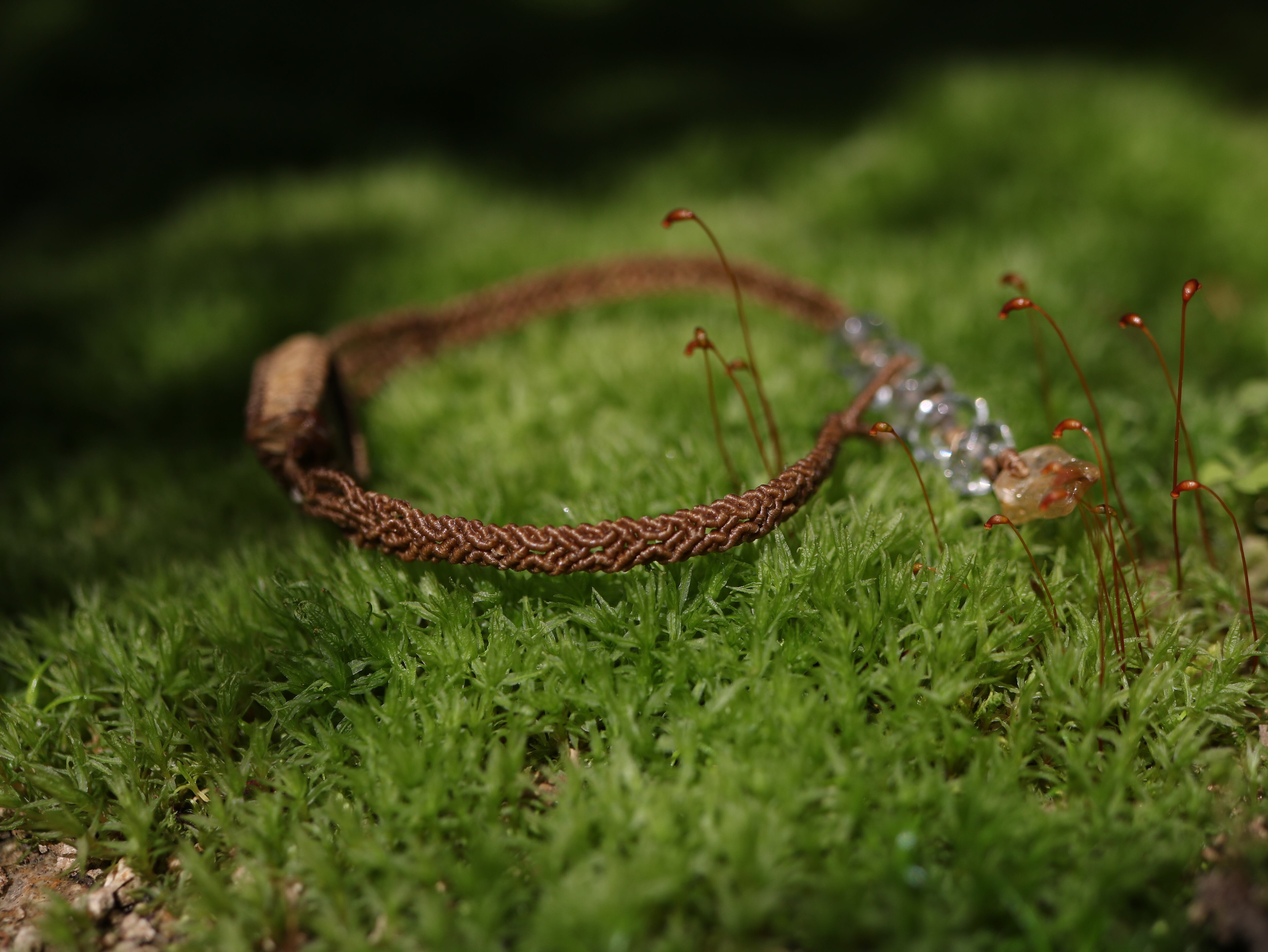 ※ 天然石を包むコードを始めトップ部分に使用したマクラメ編みコードは、