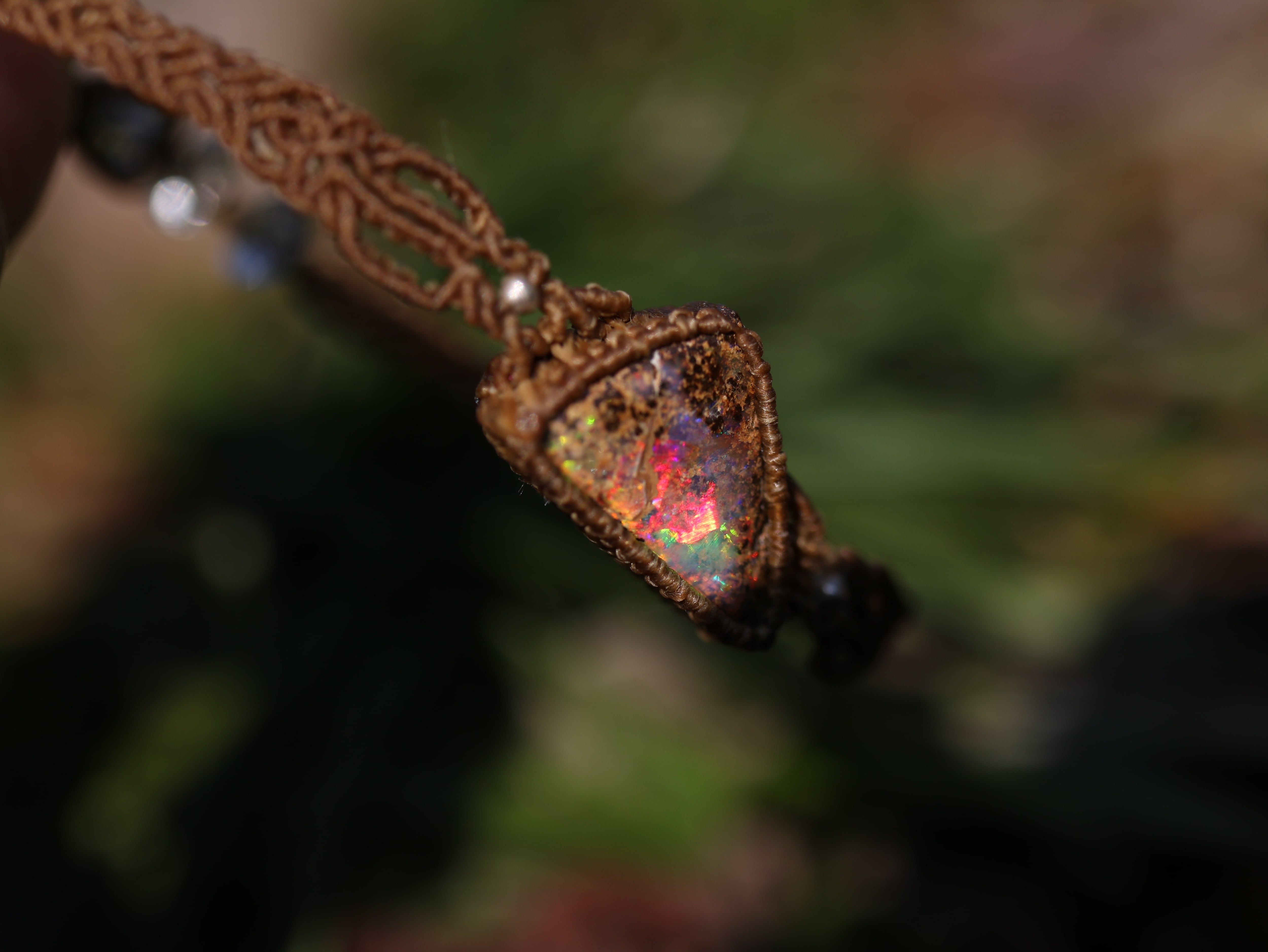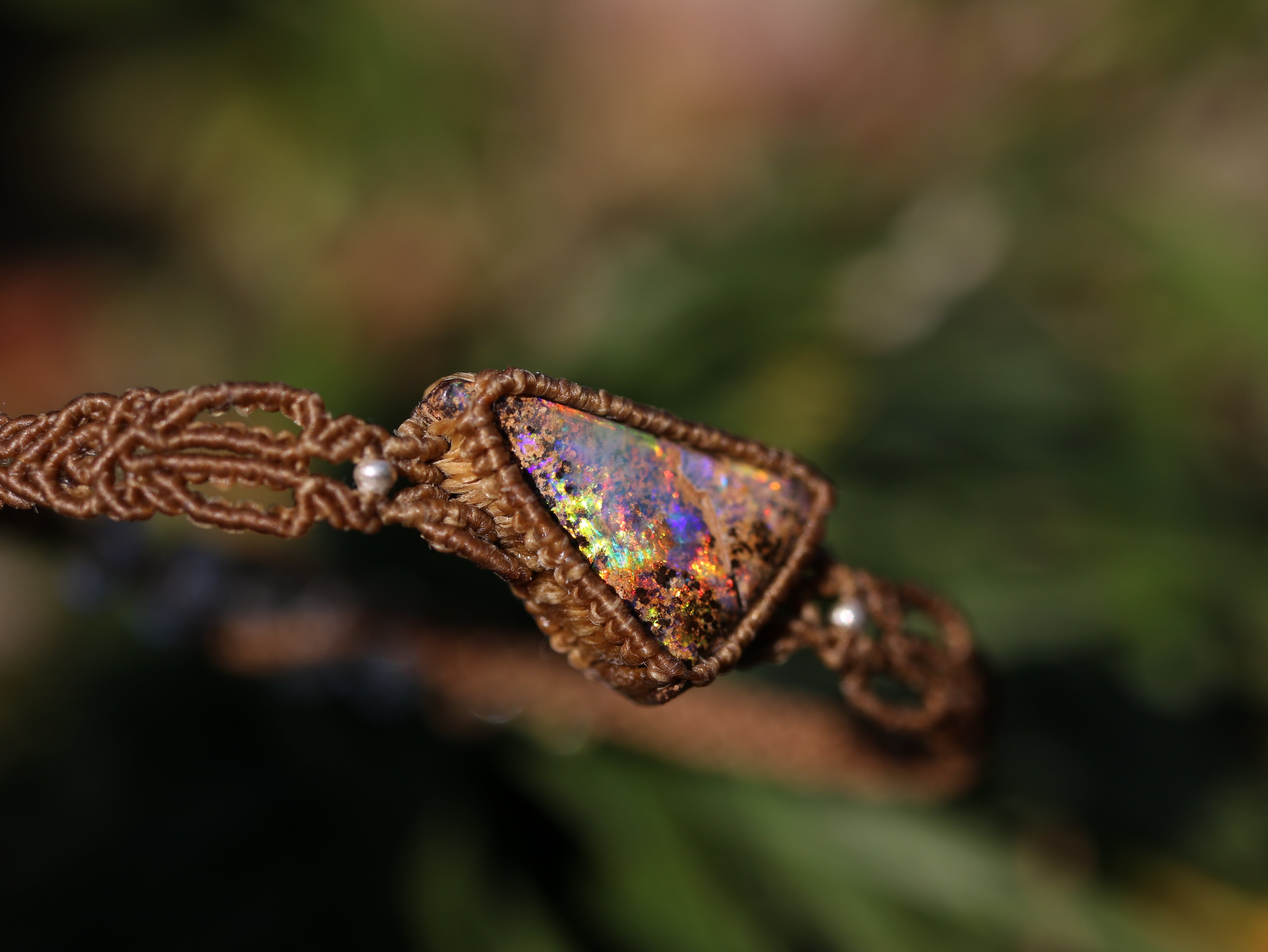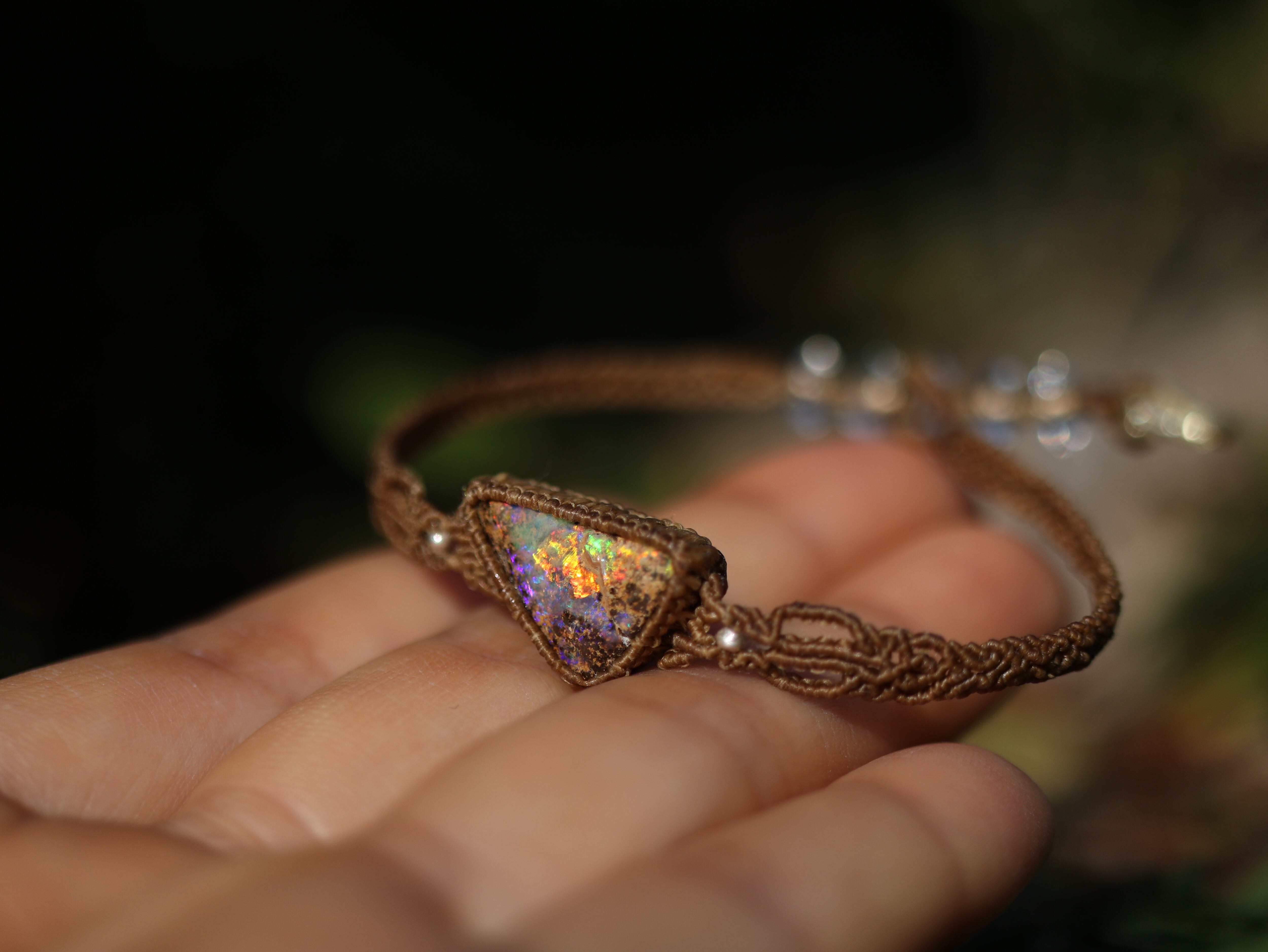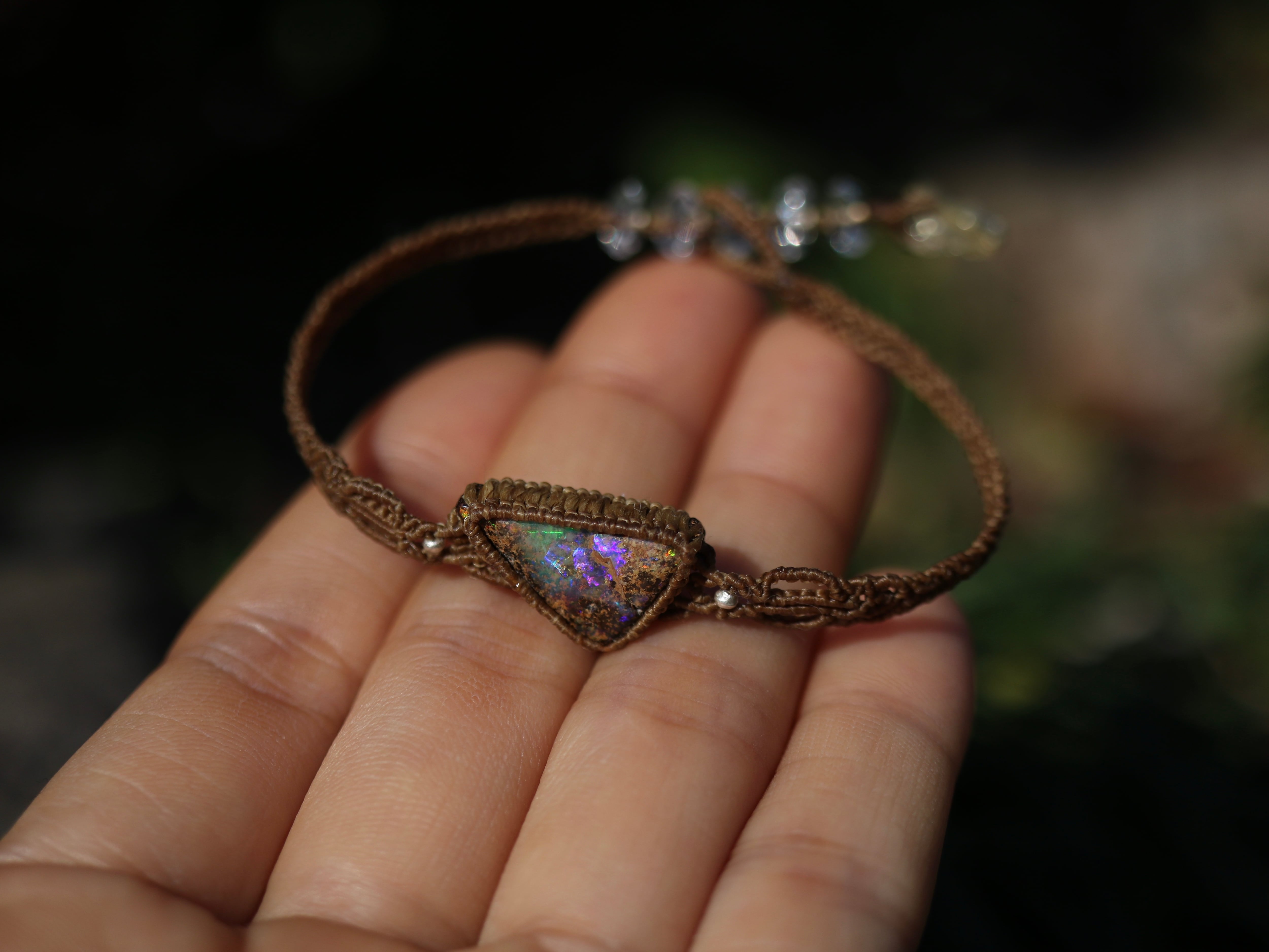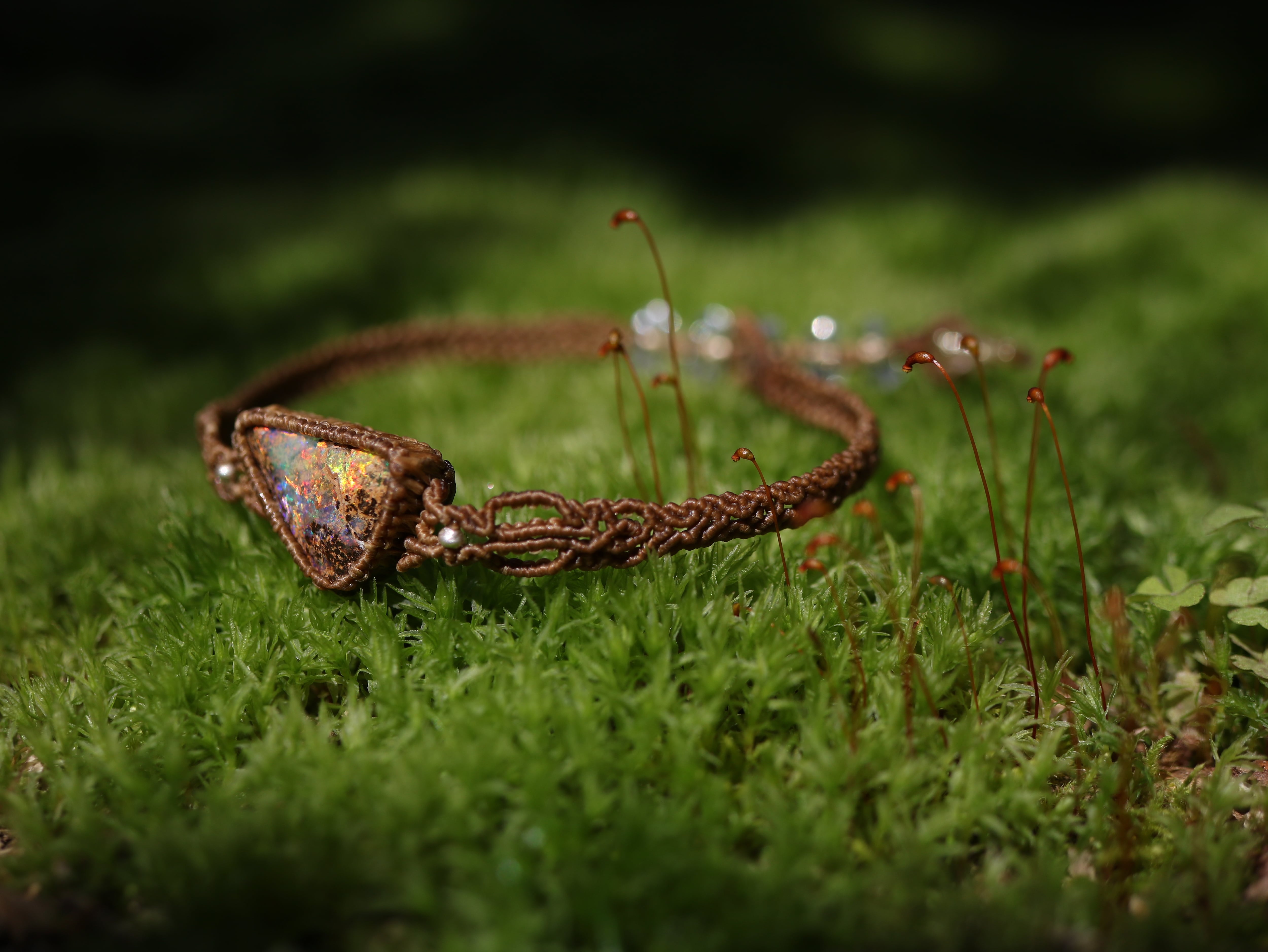 ※ 天然石を包むコードを始めトップ部分に使用したマクラメ編みコードは、