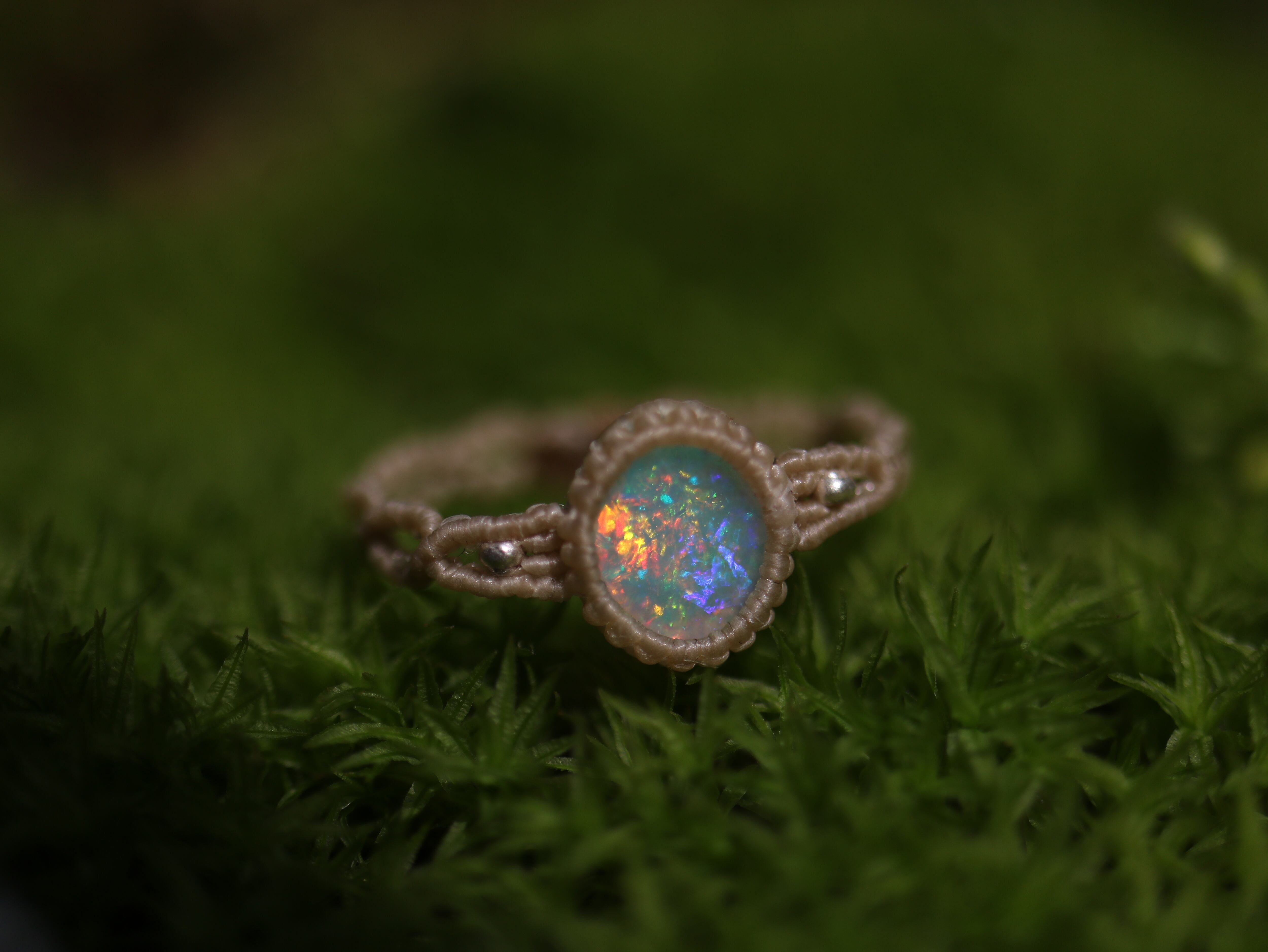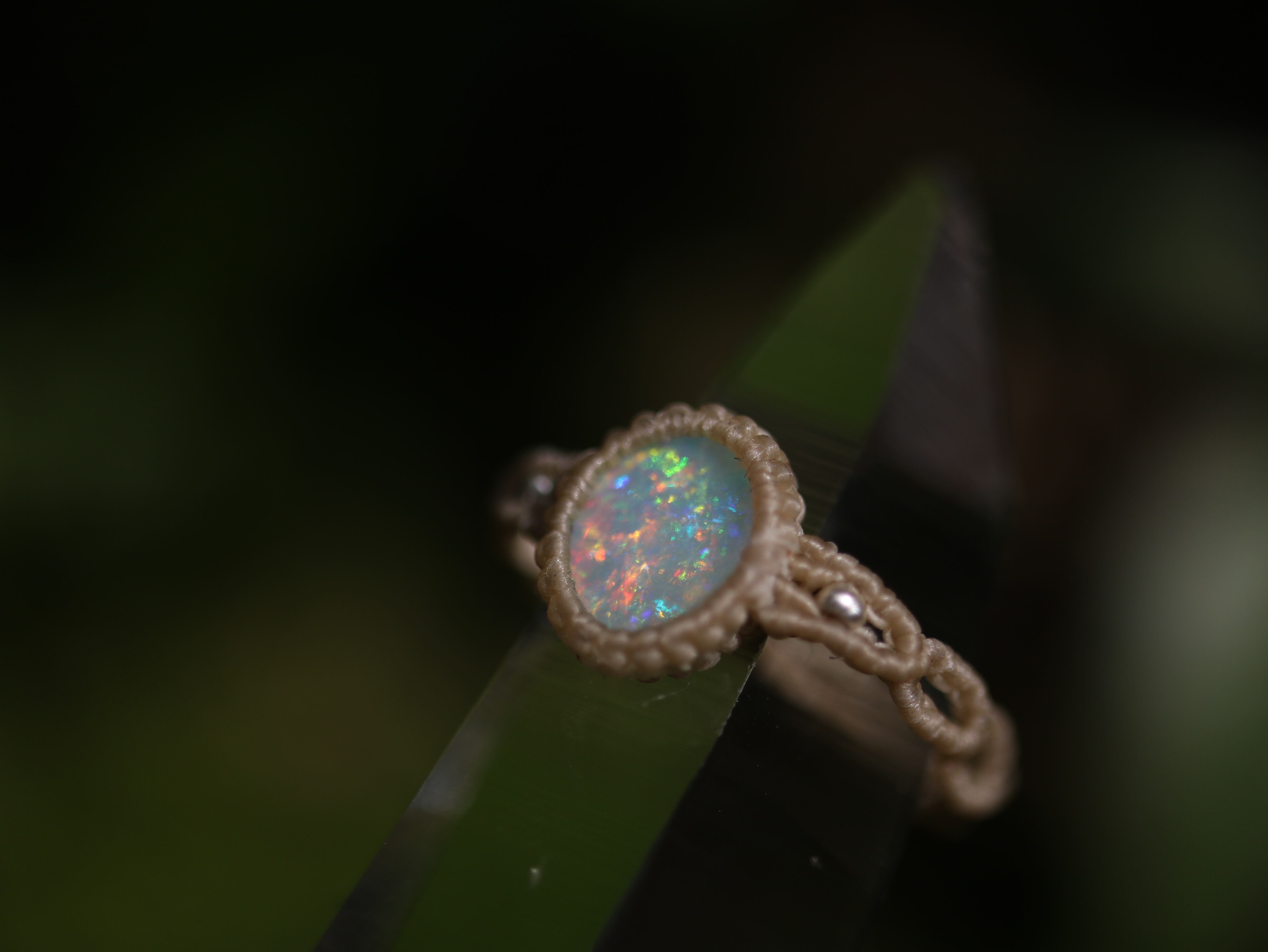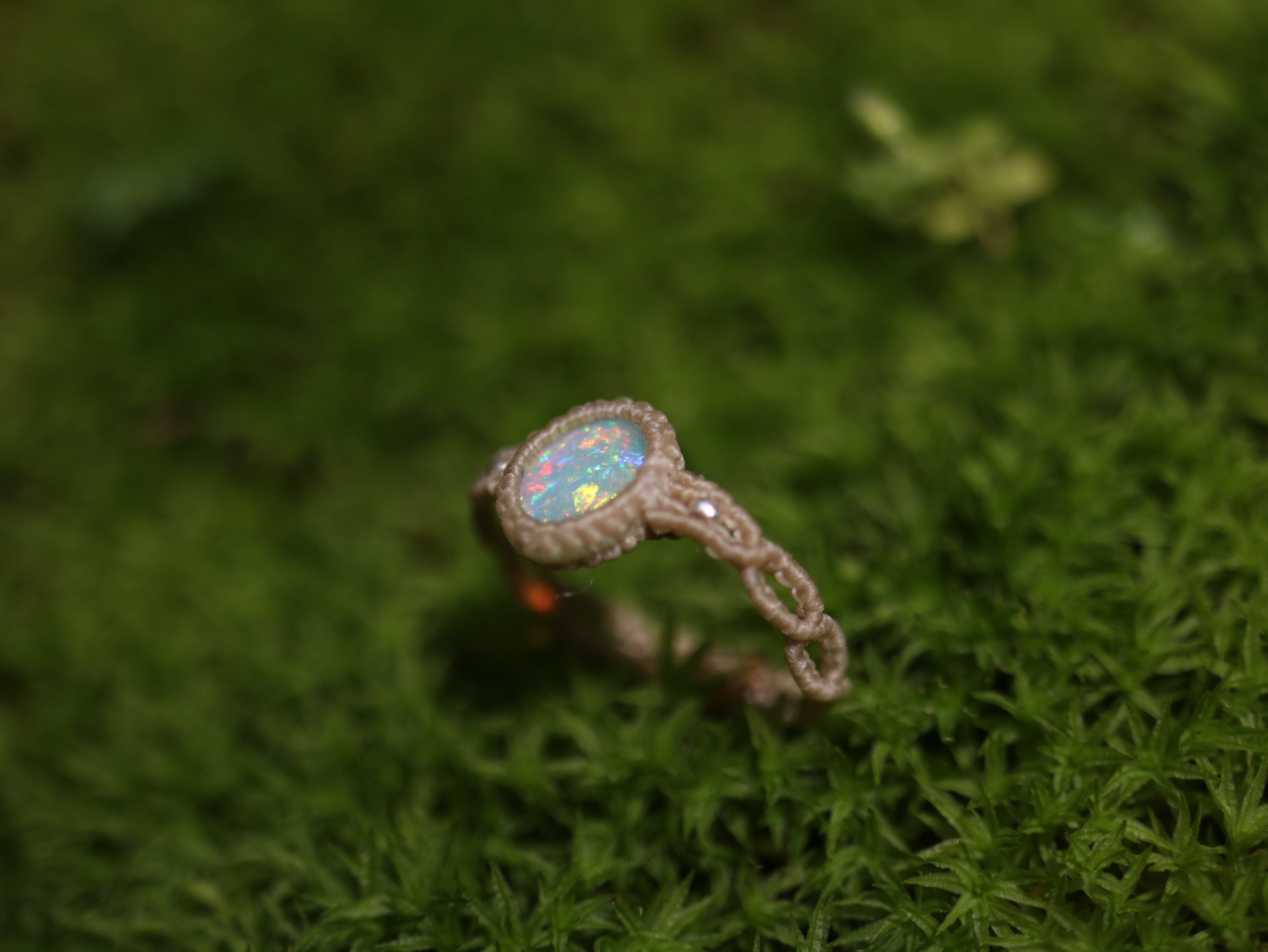 ※ 天然石を包むコードを始めトップ部分に使用したマクラメ編みコードは