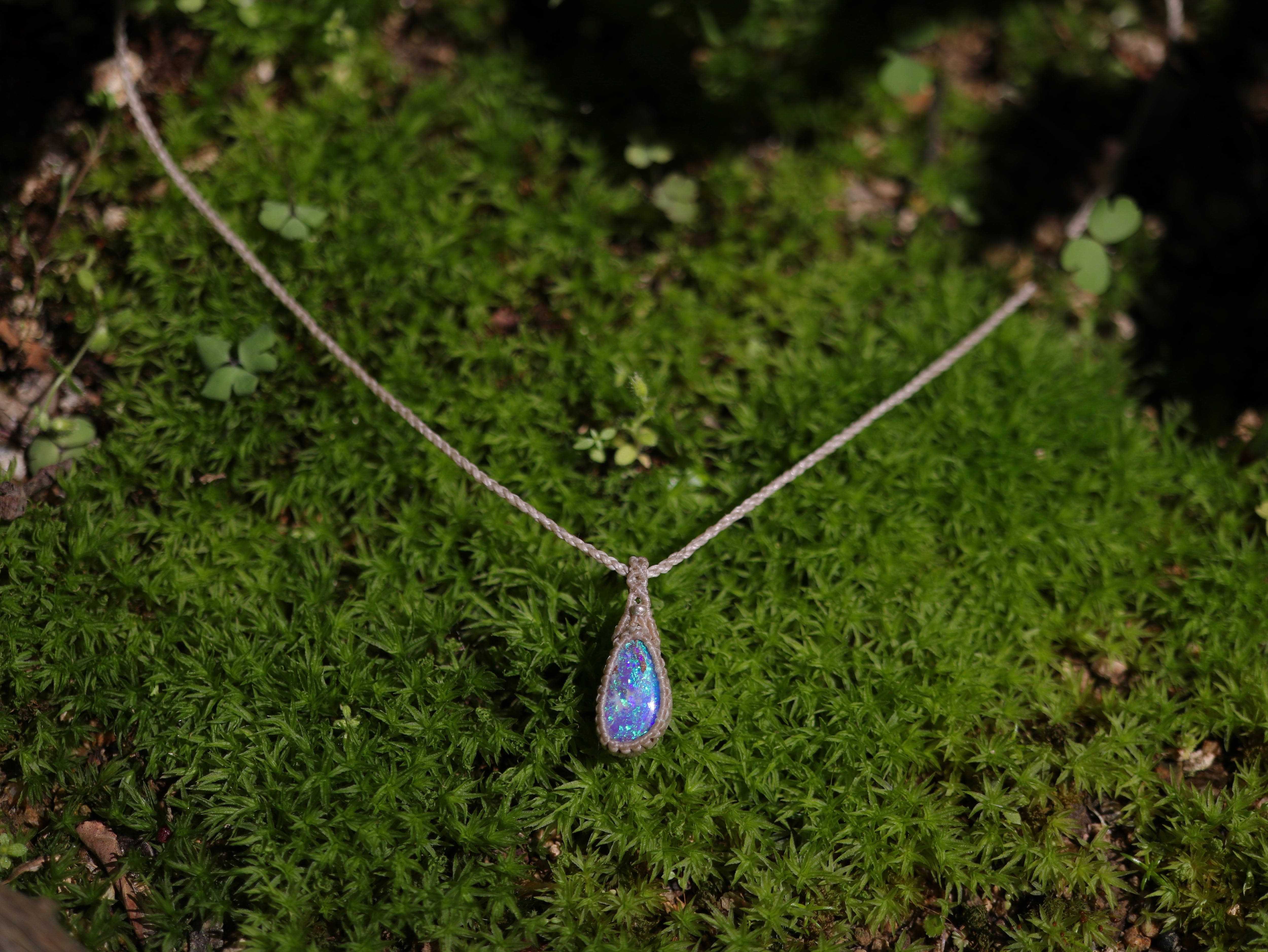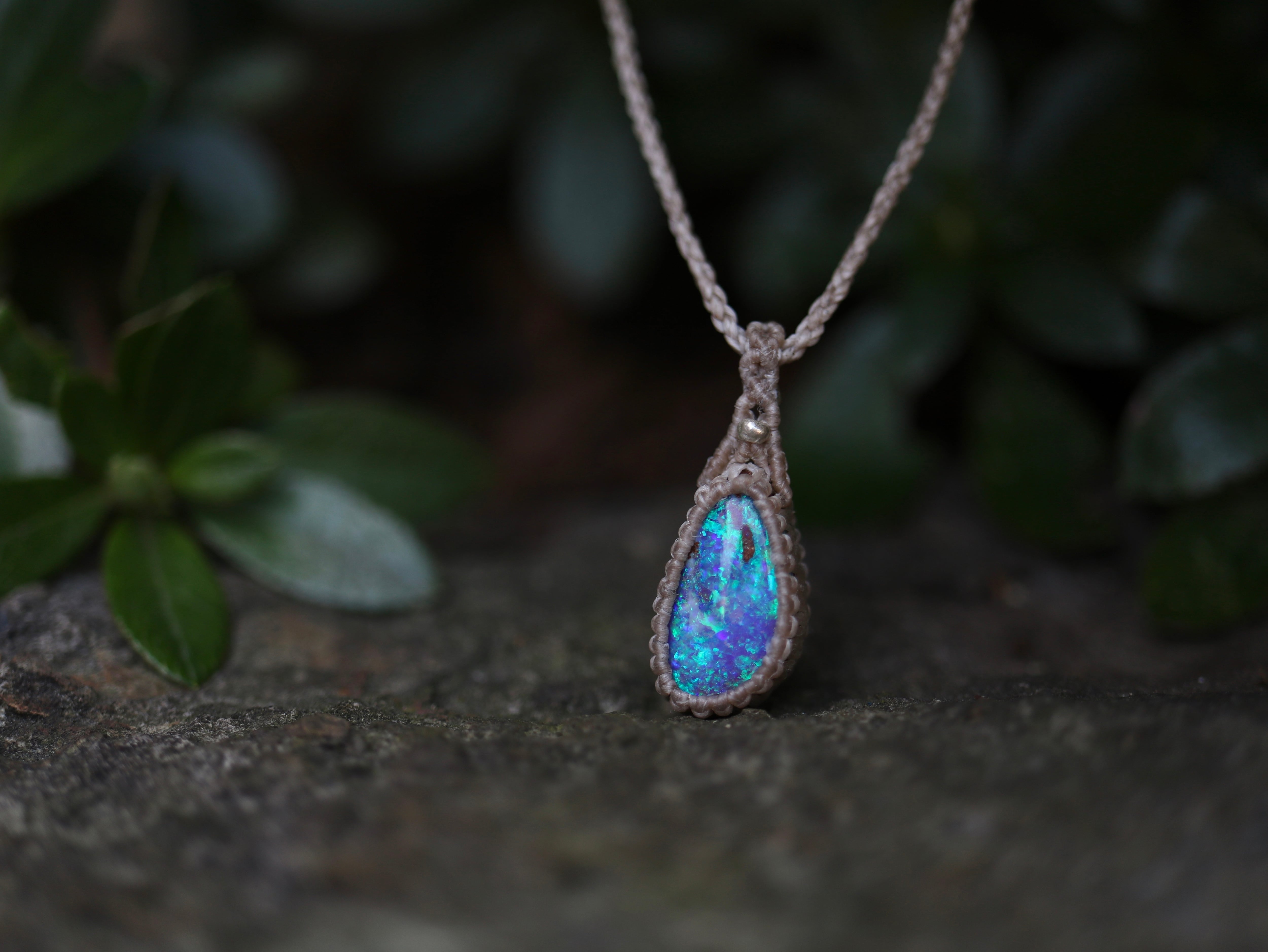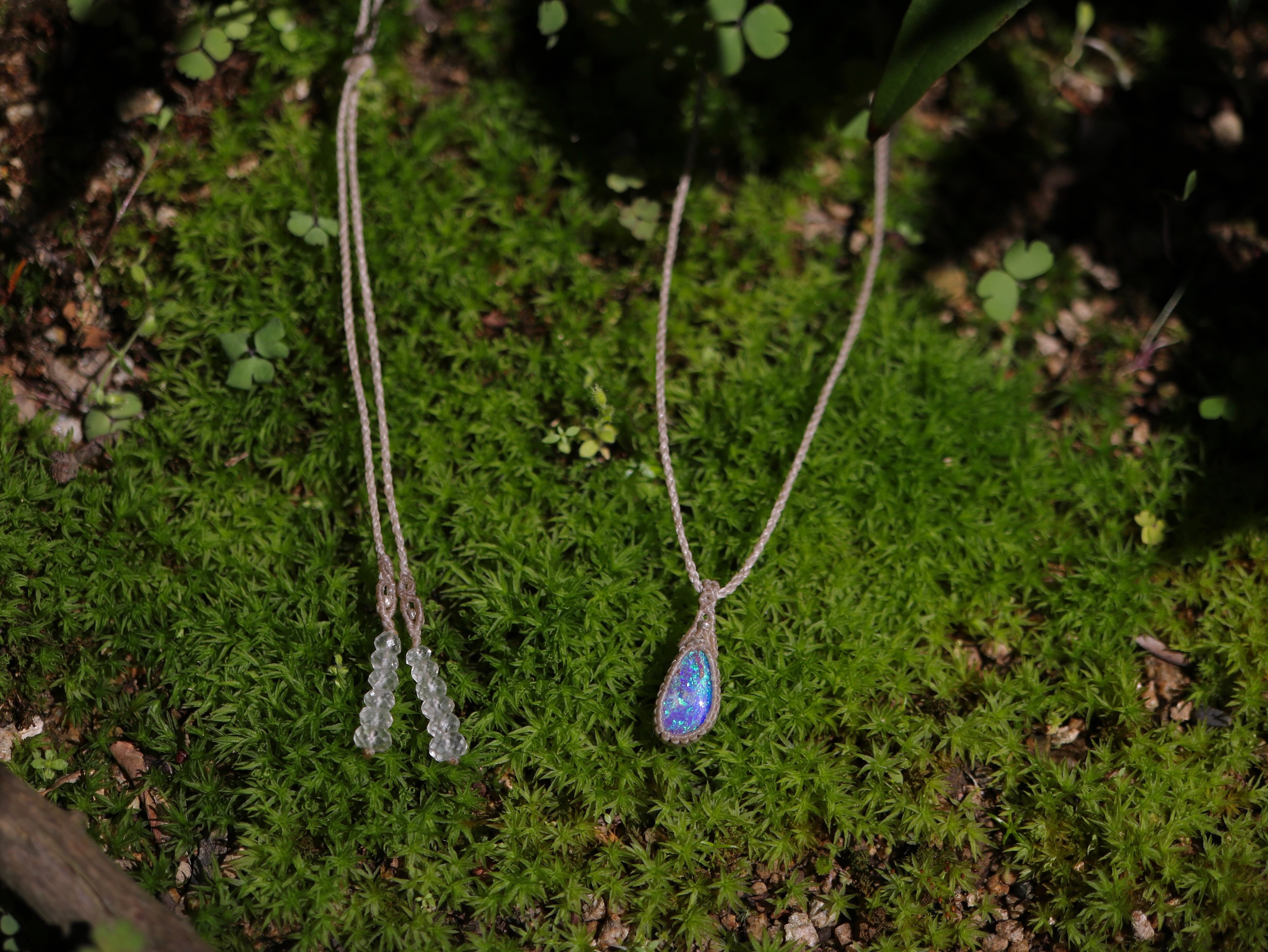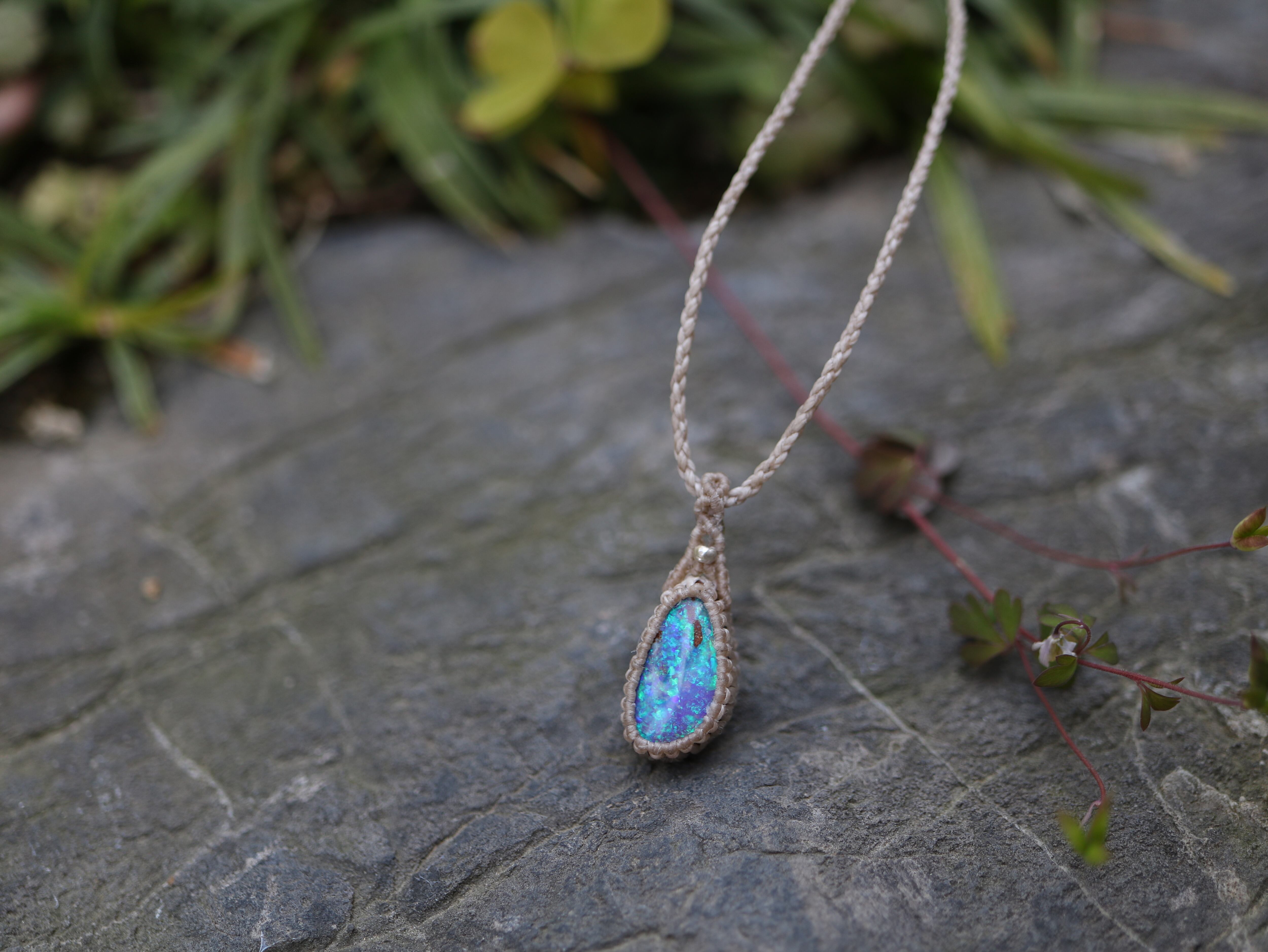 ※ 天然石を包むコードを始めトップ部分に使用したマクラメ編みコードは