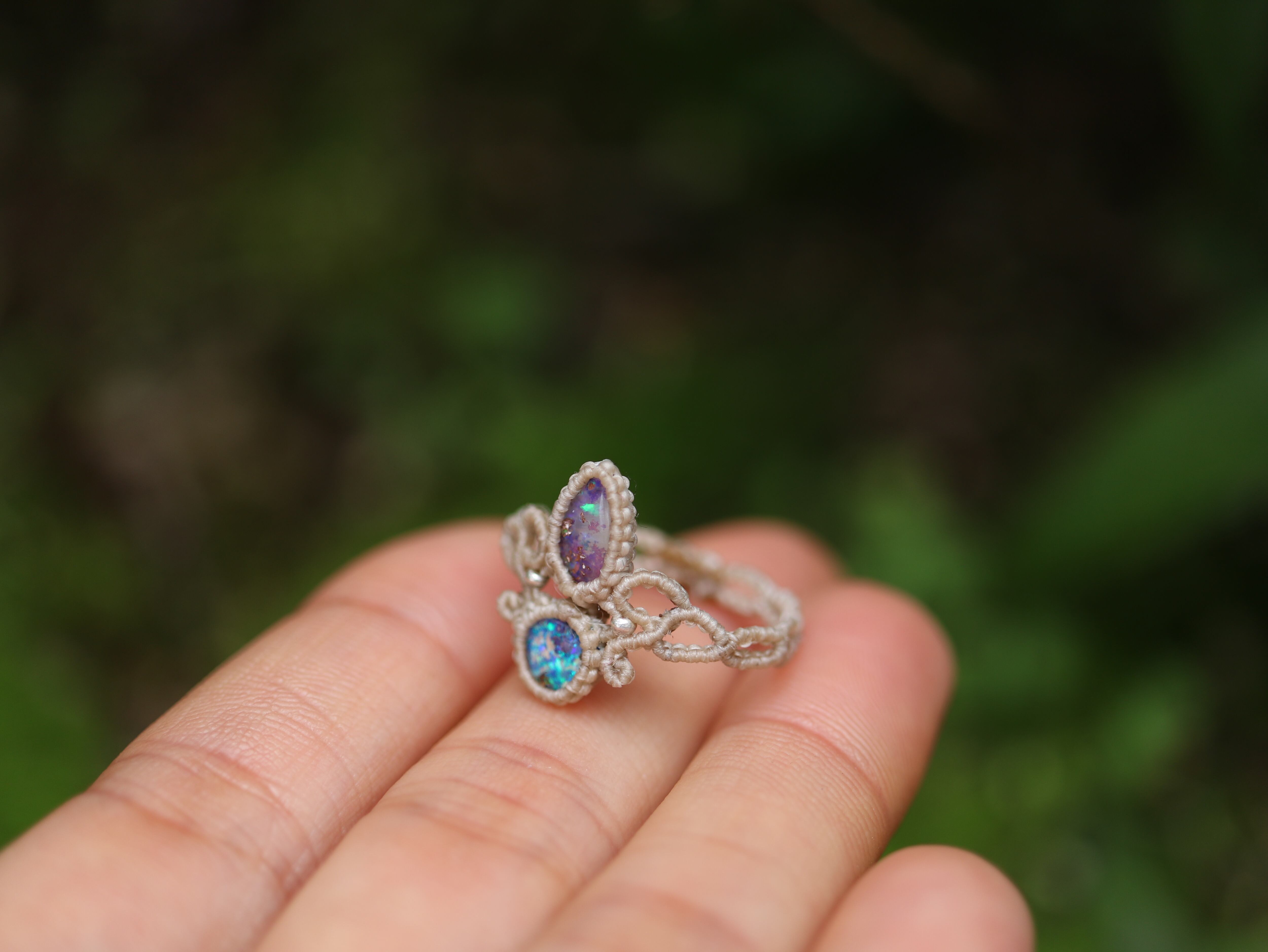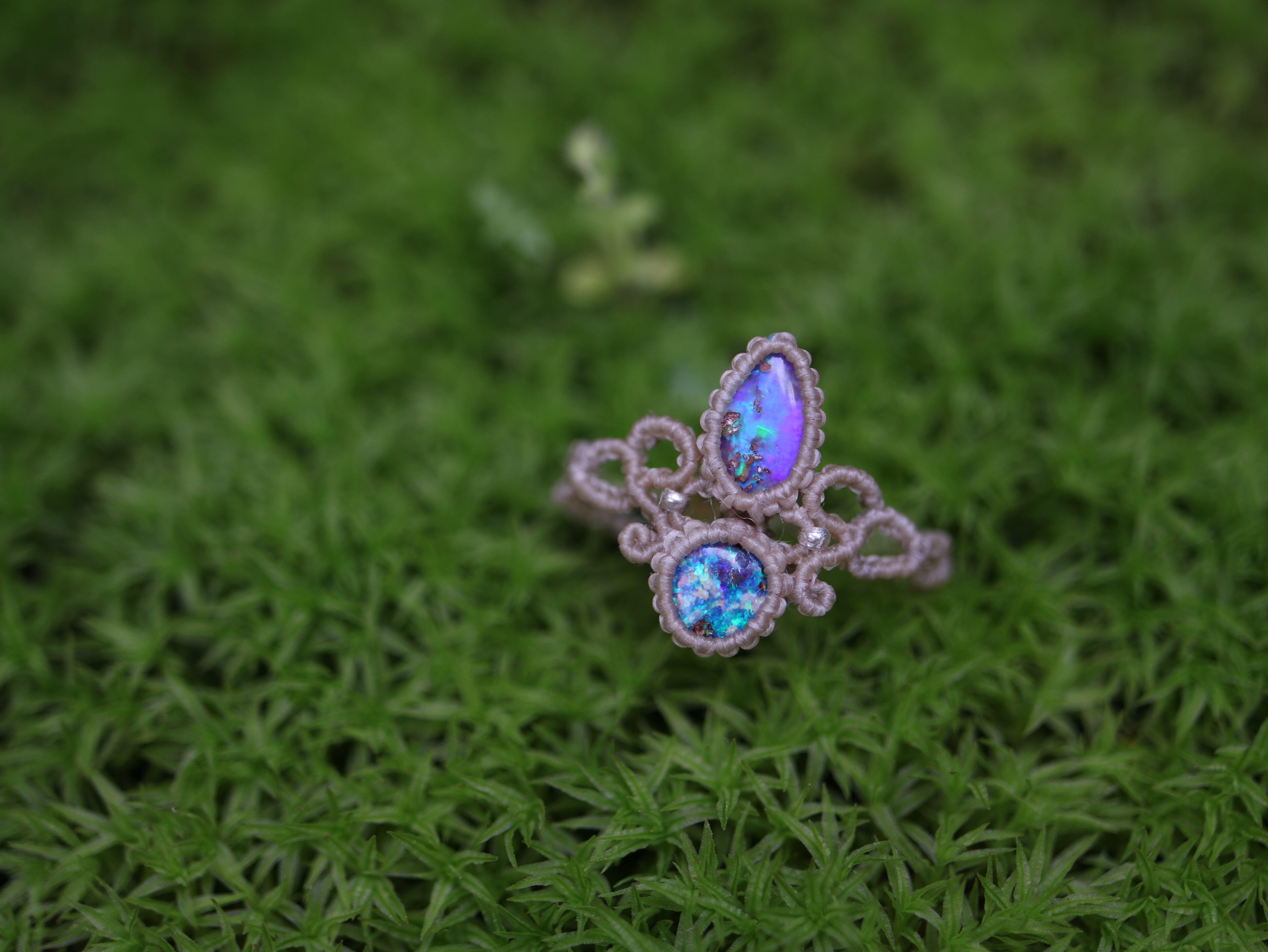 ※ 天然石を包むコードを始めトップ部分に使用したマクラメ編みコードは
