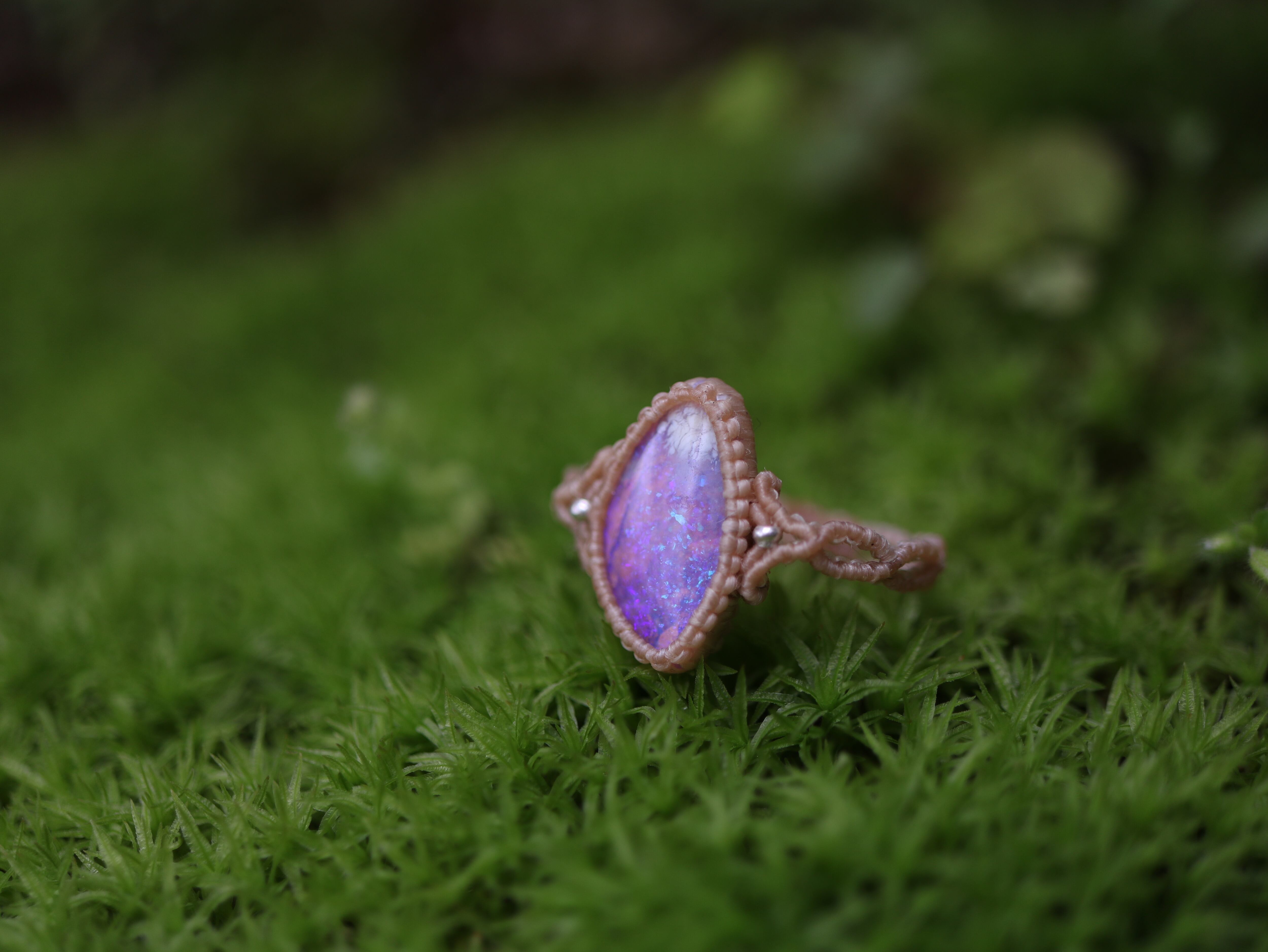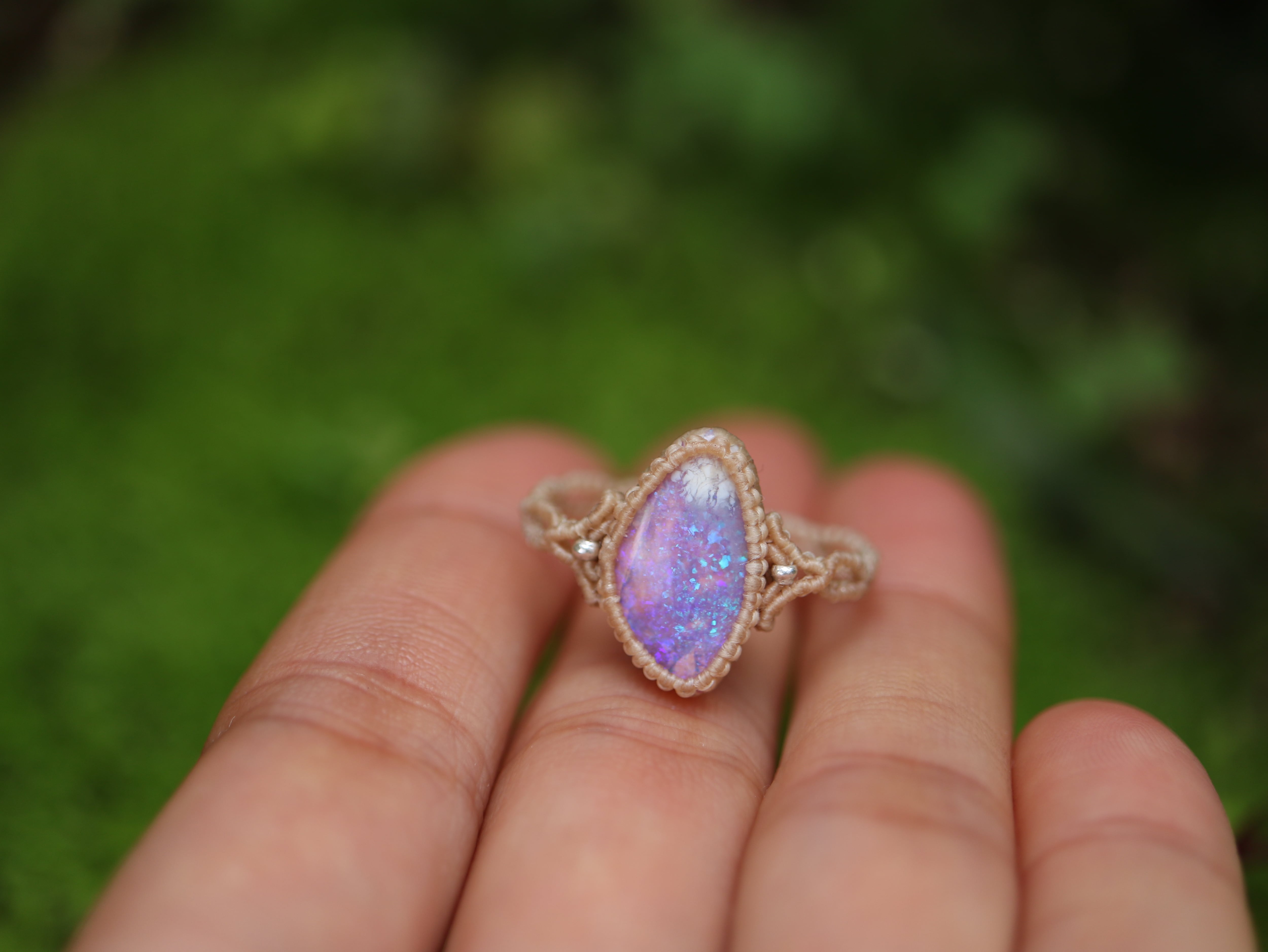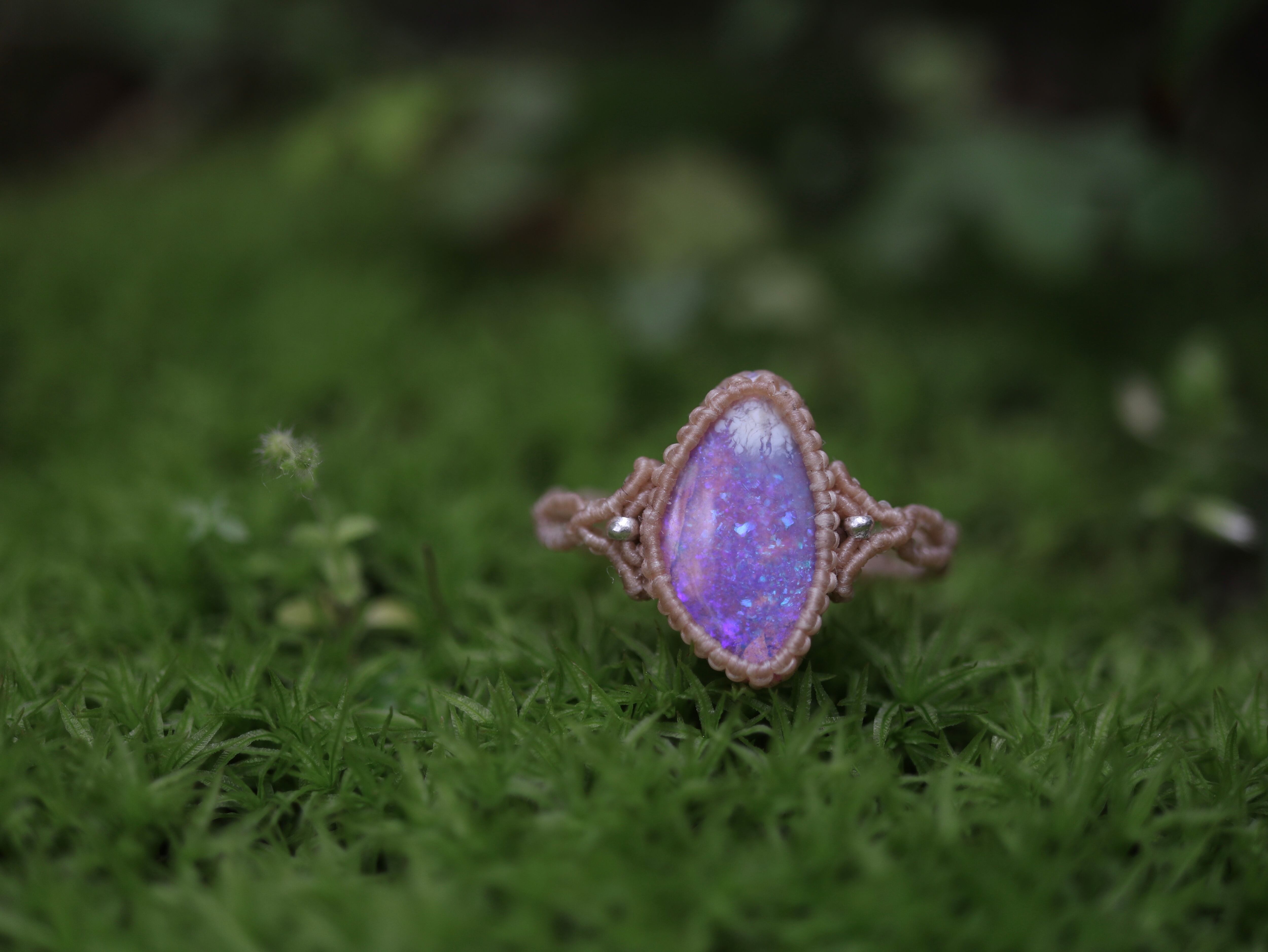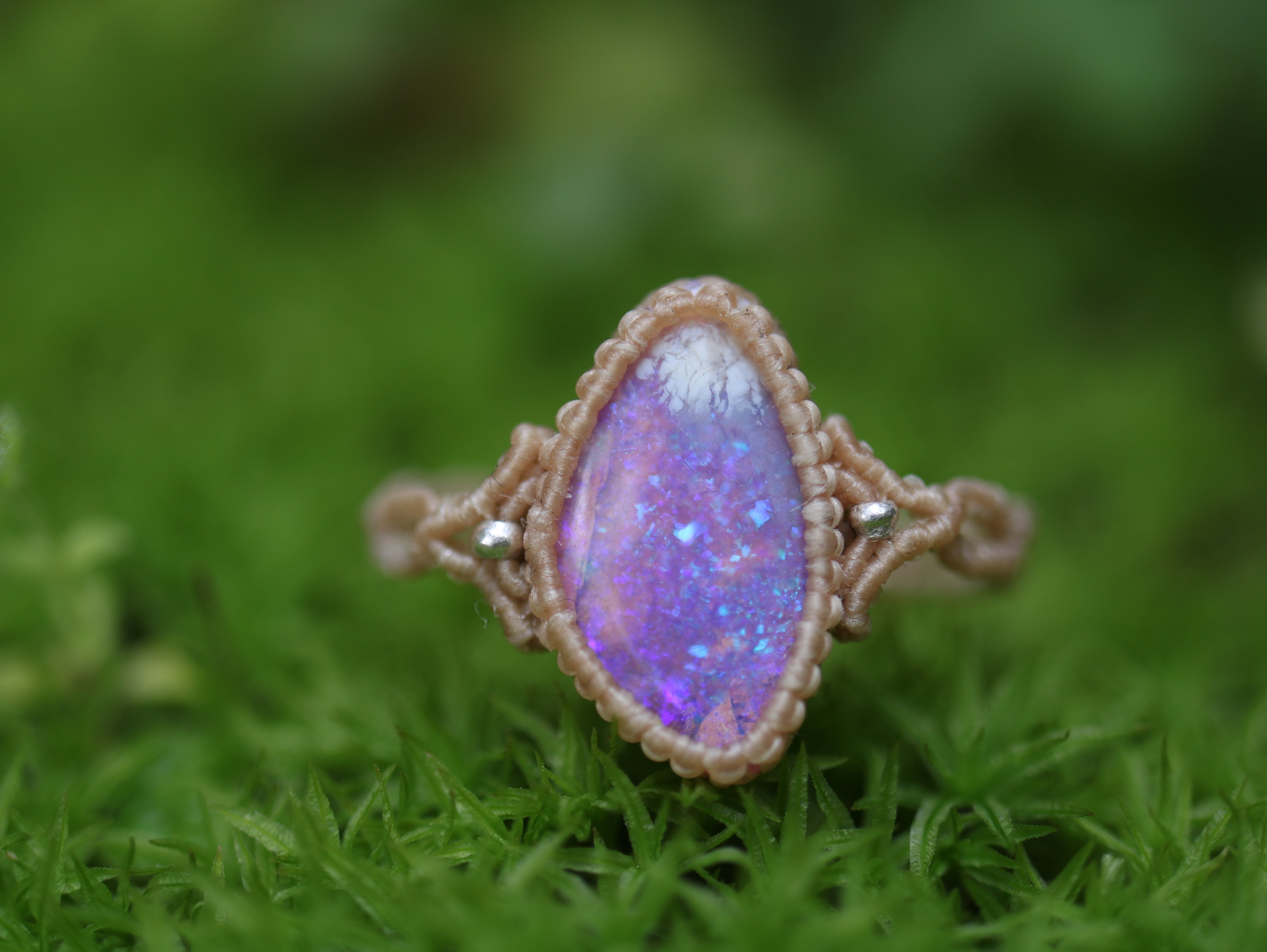 ※ 天然石を包むコードを始めトップ部分に使用したマクラメ編みコードは