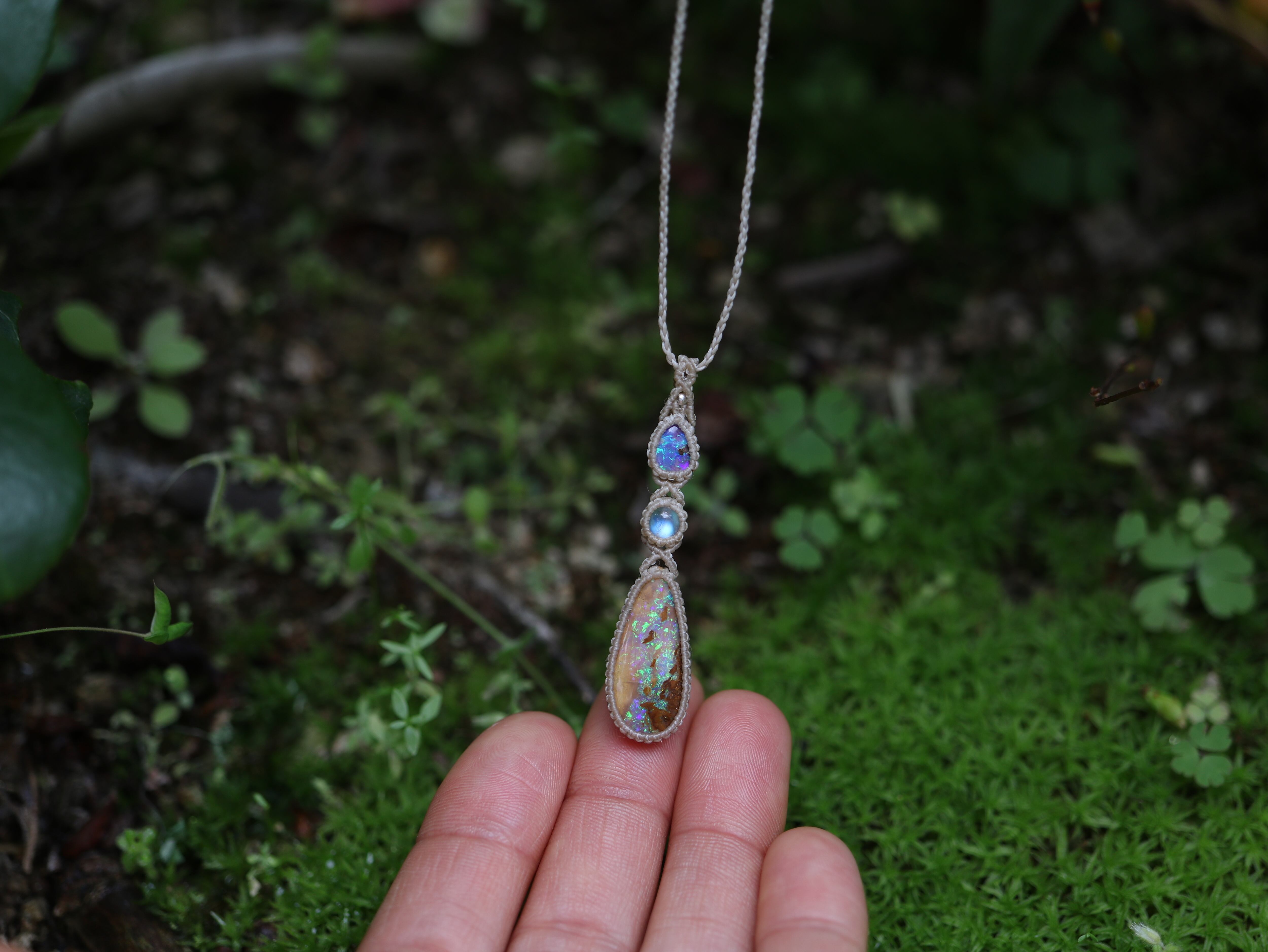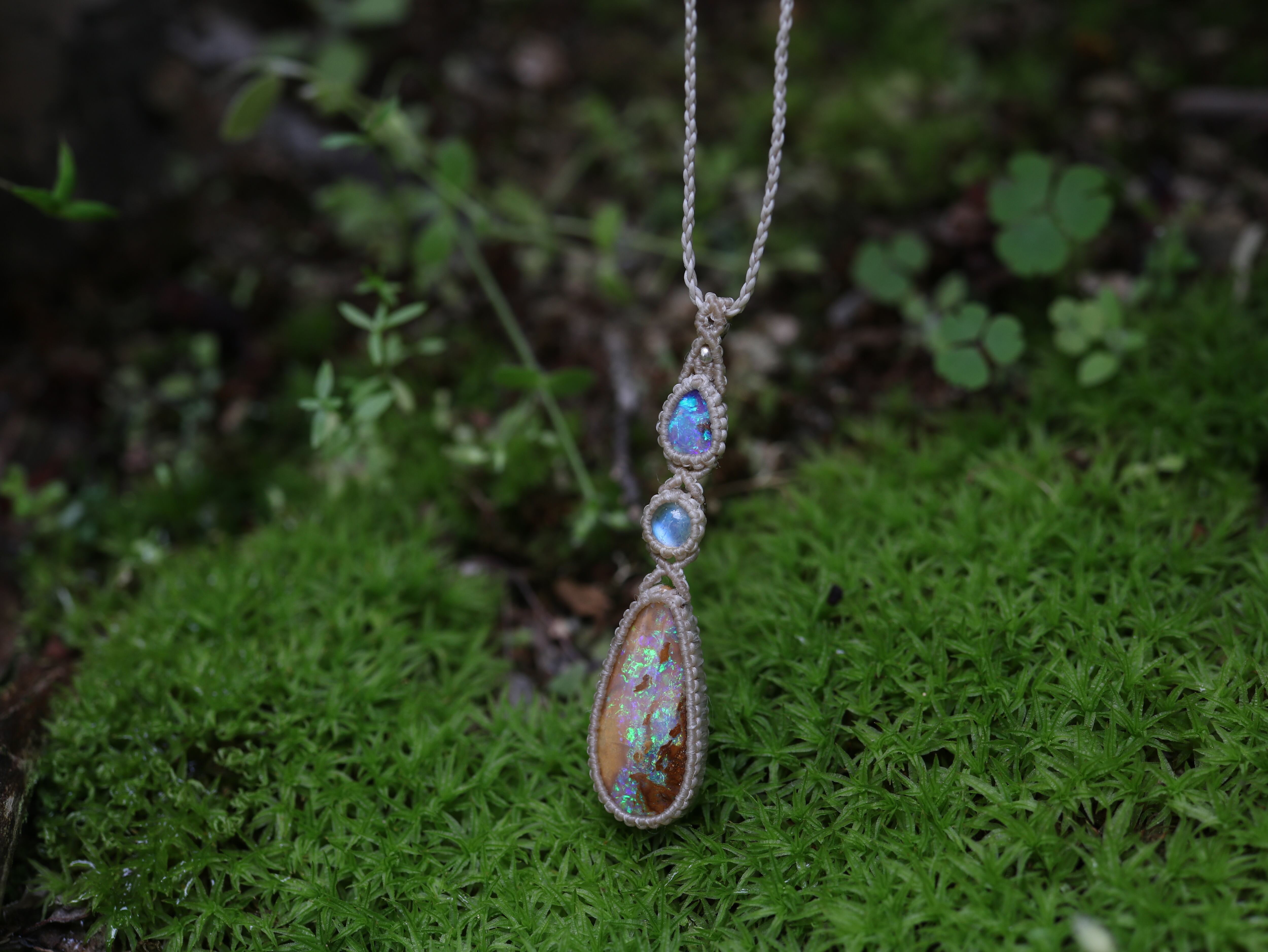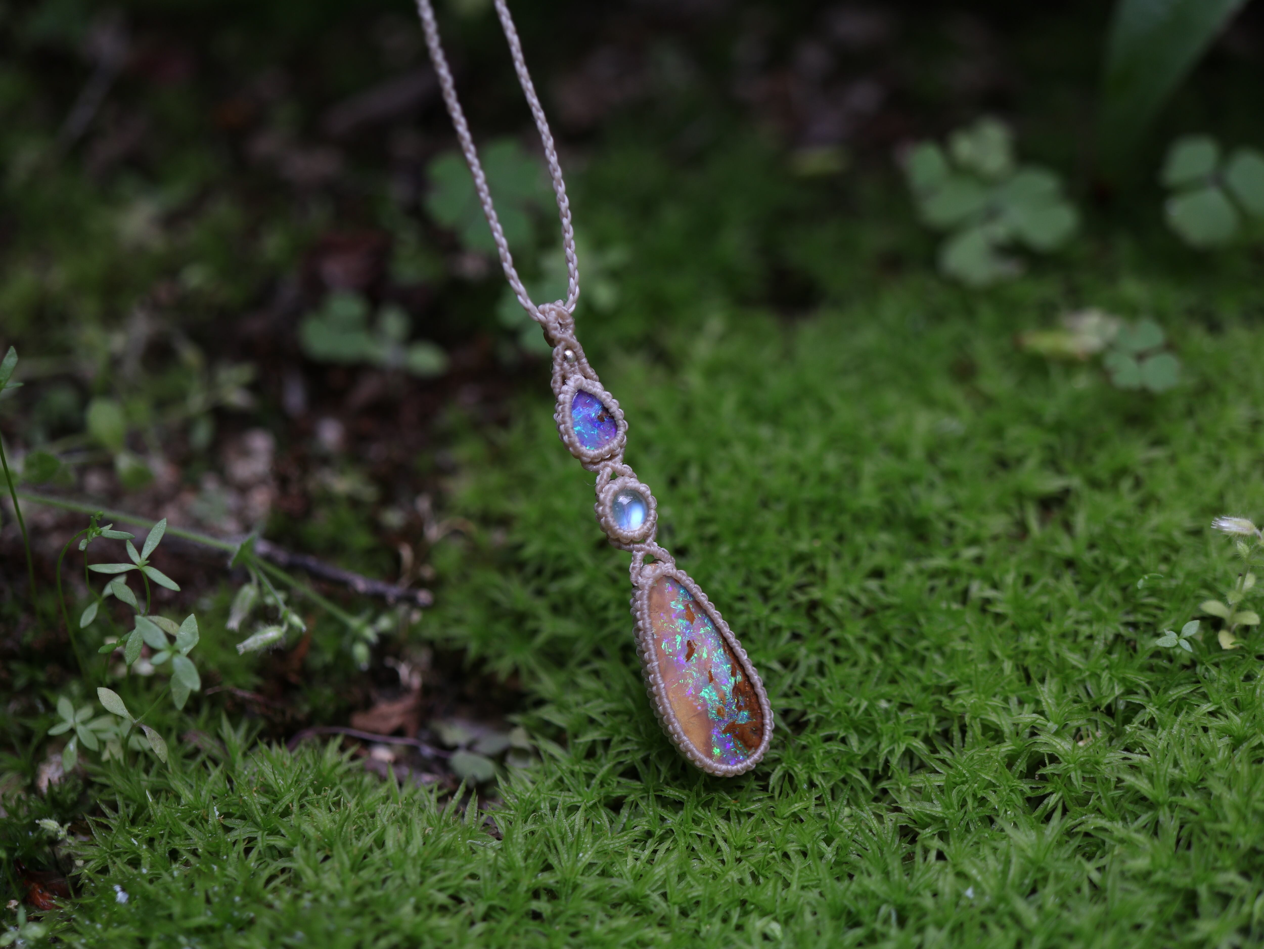 滴型、紫色のオーストラリア産オパールとムーンストーンを合わせて