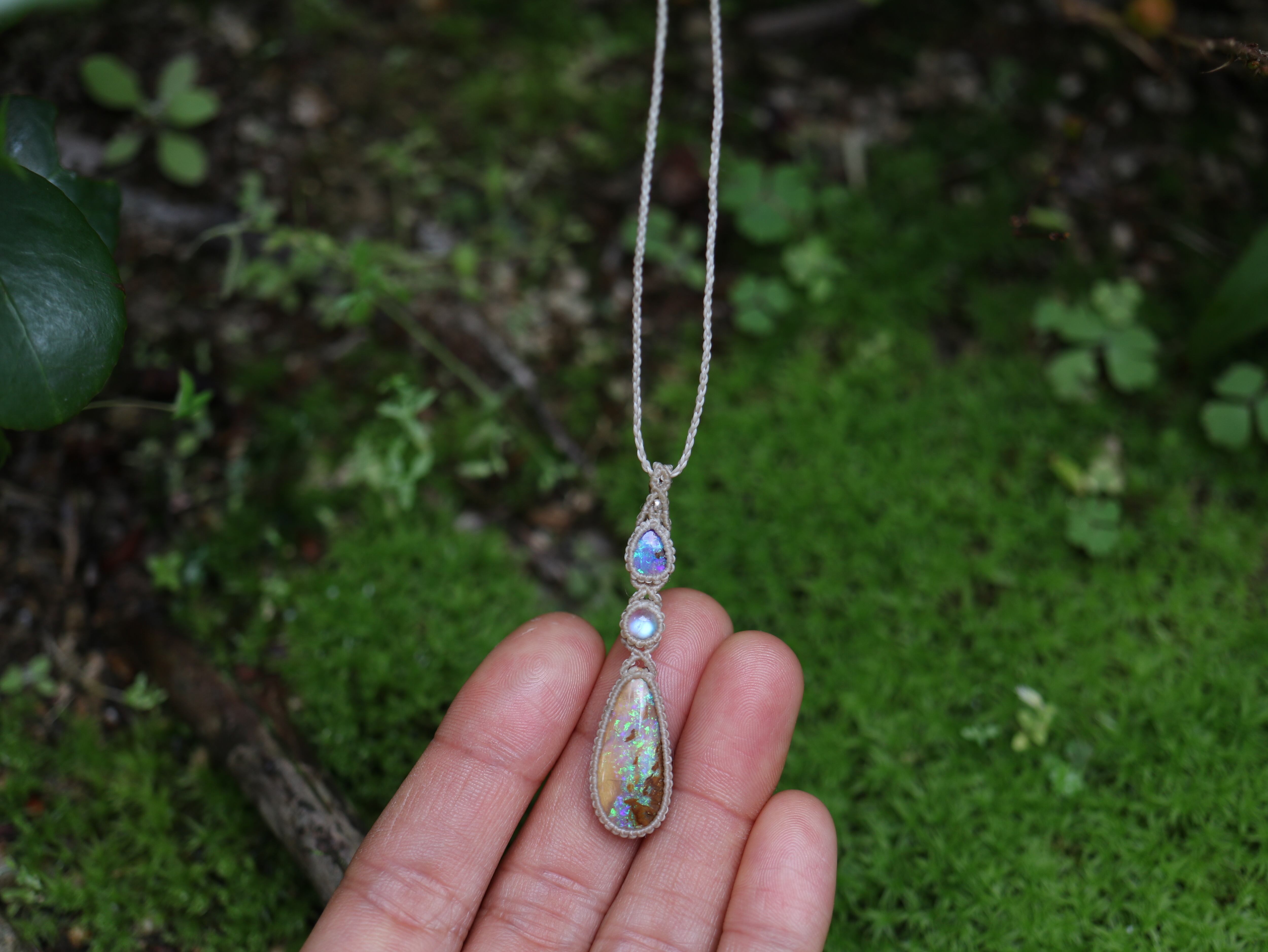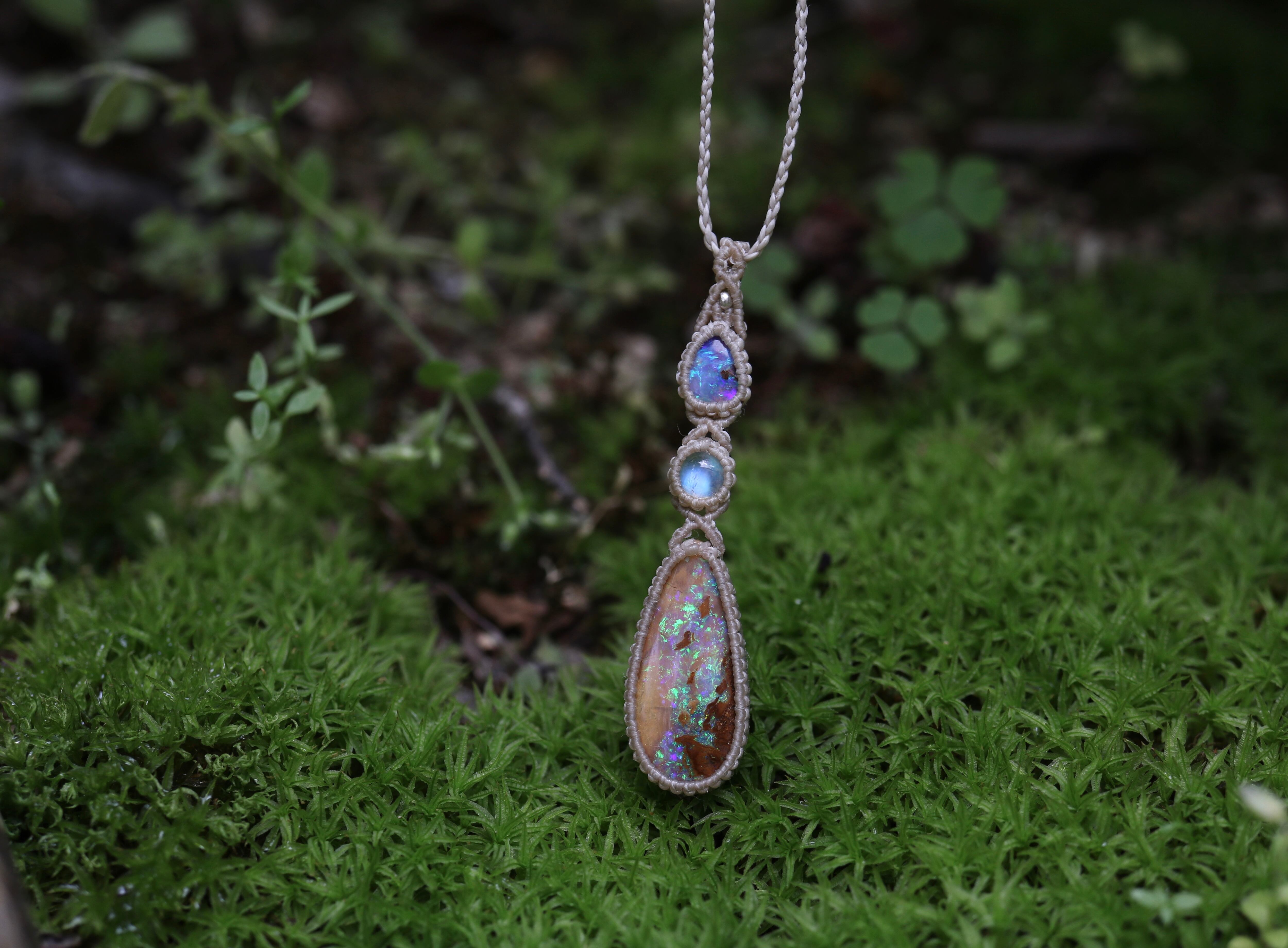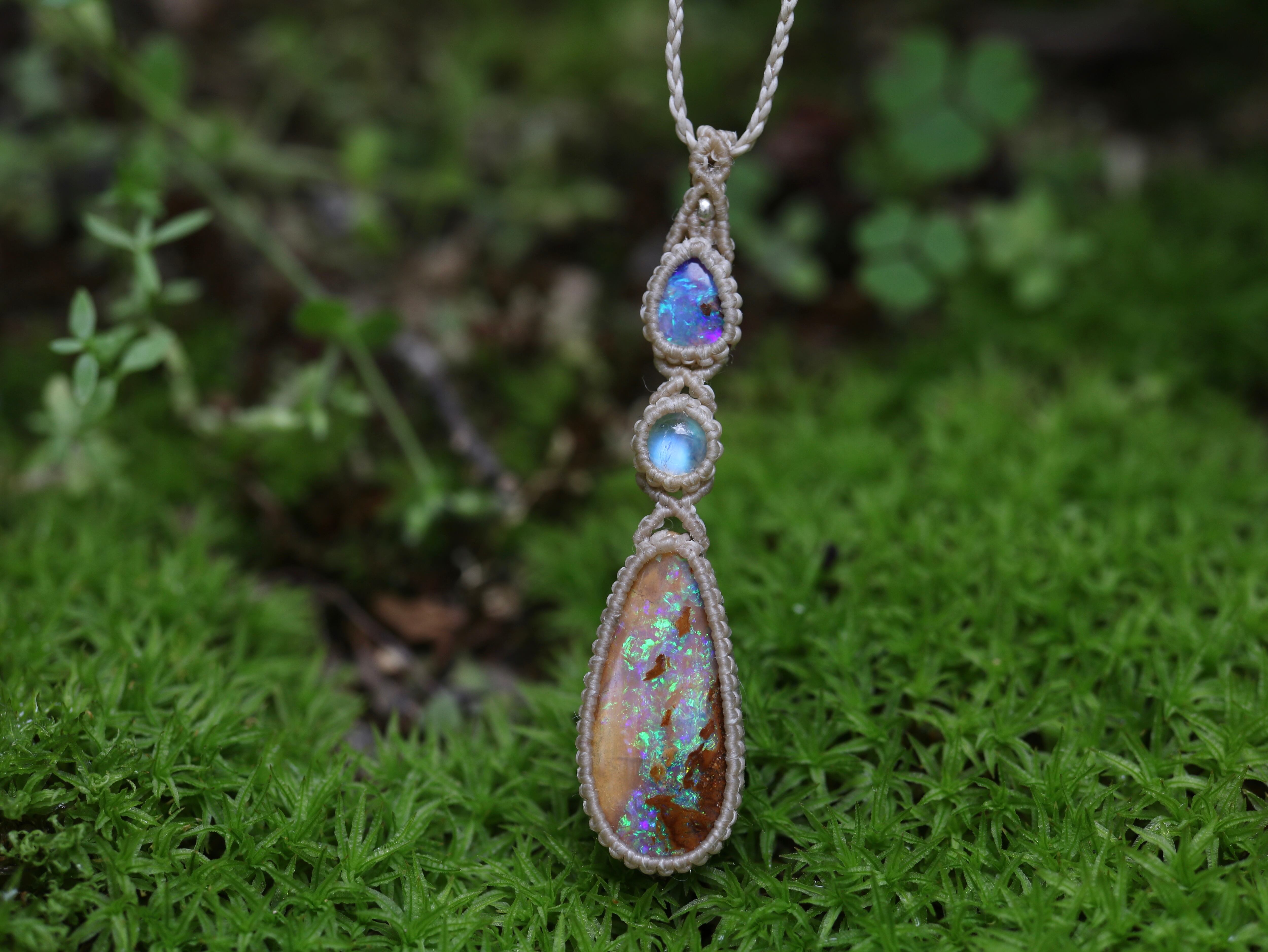 滴型、紫色のオーストラリア産オパールとムーンストーンを合わせて
