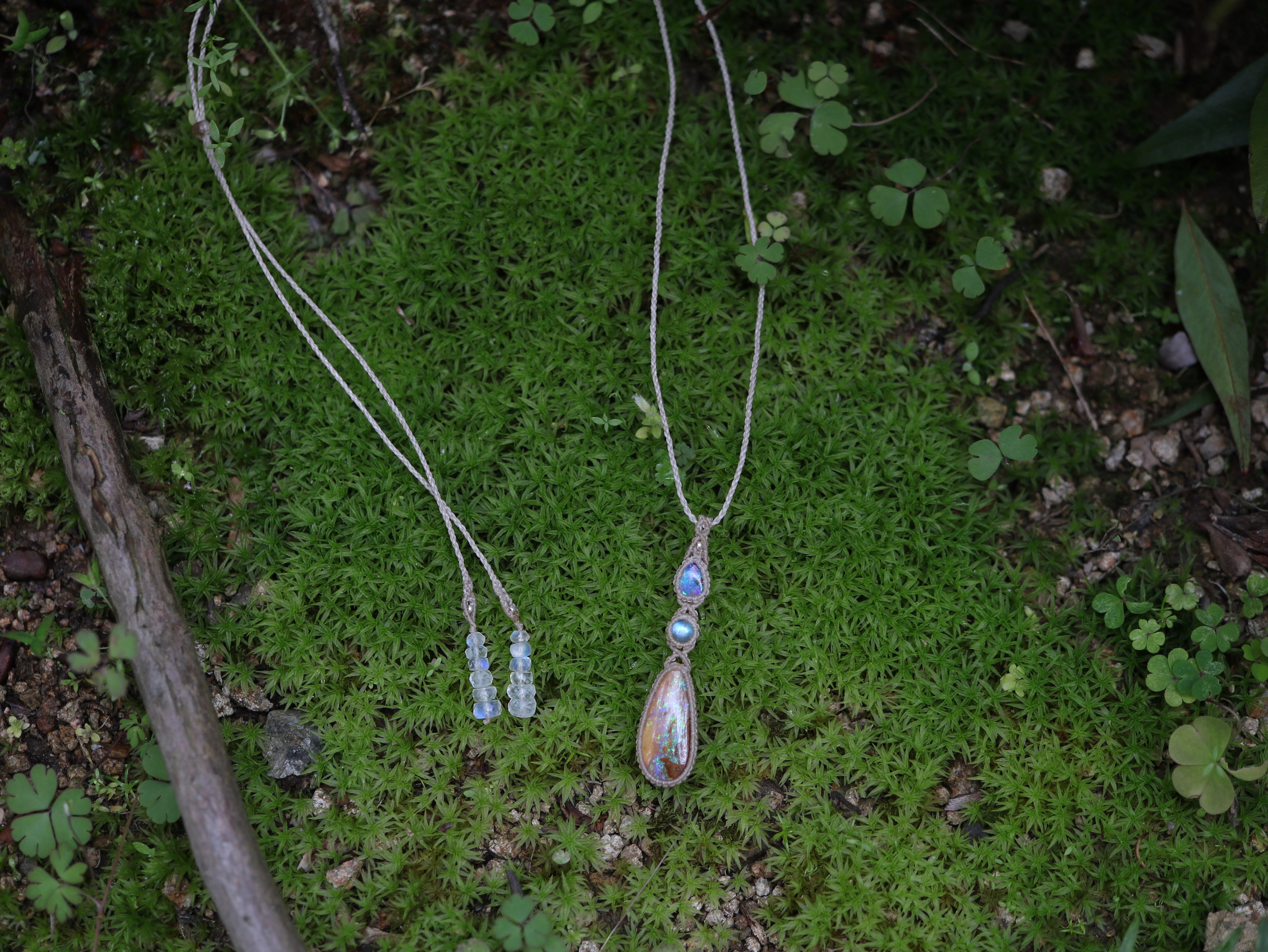 ※ 天然石を包むコードを始めトップ部分に使用したマクラメ編みコードは