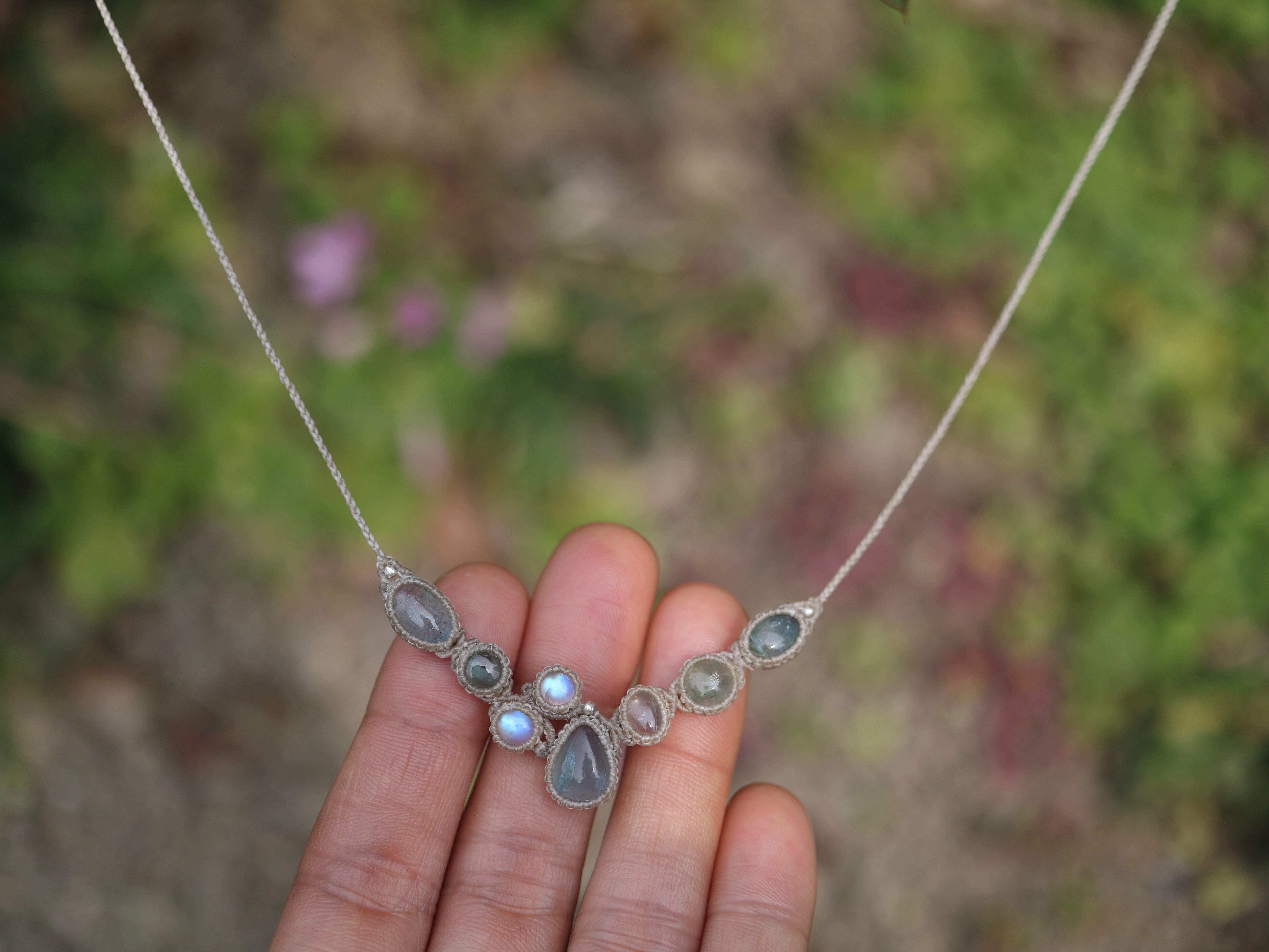 アクアマリン × グリーントルマリン × ムーンストーン ネックレス