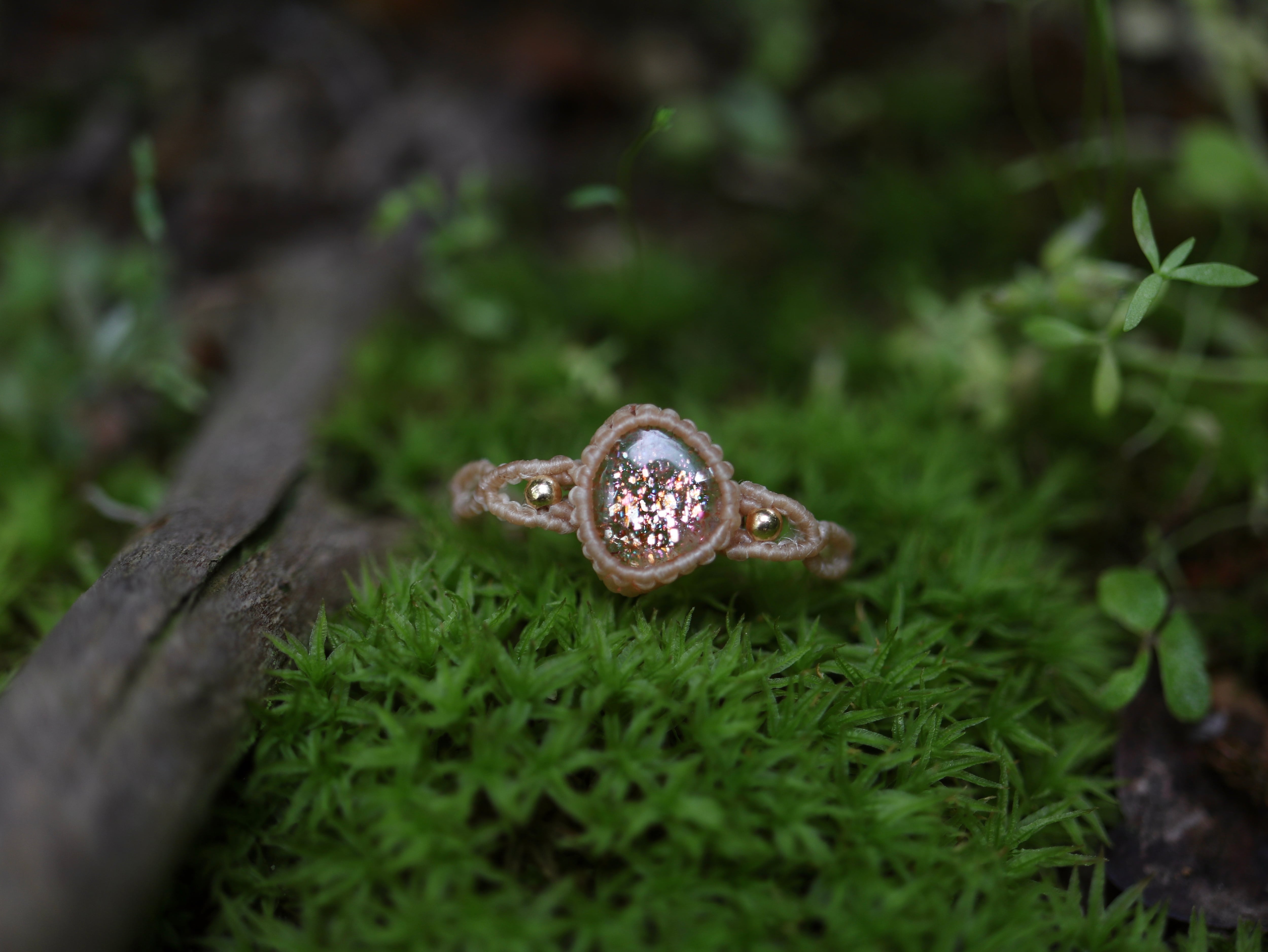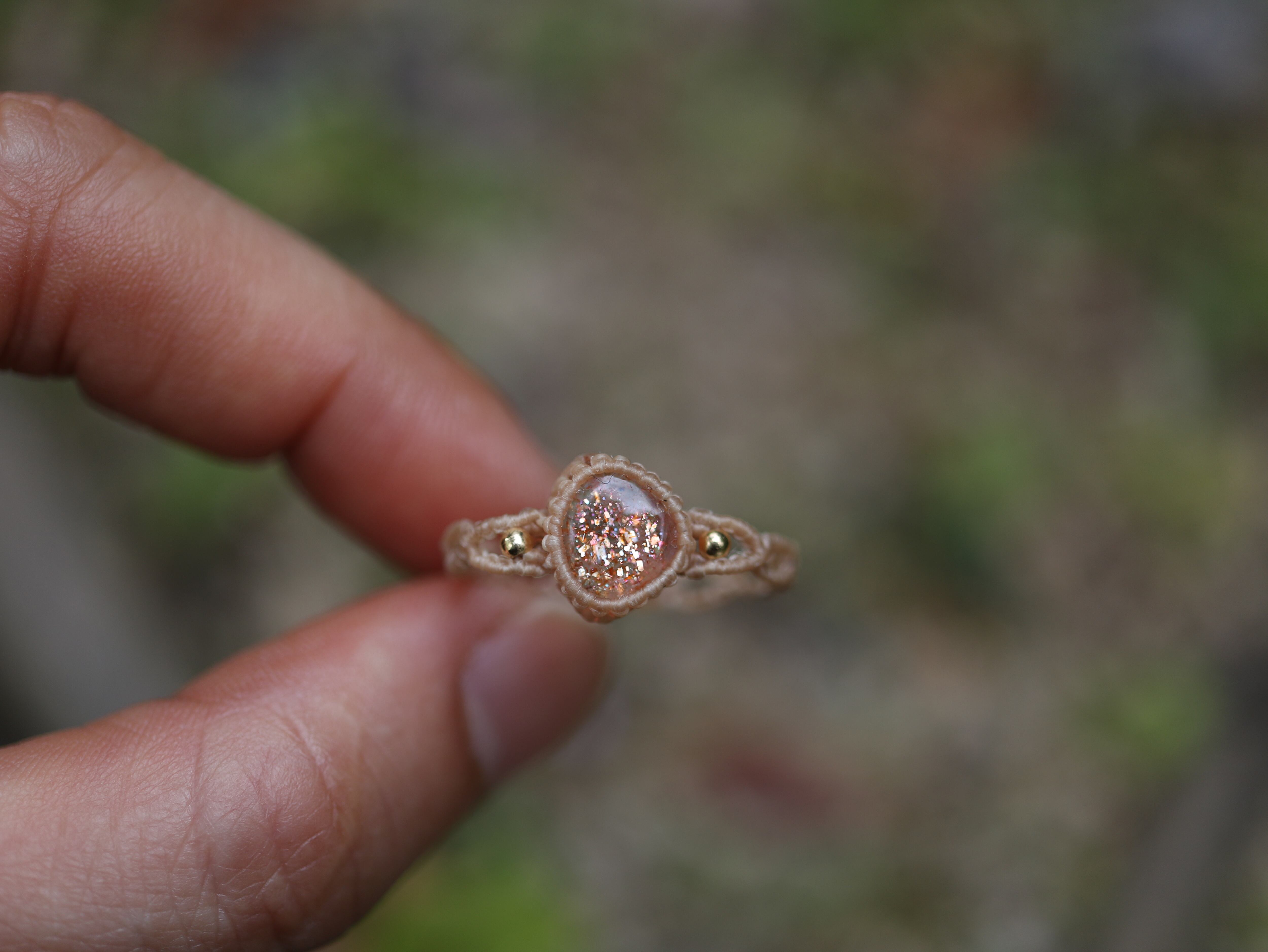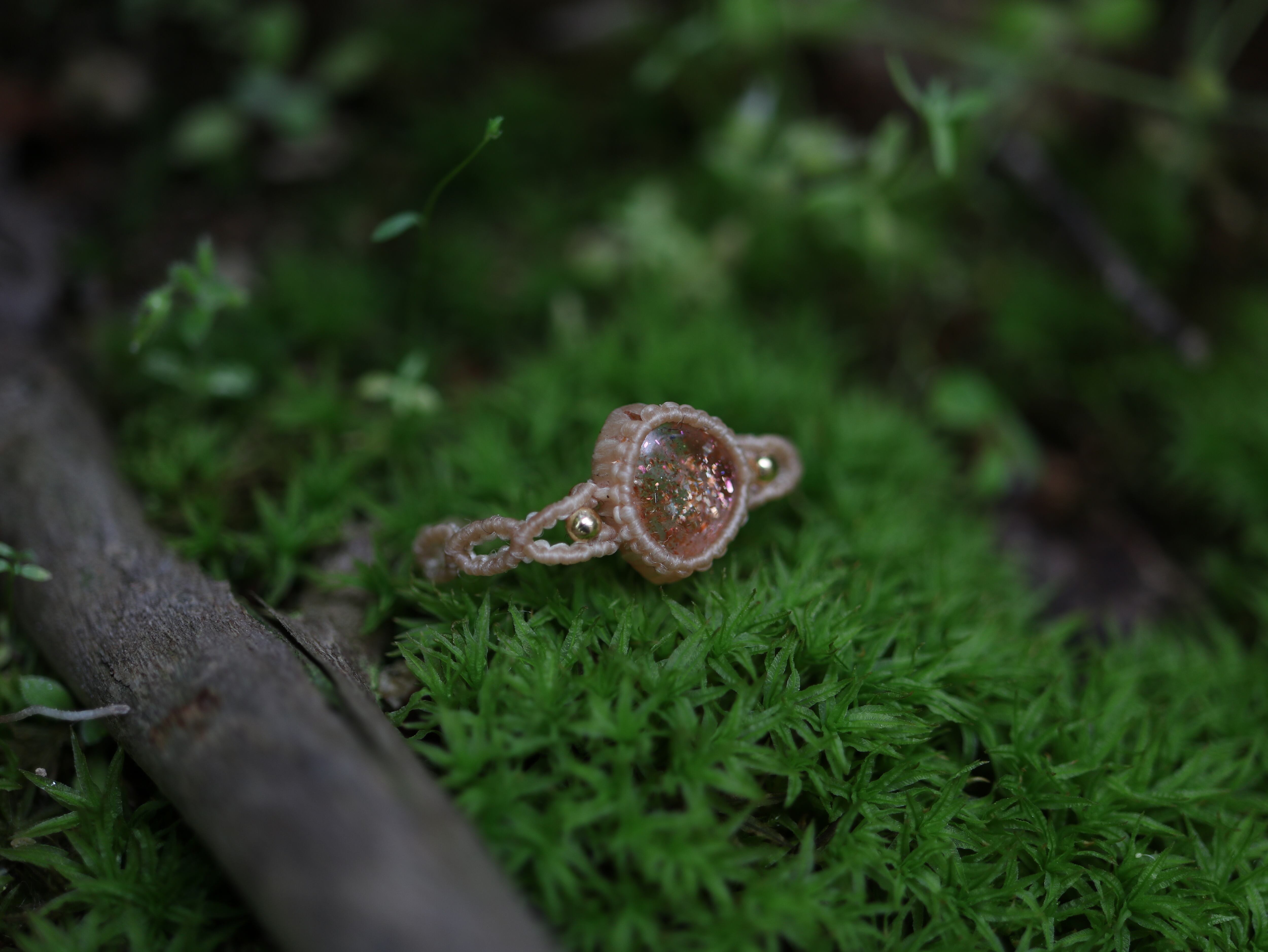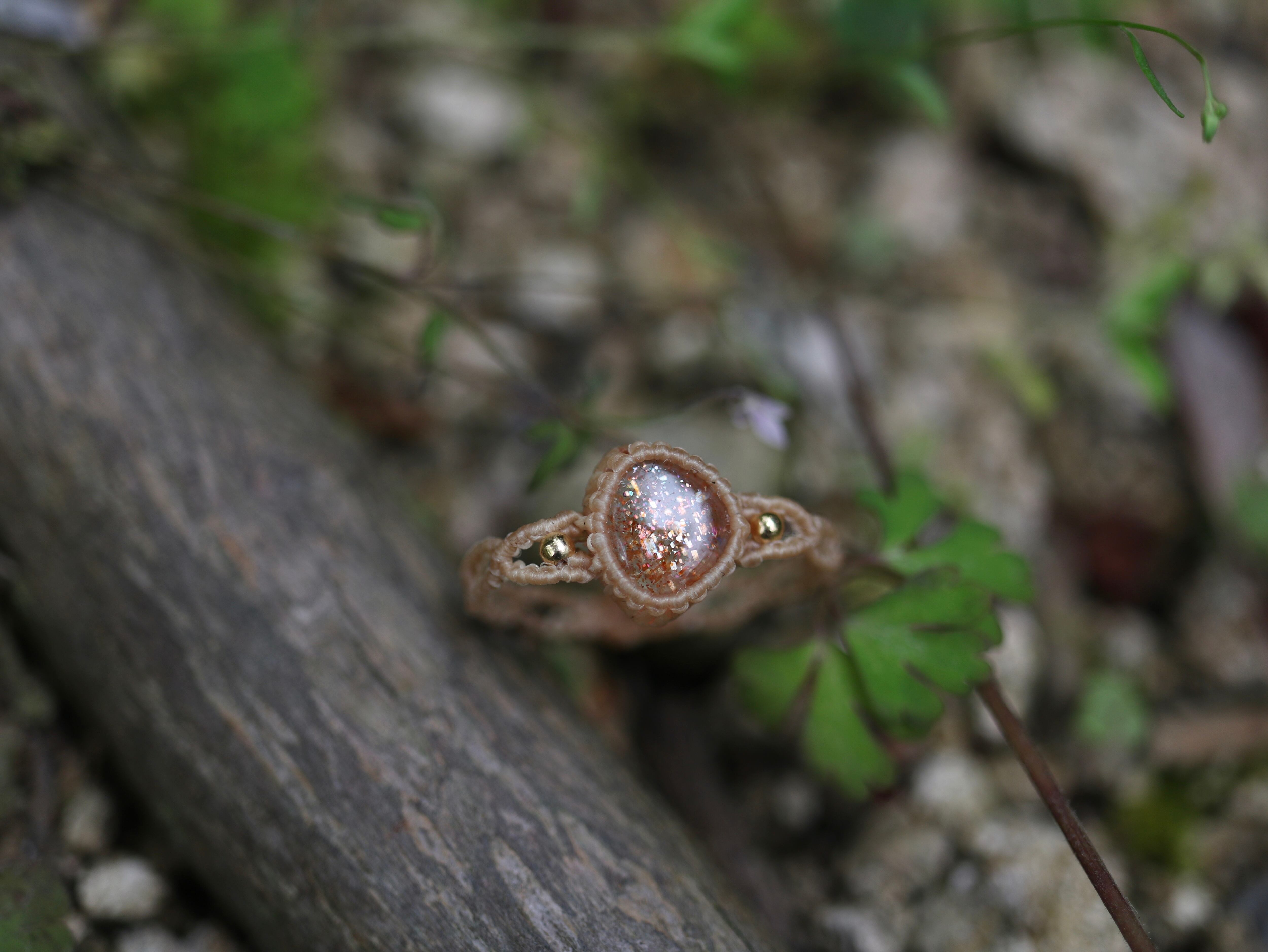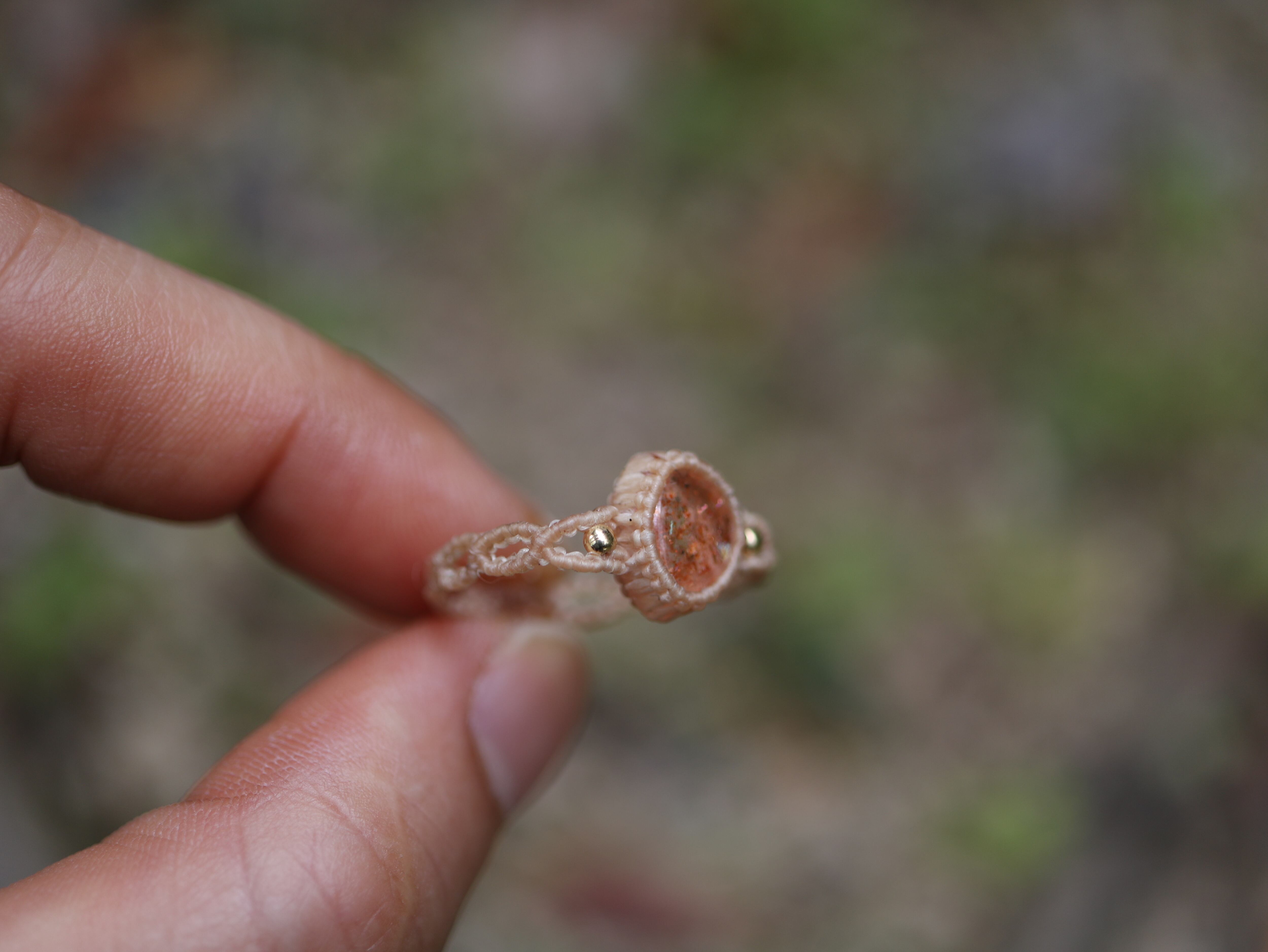 ※ 天然石を包むコードを始めトップ部分に使用したマクラメ編みコードは