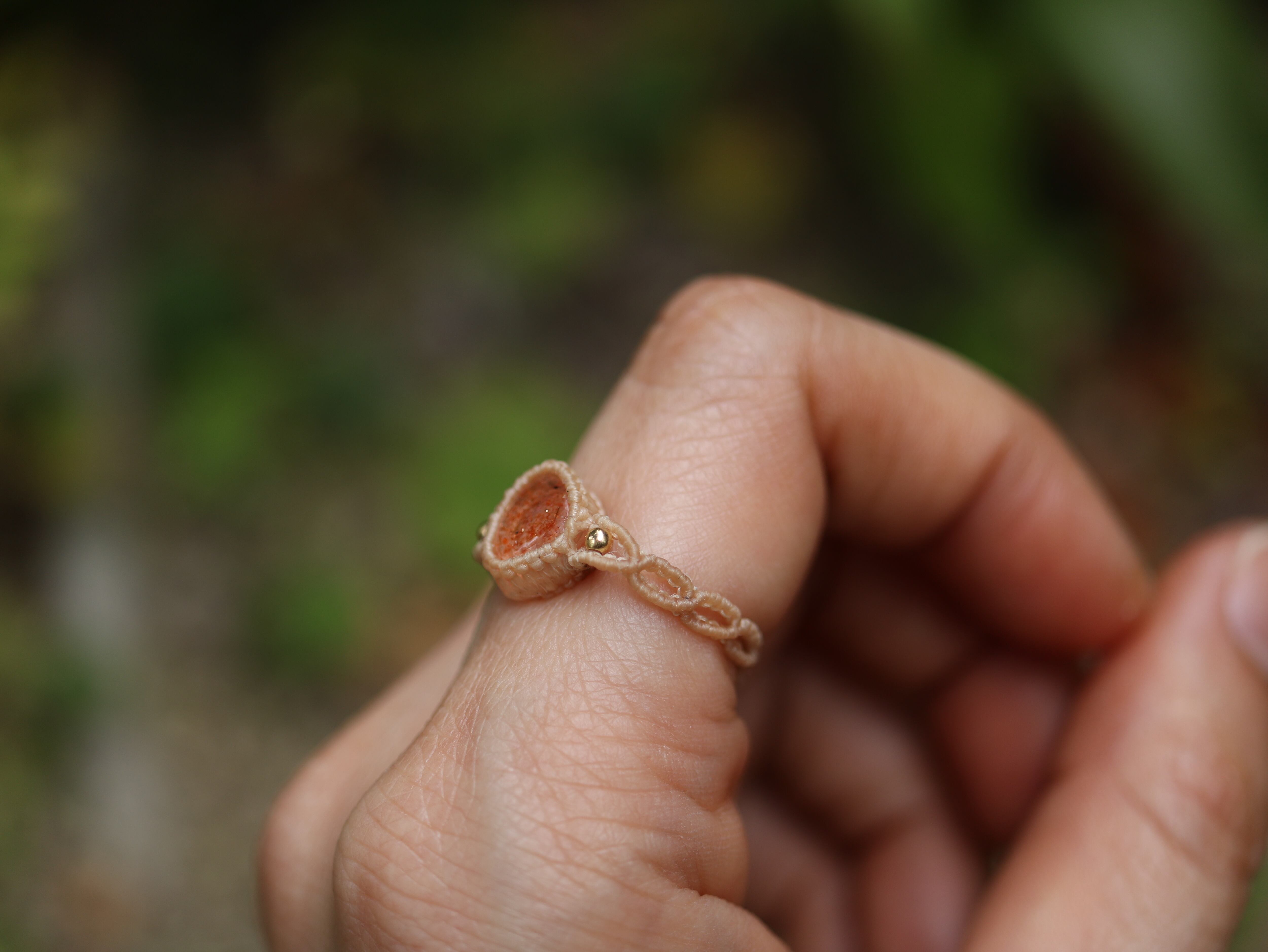 ※ マクラメ編みと紐の特性上、取り外しを繰り返すにつれサイズが 1、2 サイズほど大きくなる可能性があります