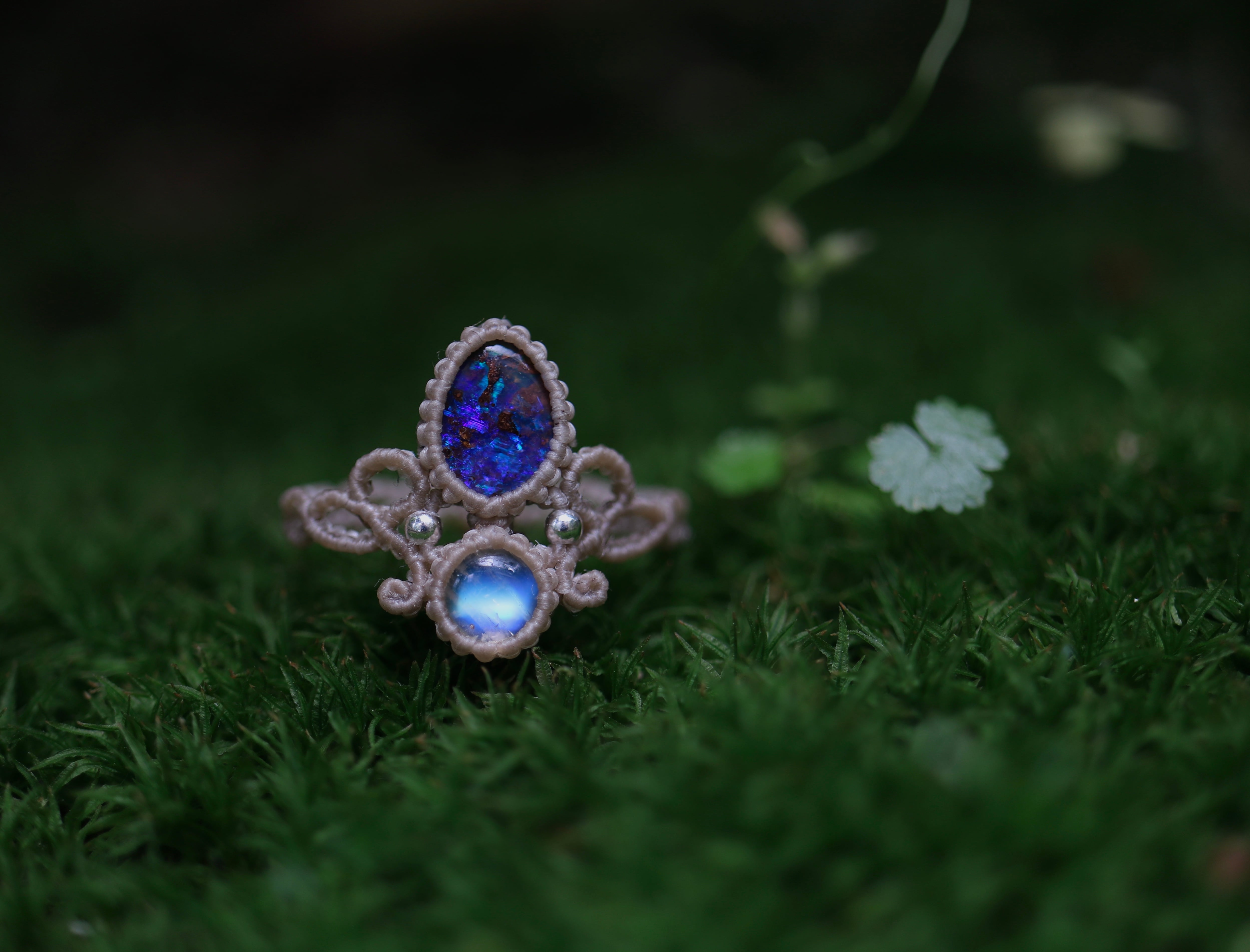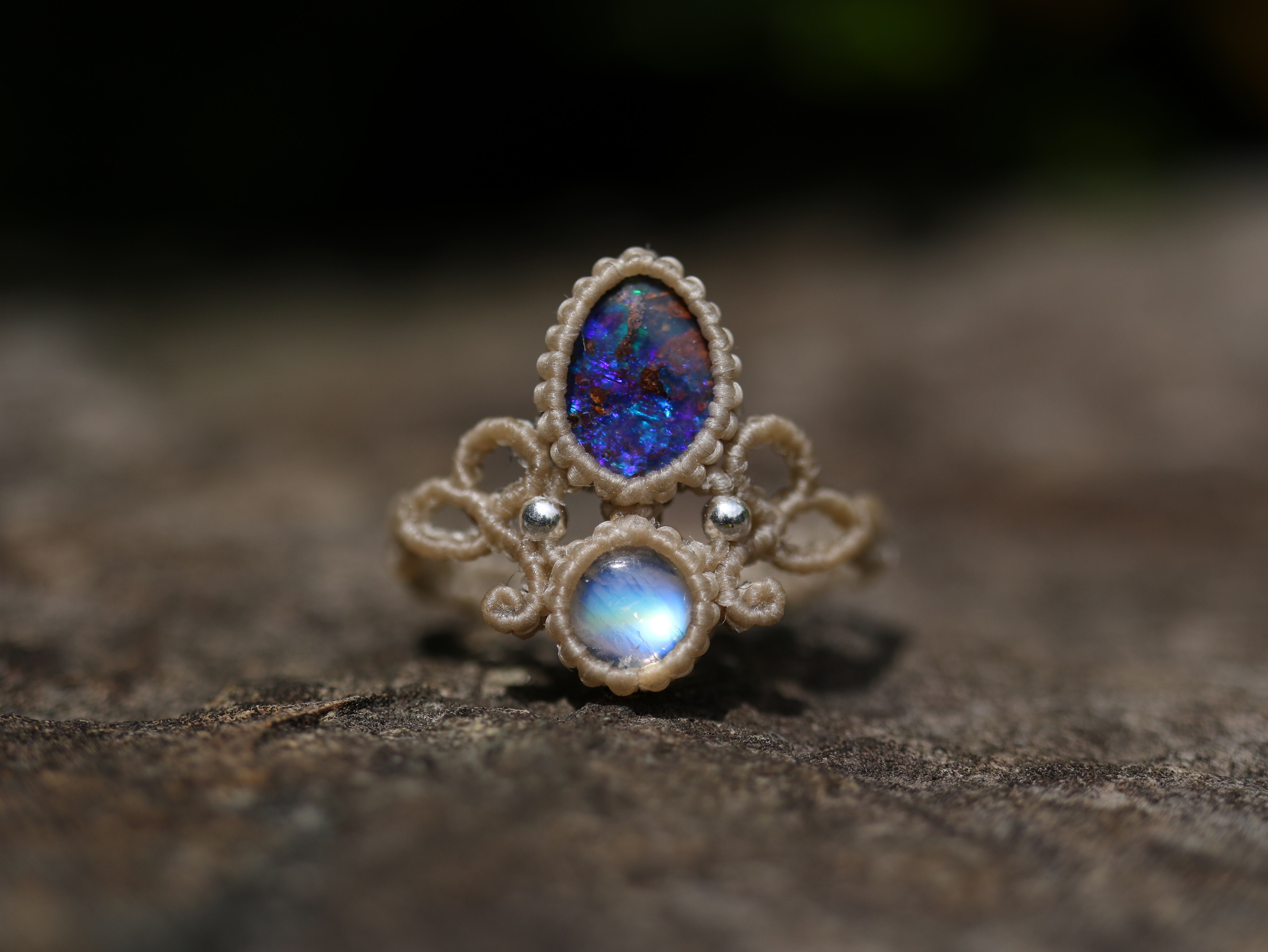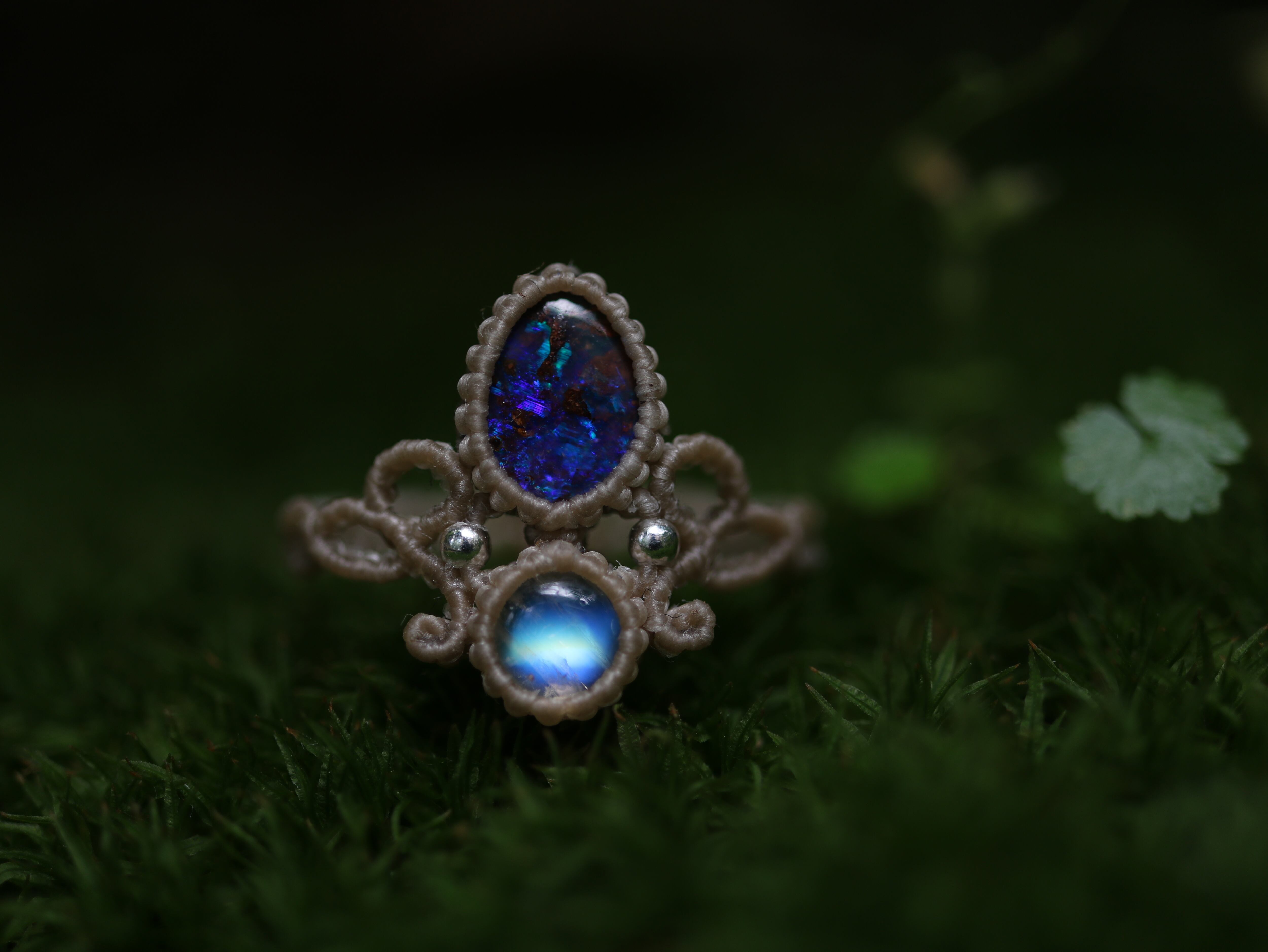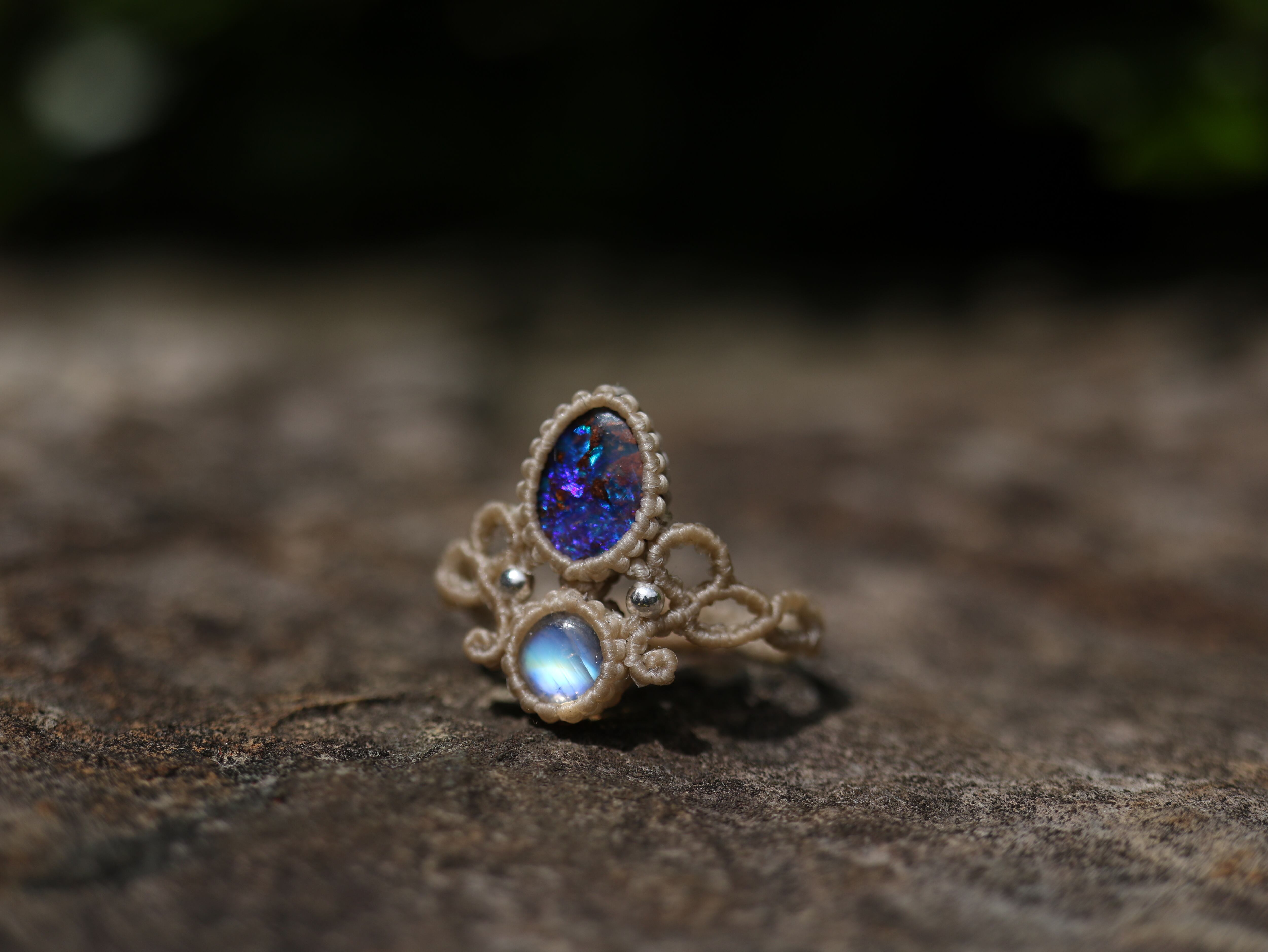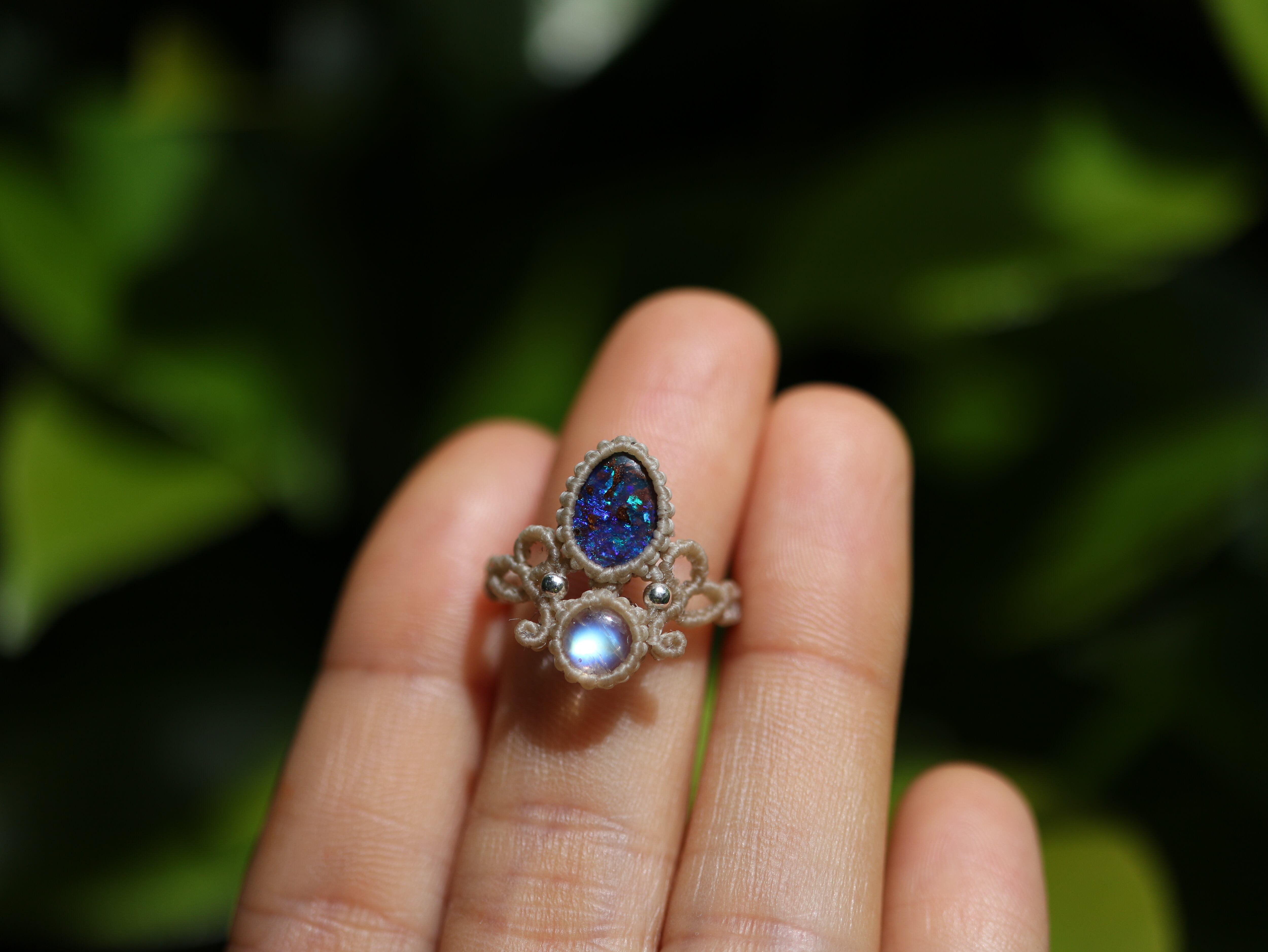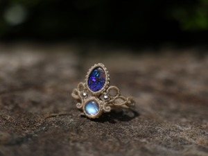 濃ブルーオパール × ムーンストーン 約 12 〜 13号 リング