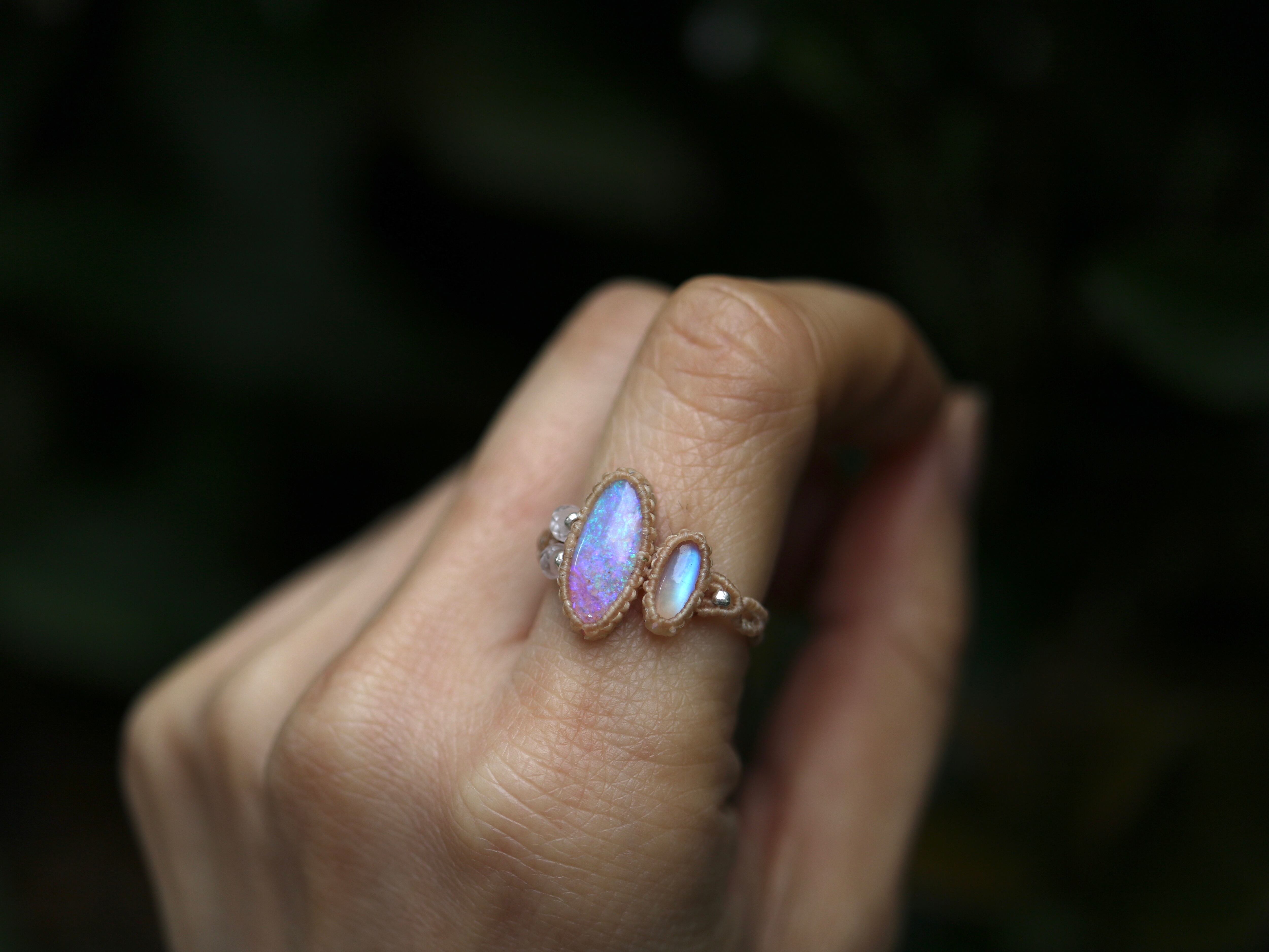 中でもこちらのオパールはオレンジピンク系の砂岩が裏面に残っているため