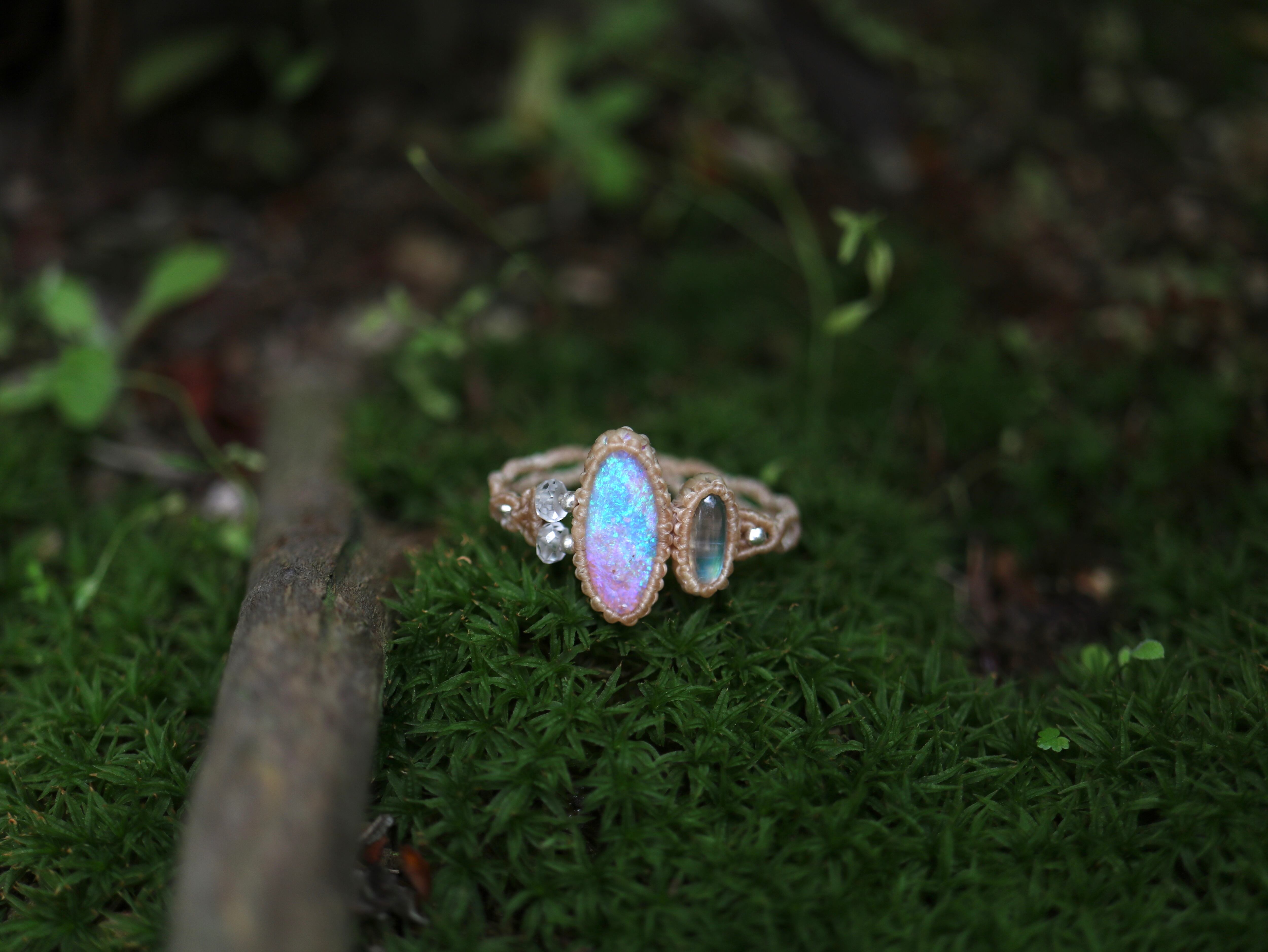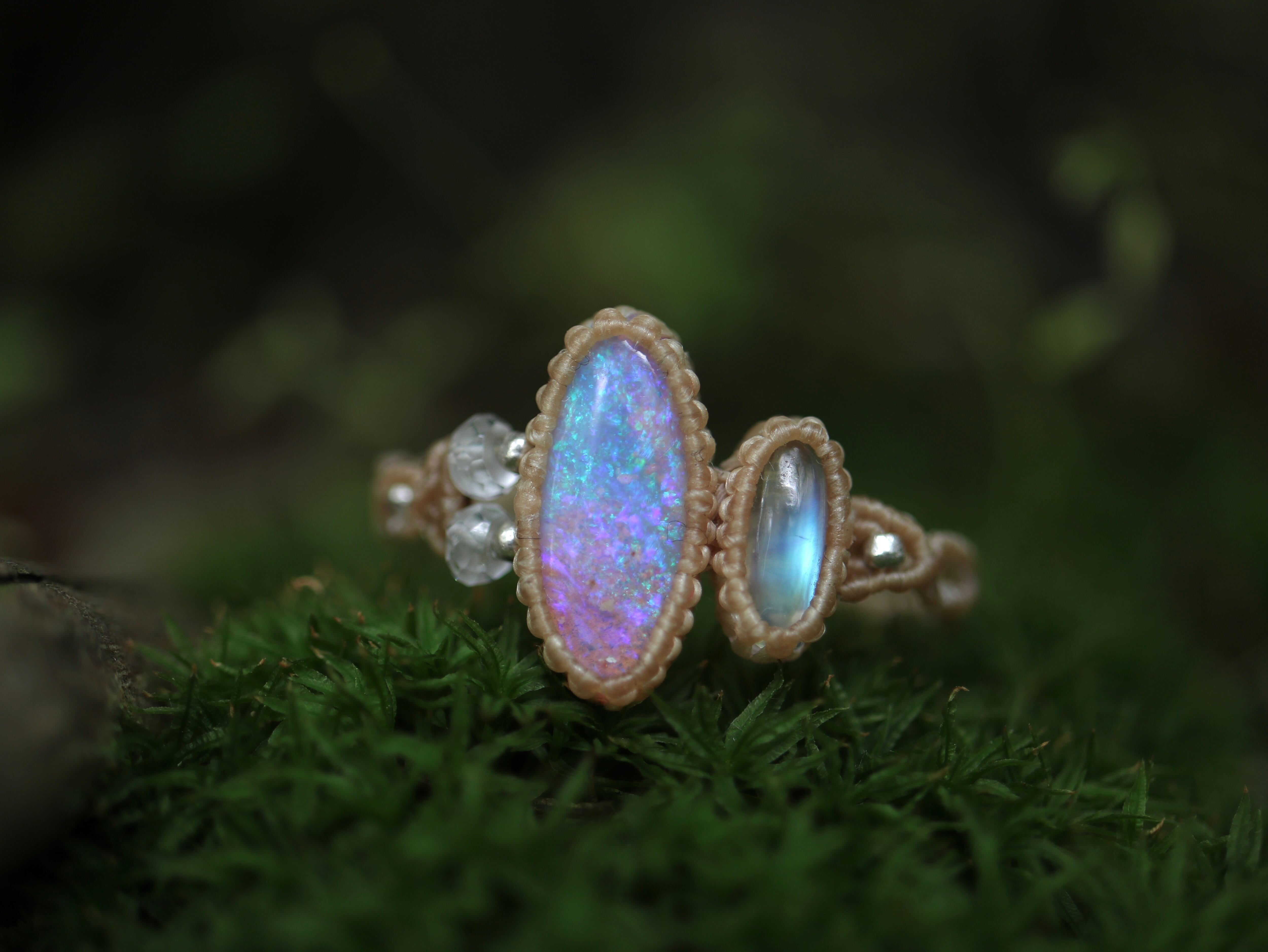 ライトブルーの小さな遊色が煌めき独自の世界観を放つ