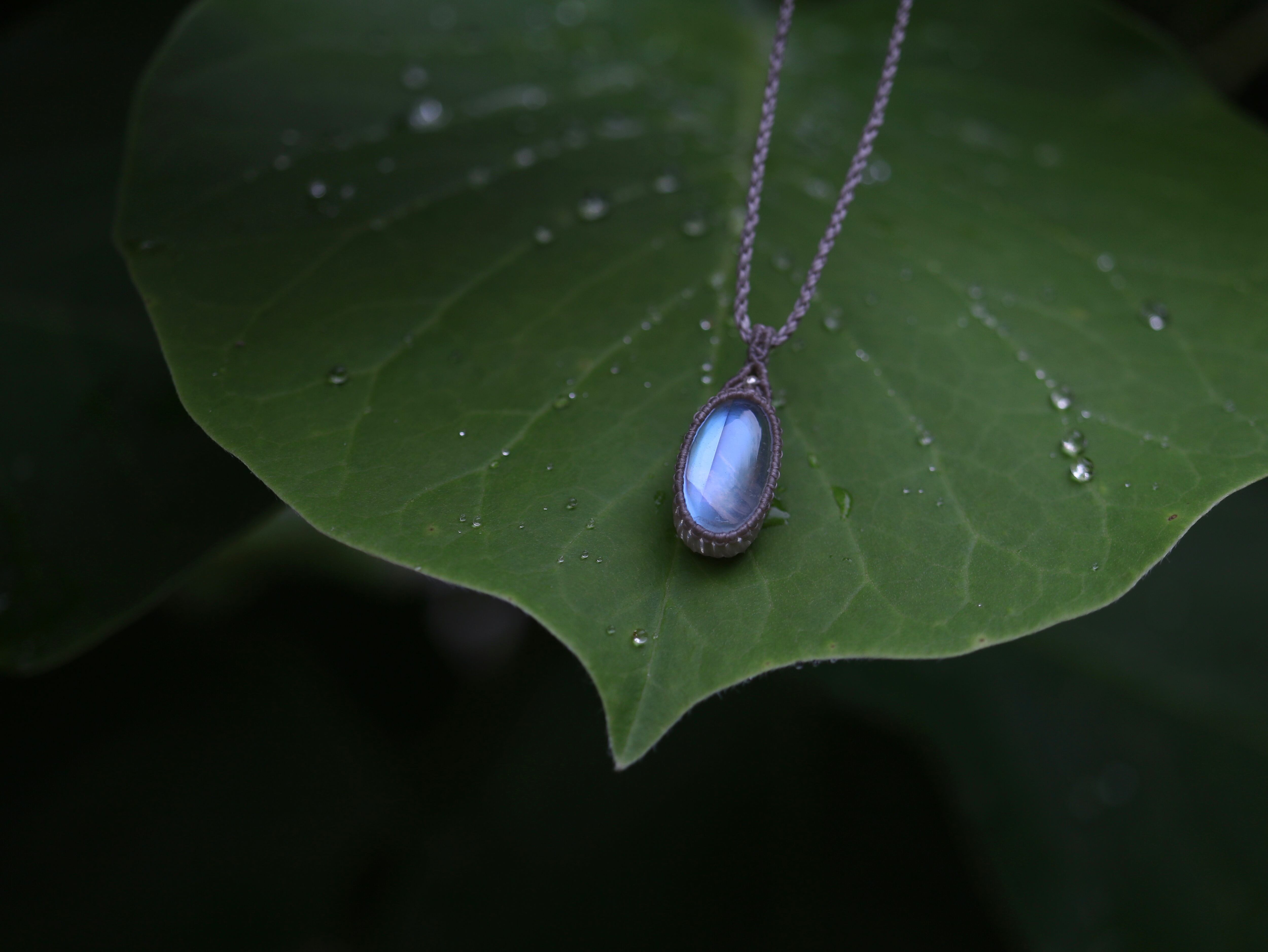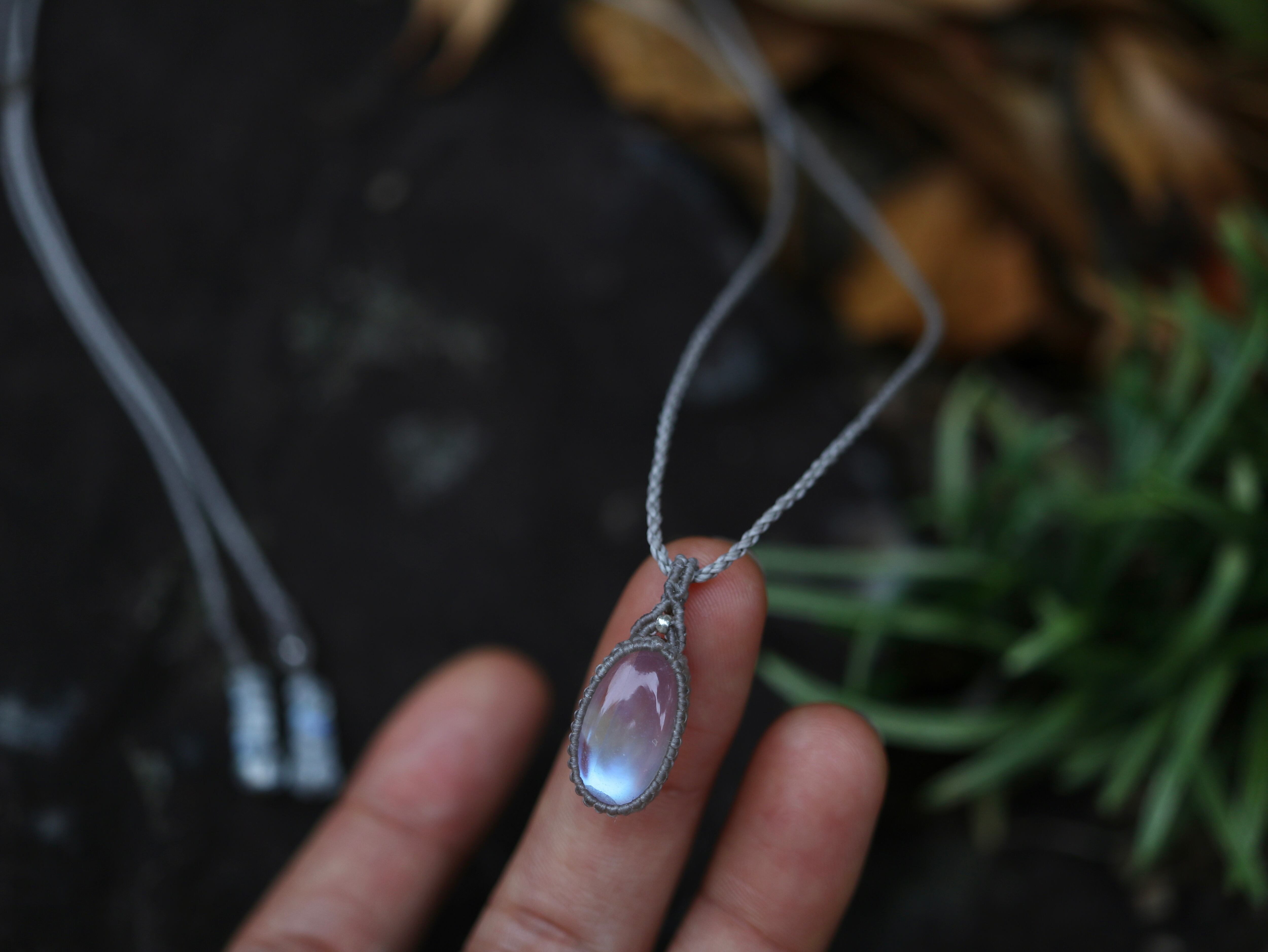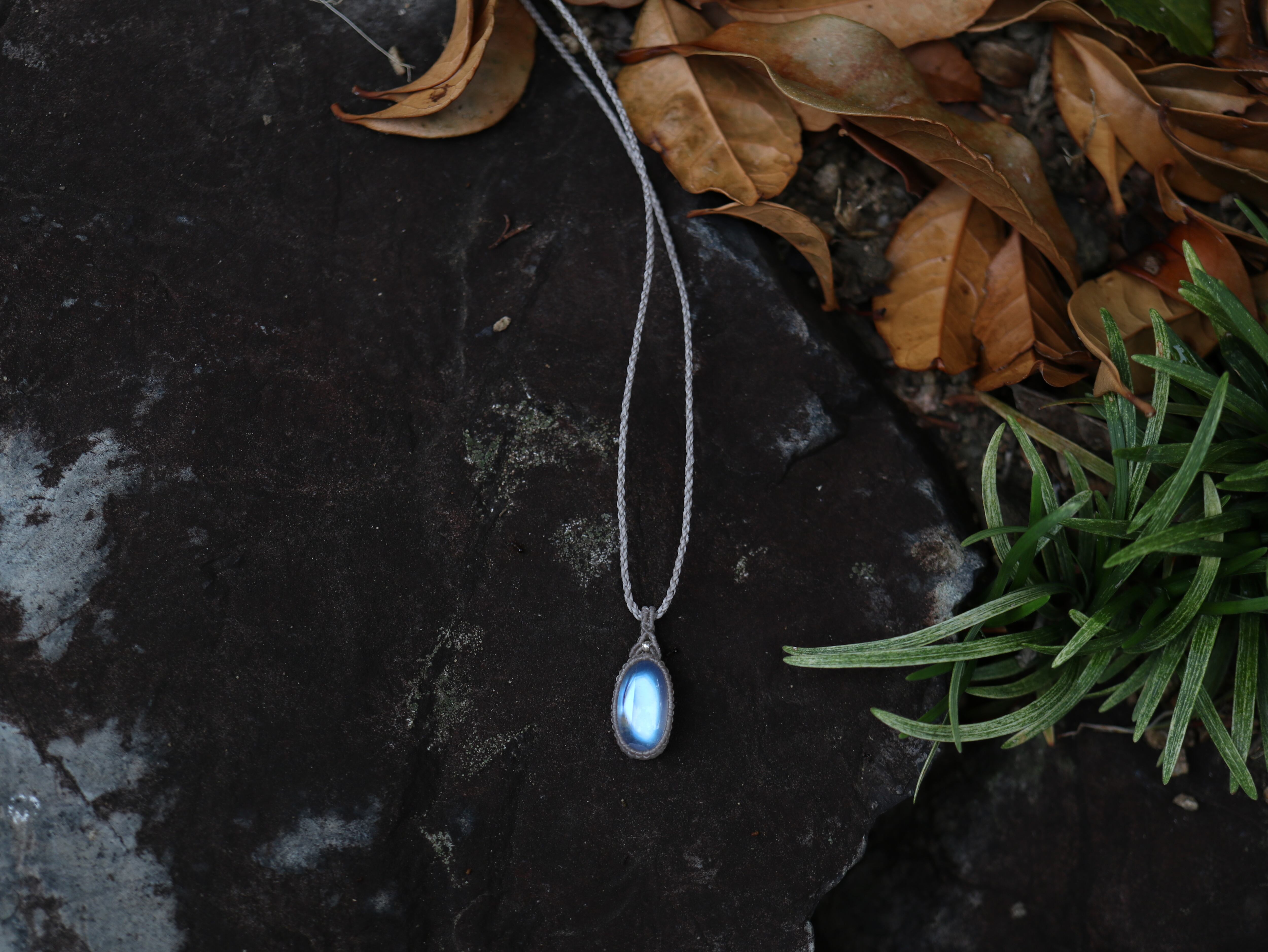※ 天然石を包むコードを始めトップ部分に使用したマクラメ編みコードは
