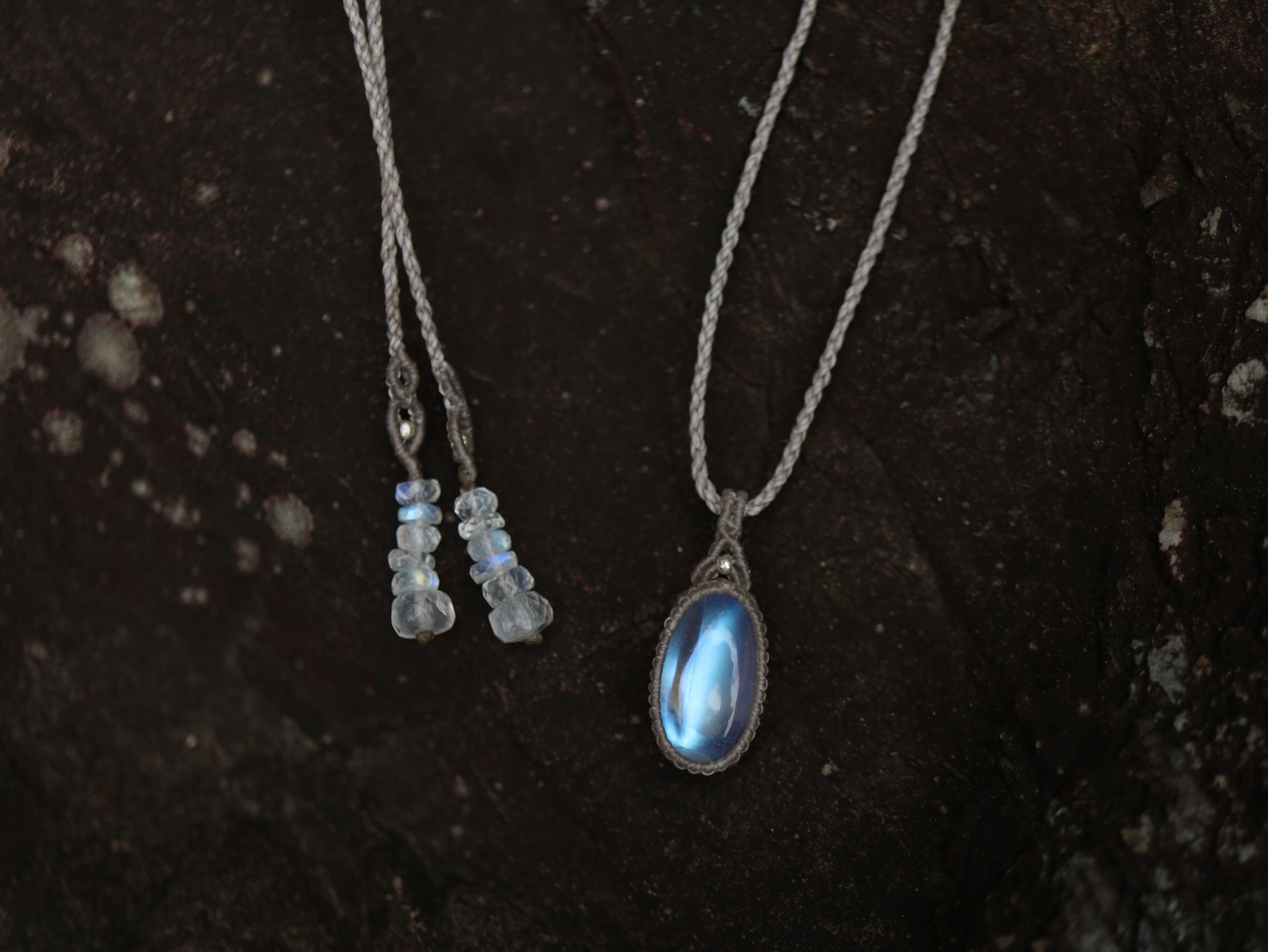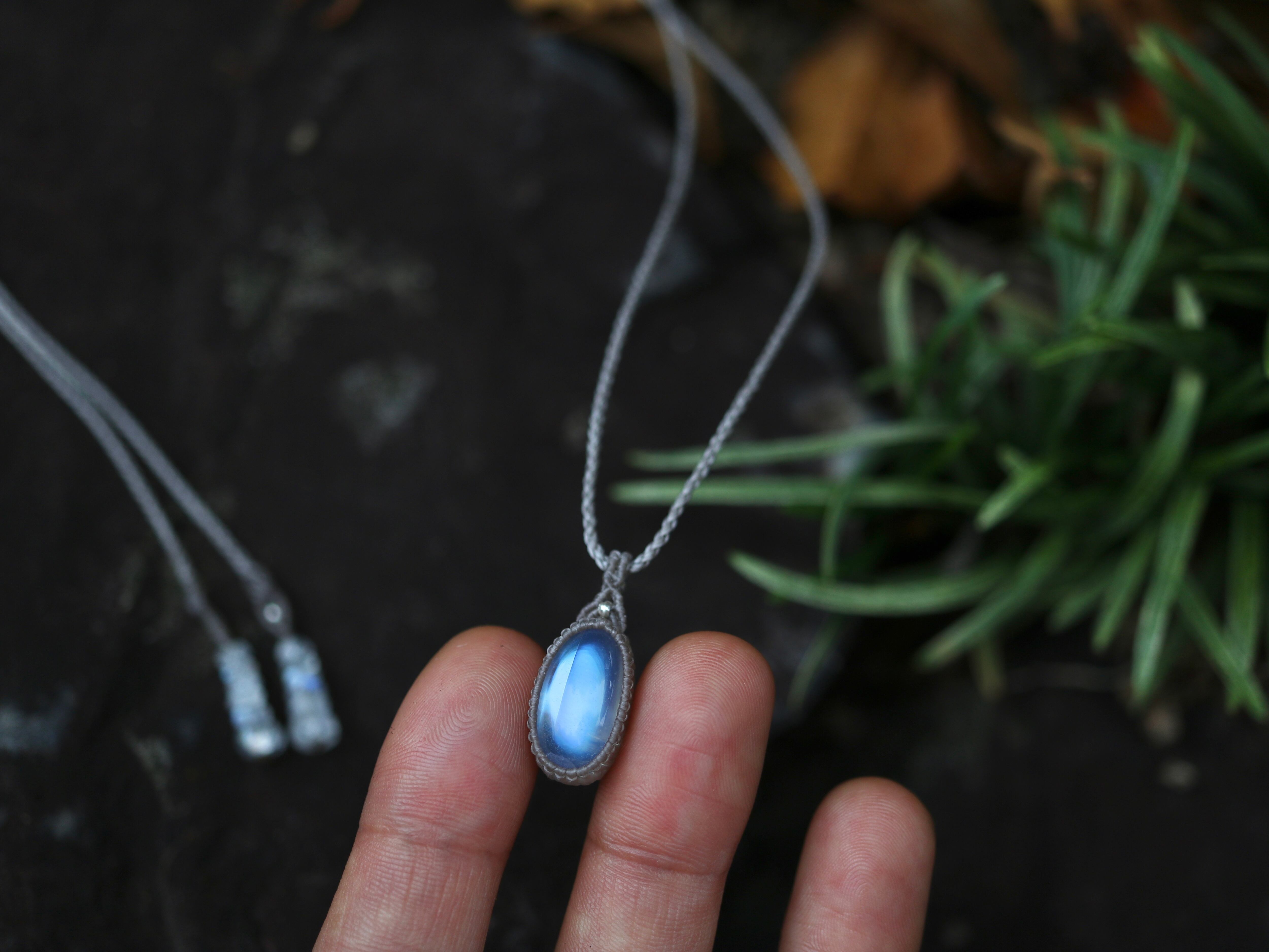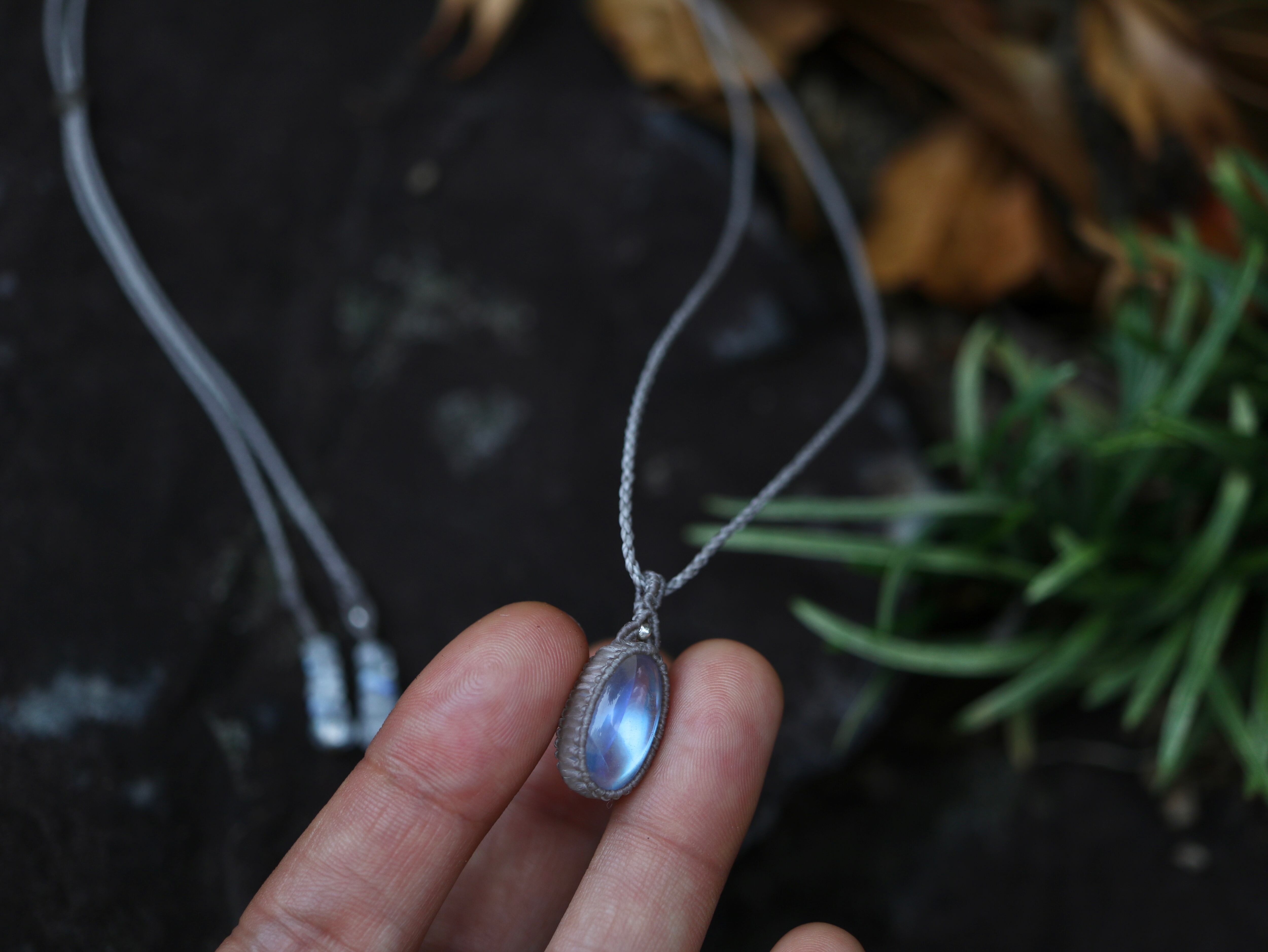 ※ 天然石を包むコードを始めトップ部分に使用したマクラメ編みコードは
