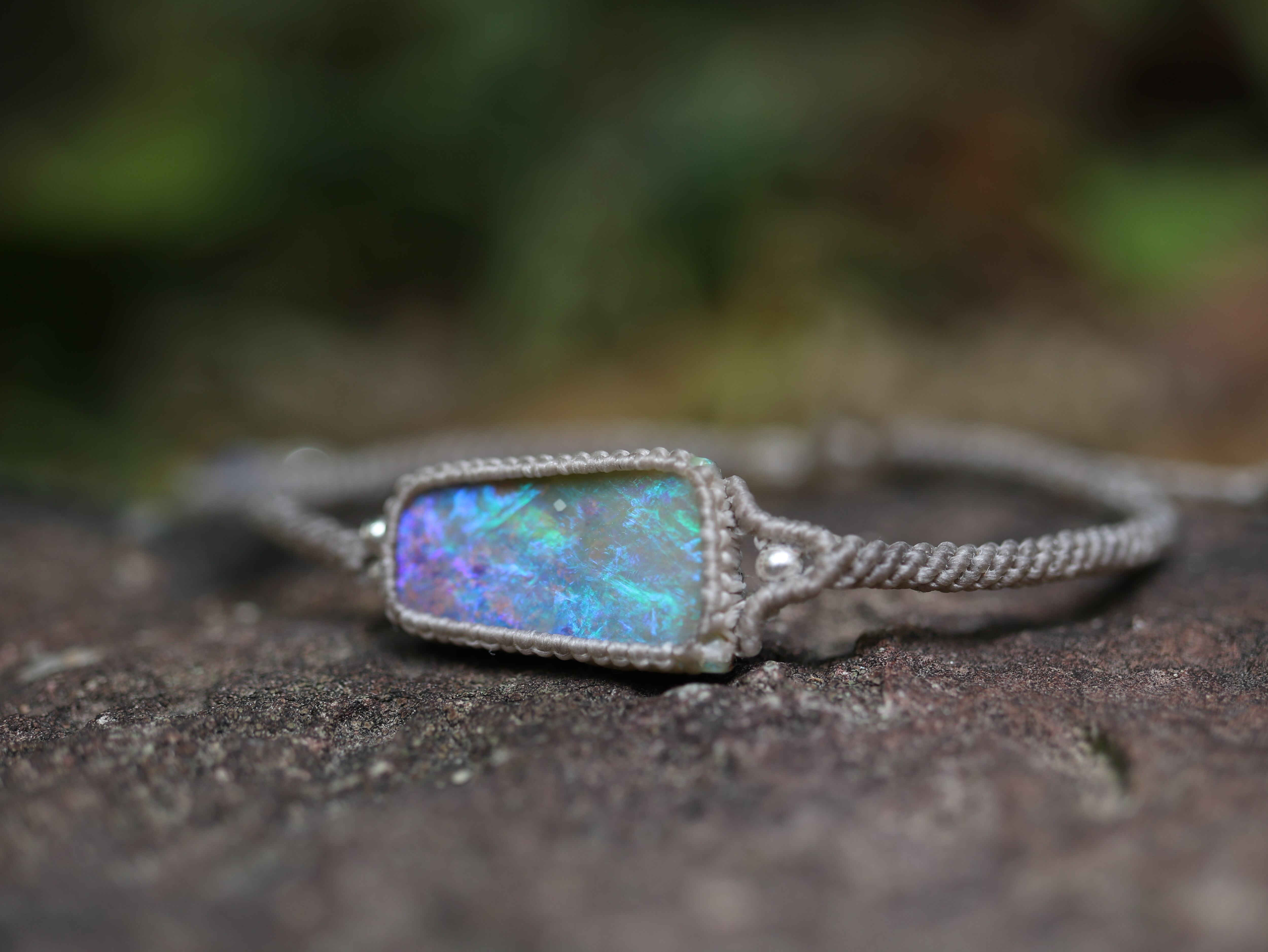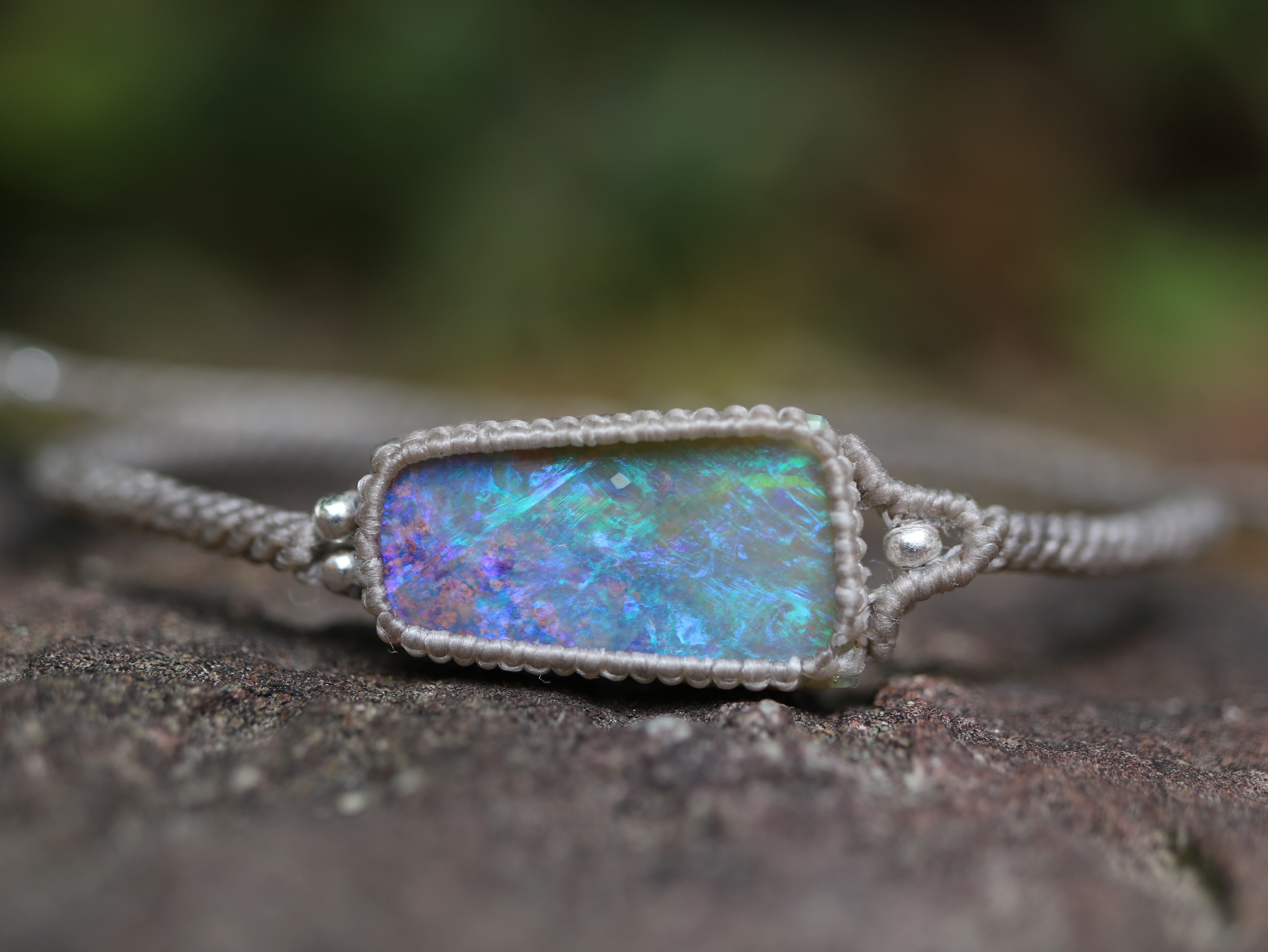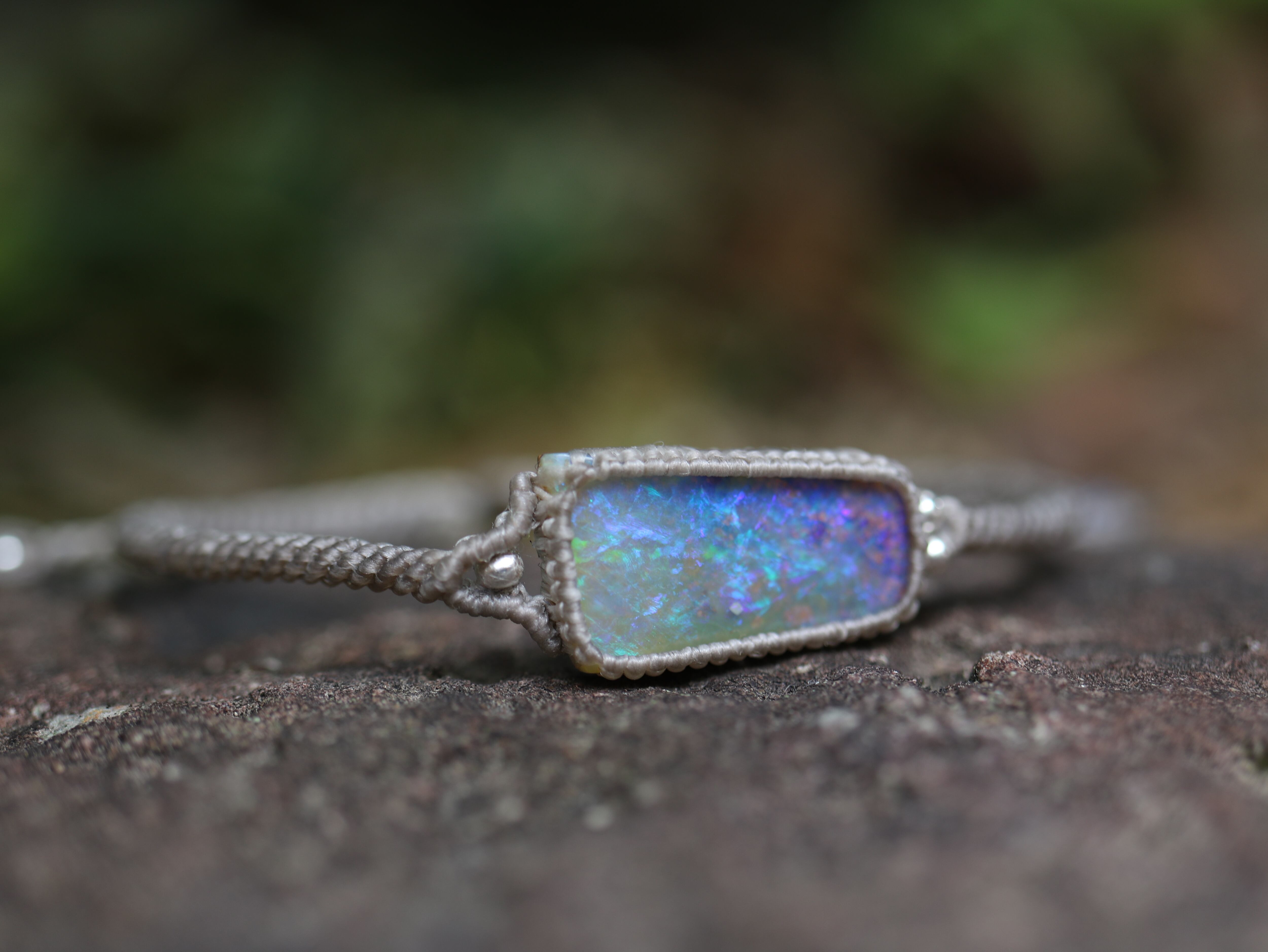 紫からグレー黄緑のグラデーションのオパールが広がる