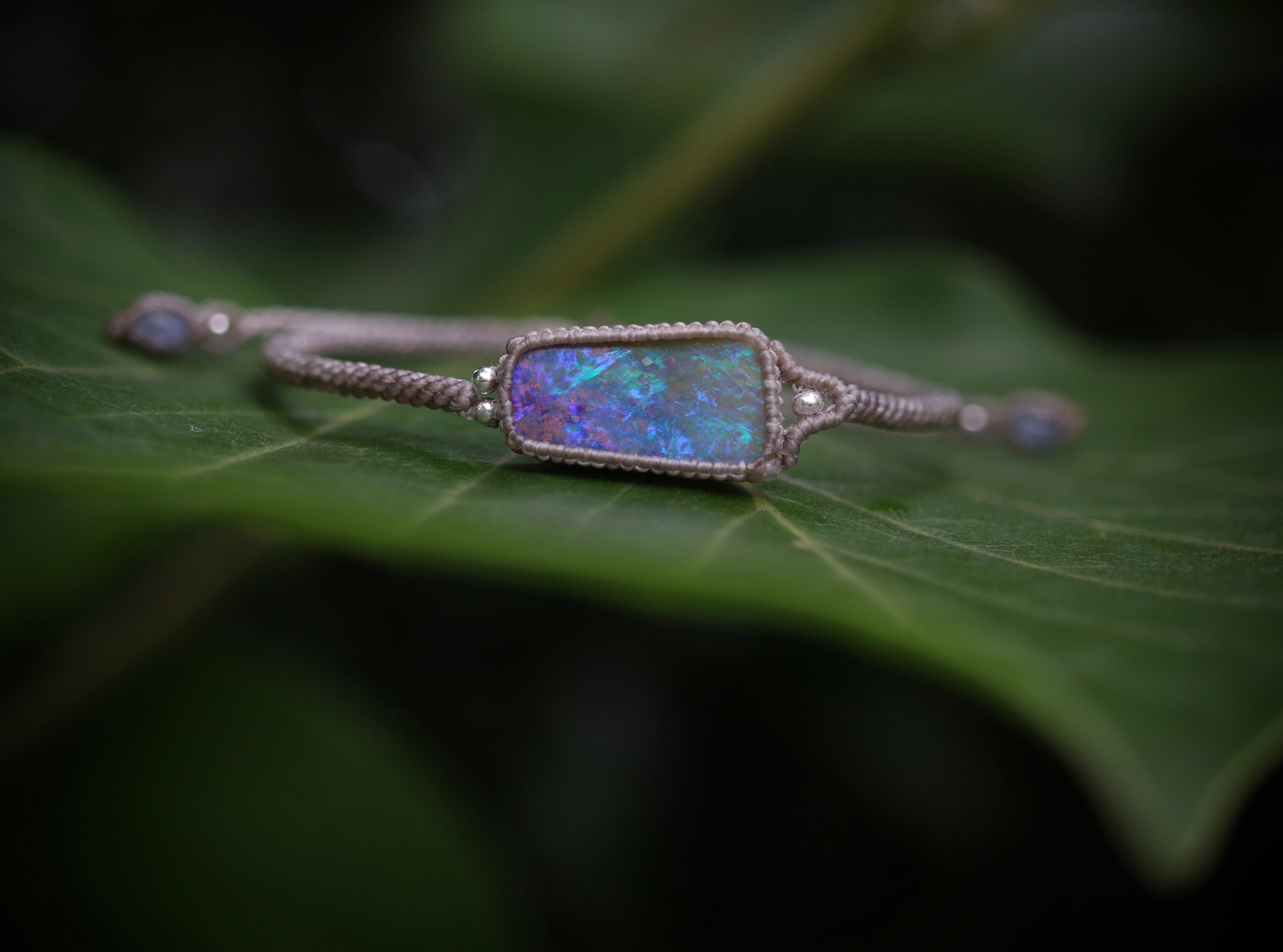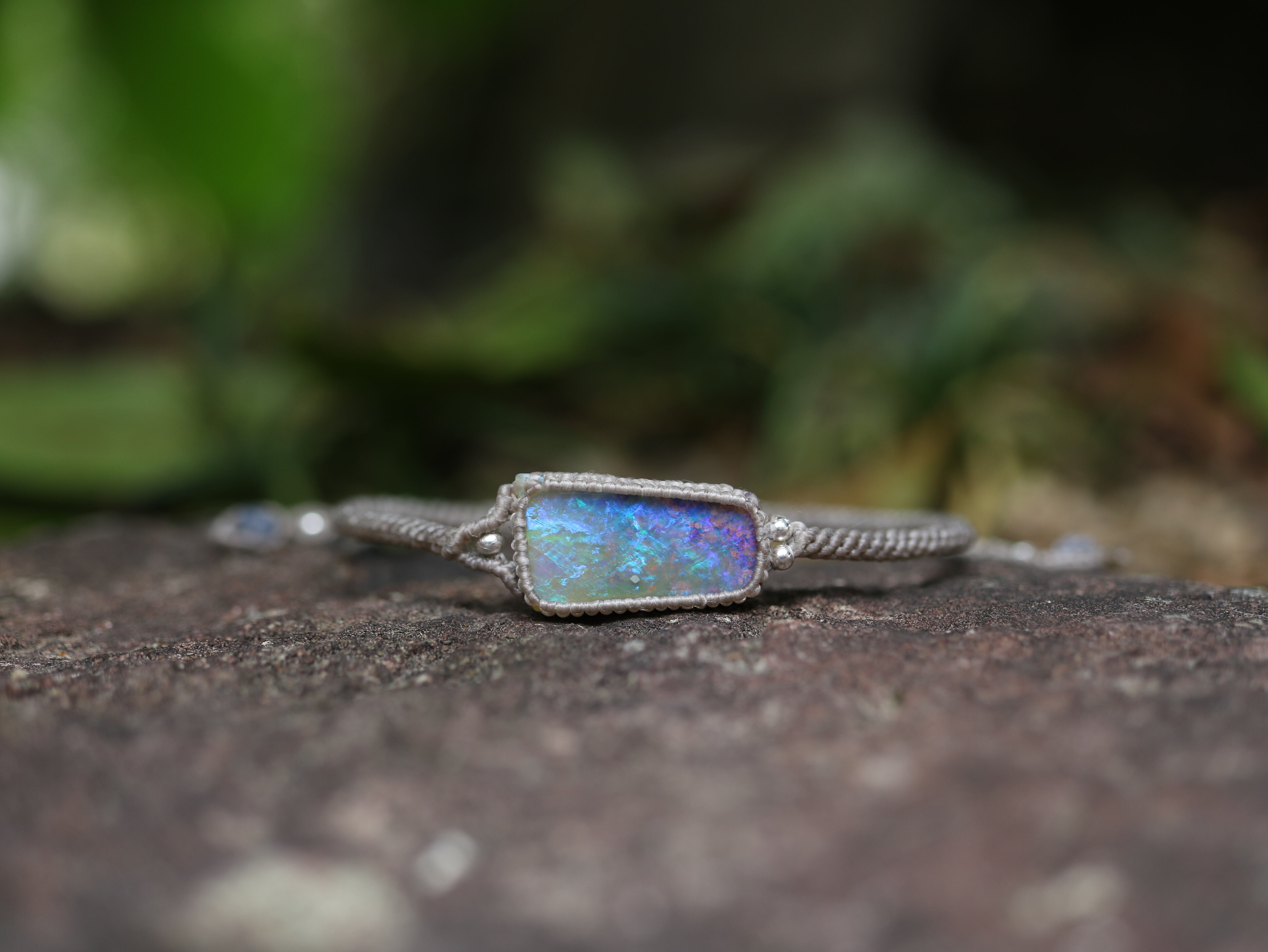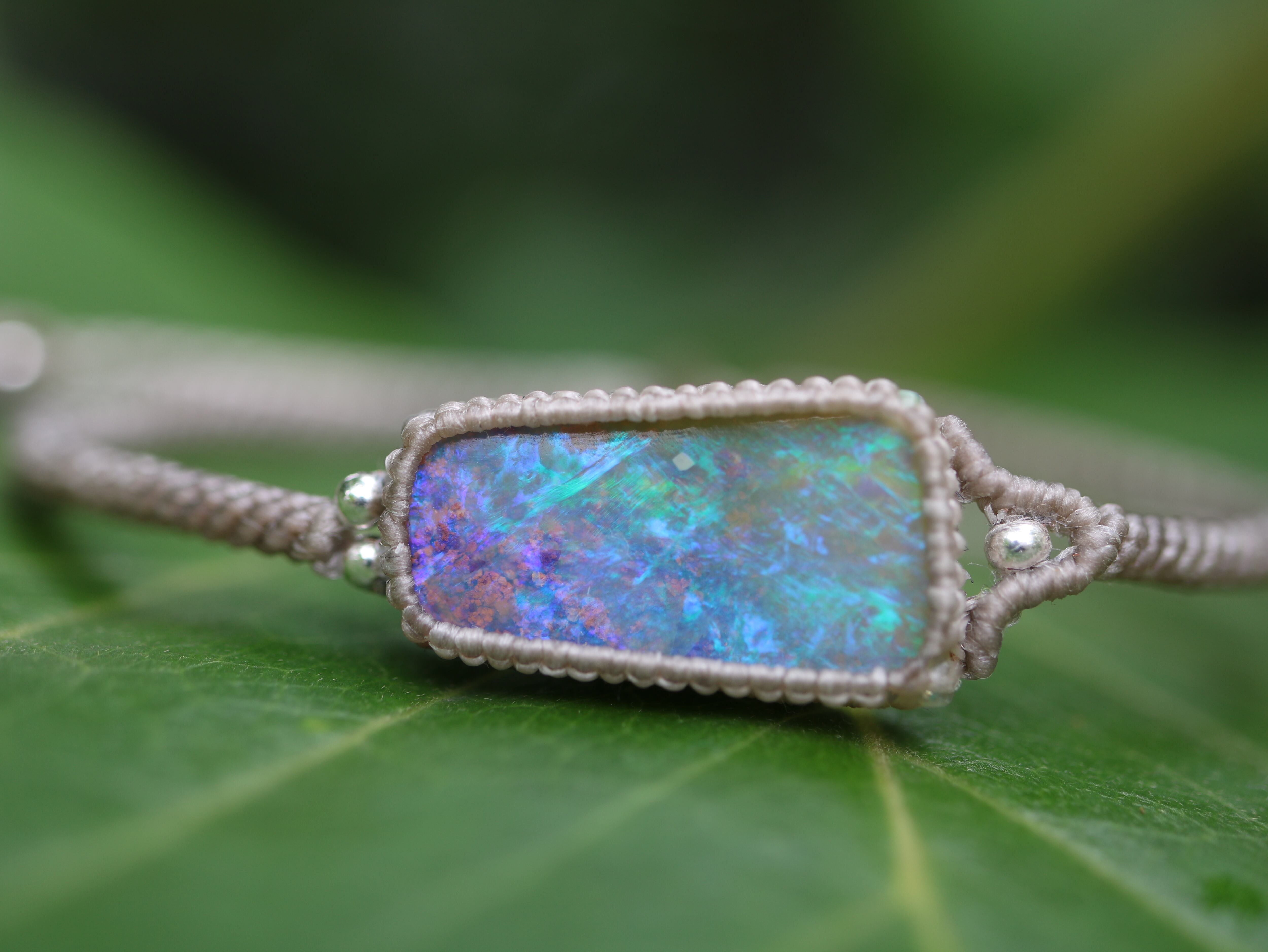 紫からグレー黄緑のグラデーションのオパールが広がる