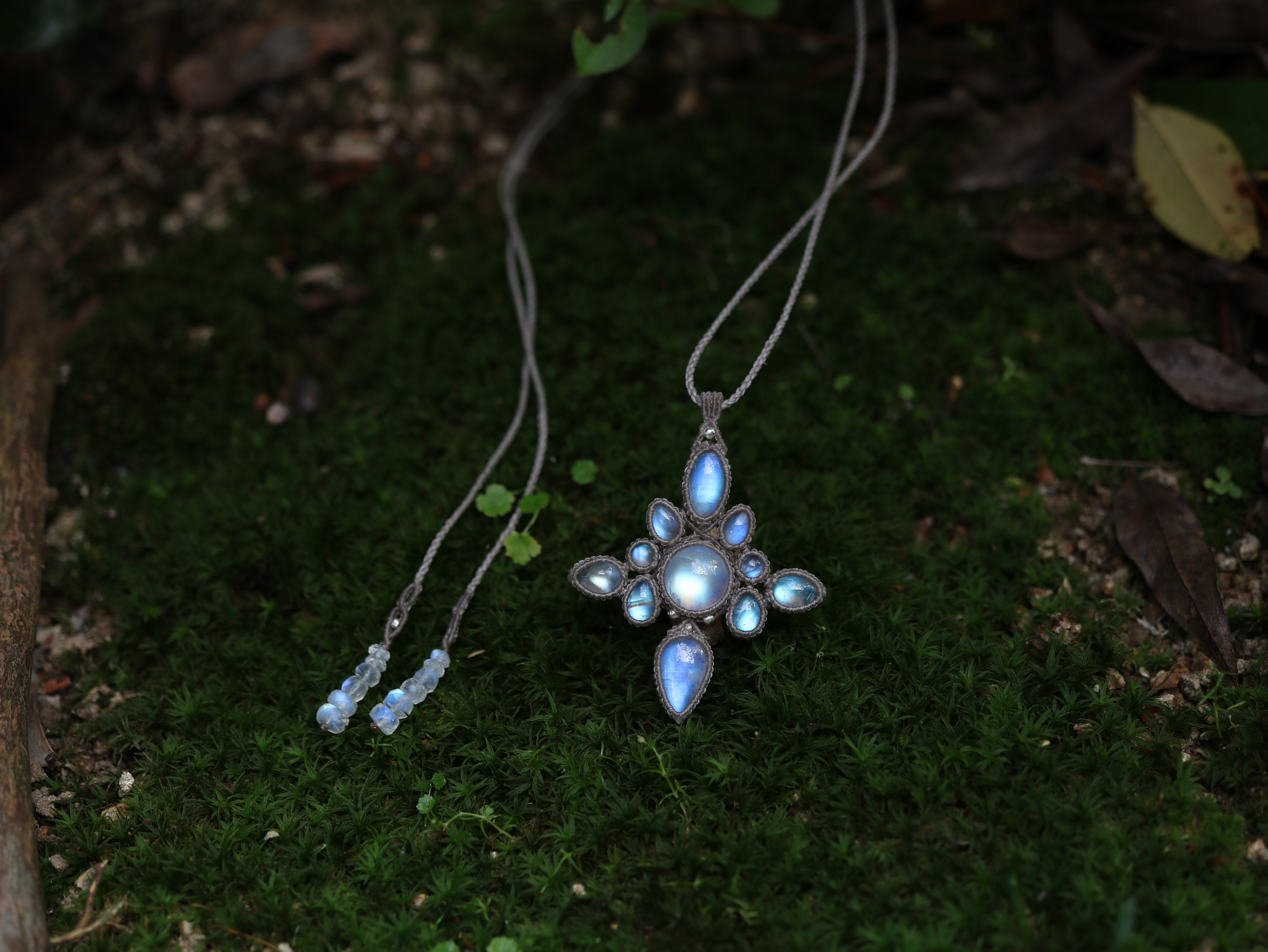 ※ 小粒ムーンストーンを幾何学模様に配置し